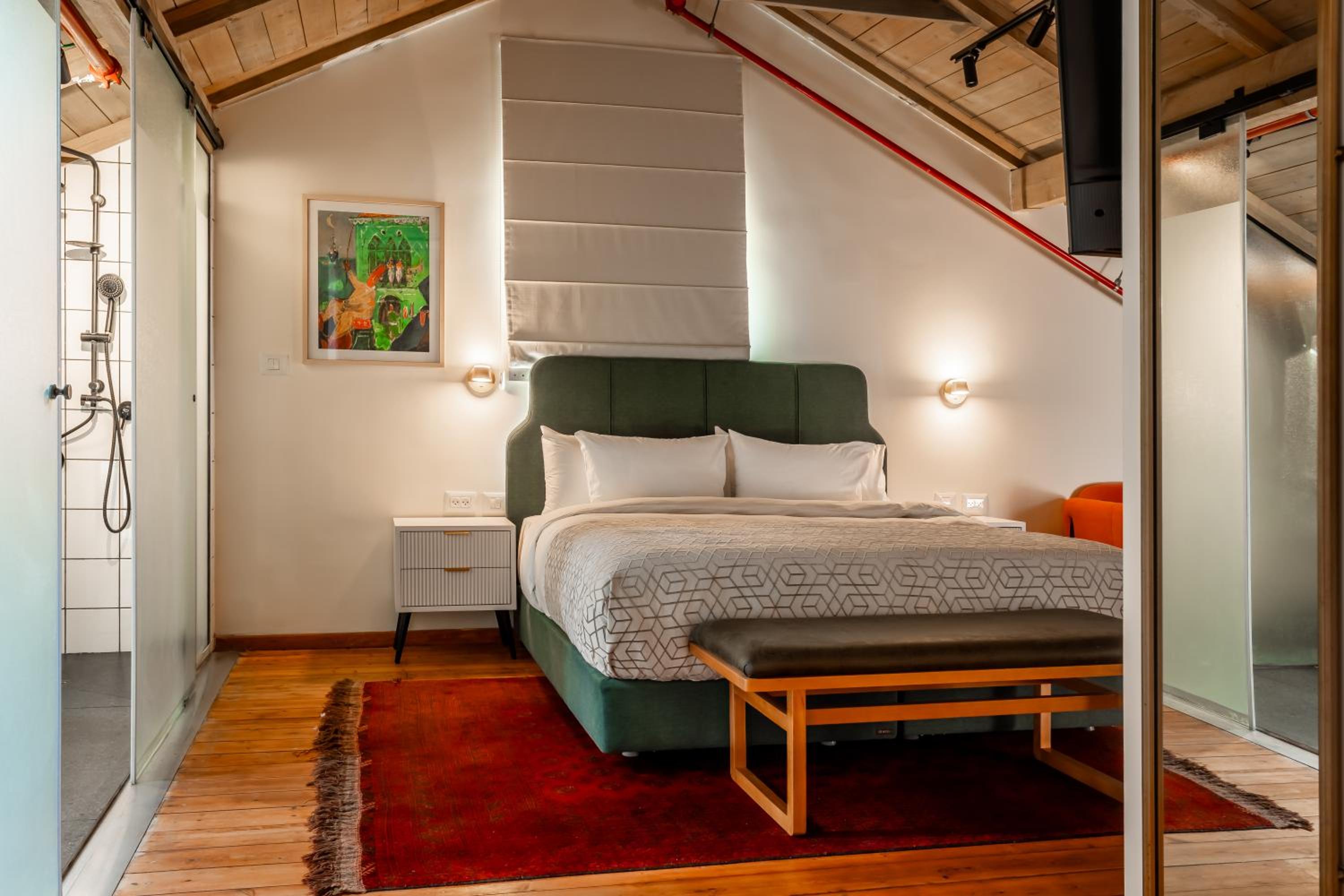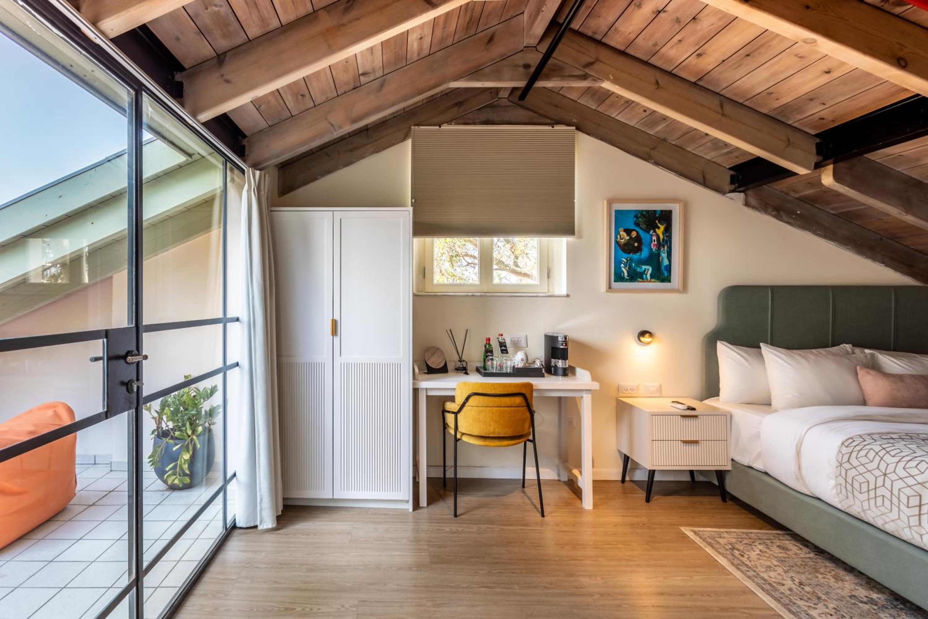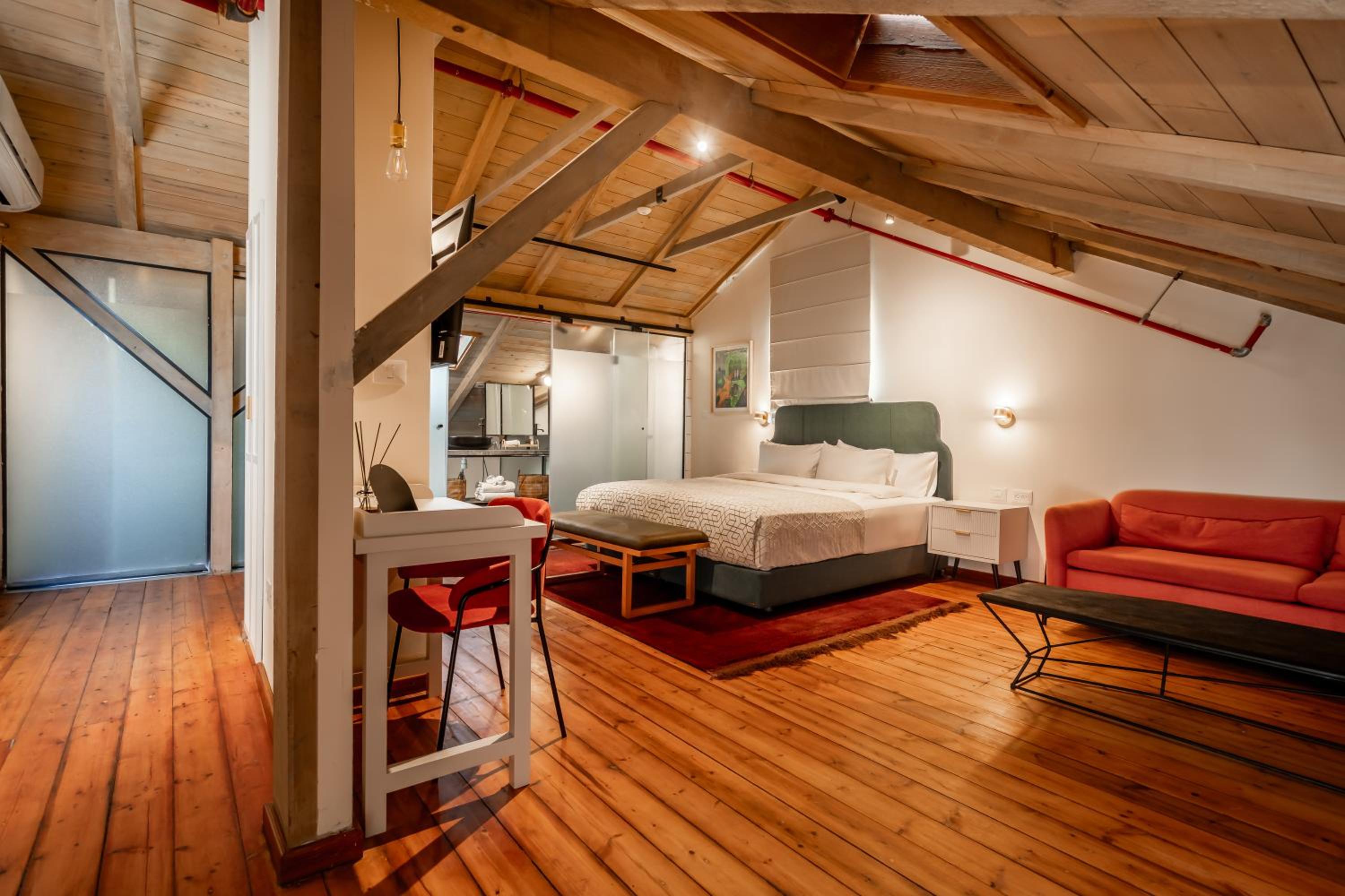 החדר קטן ביחס למה שנראה בתמונות, כי חצי ממנו בעצם גג משופע שאי אפשר לעמוד מתחתיו. אבל הדבר המרכזי שהפריע היה בעיה גדולה של אקוסטיקה. כל דייר שיפתח את הדלת החיצונית מייצר רעש בחדר ותחושה של הדף, שלא מאפשרת שינה רציפה בכלל. שומעים כל דיבור וכל אפצ׳י מחדרים קרובים וכל הזמן יש מים שעוברים בצנרת הדקורטיבית בגג ועושים רעש גדול. מי שרגיש לרעשים ממש לא מומלץ. בשבת ארוחת הבוקר נחמדה מאוד אבל בופה, מה שאומר ירידה ברמה וללא קפה אמיתי. מי שבא בשביל זה כנראה עדיף אמצע שבוע.