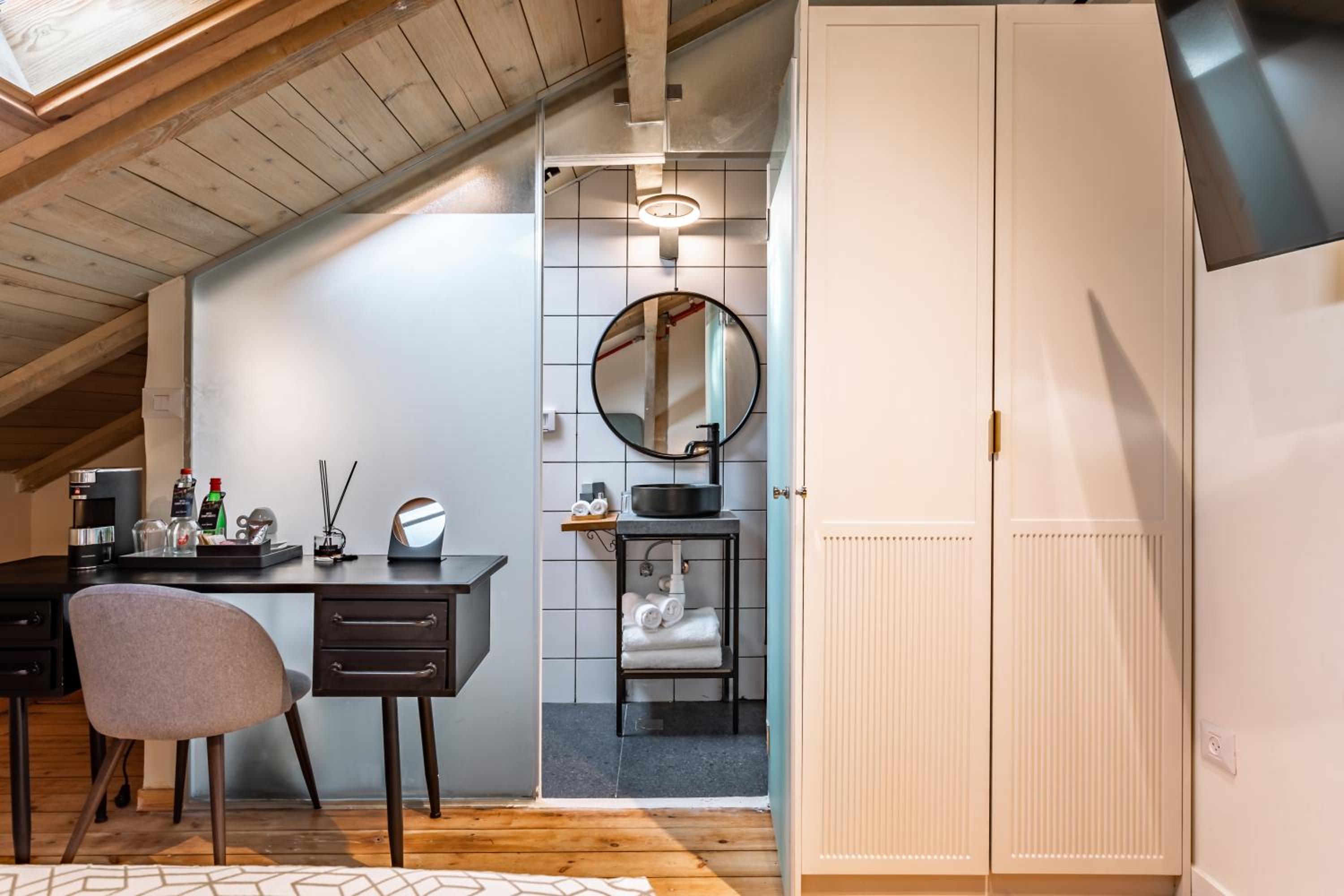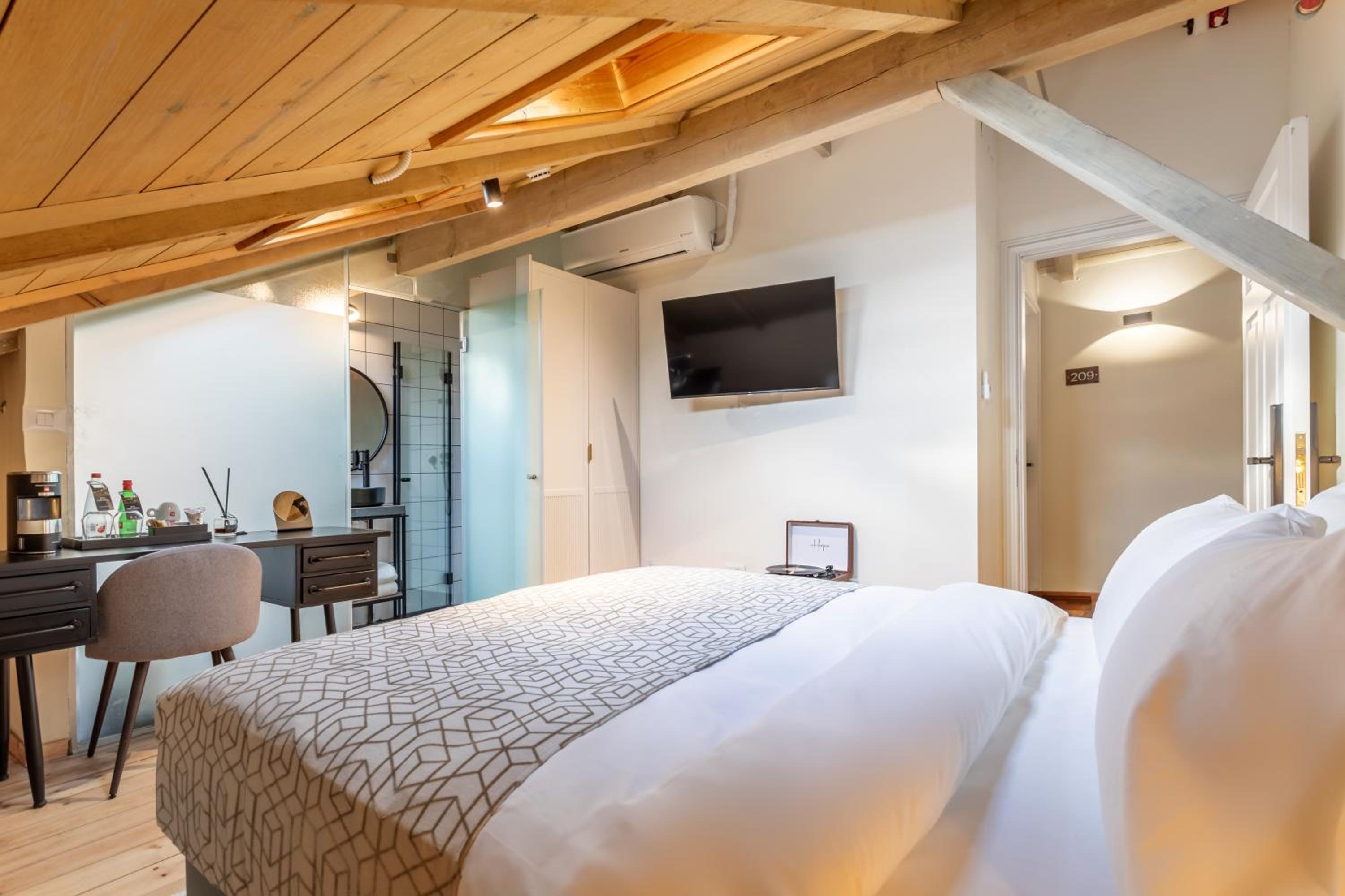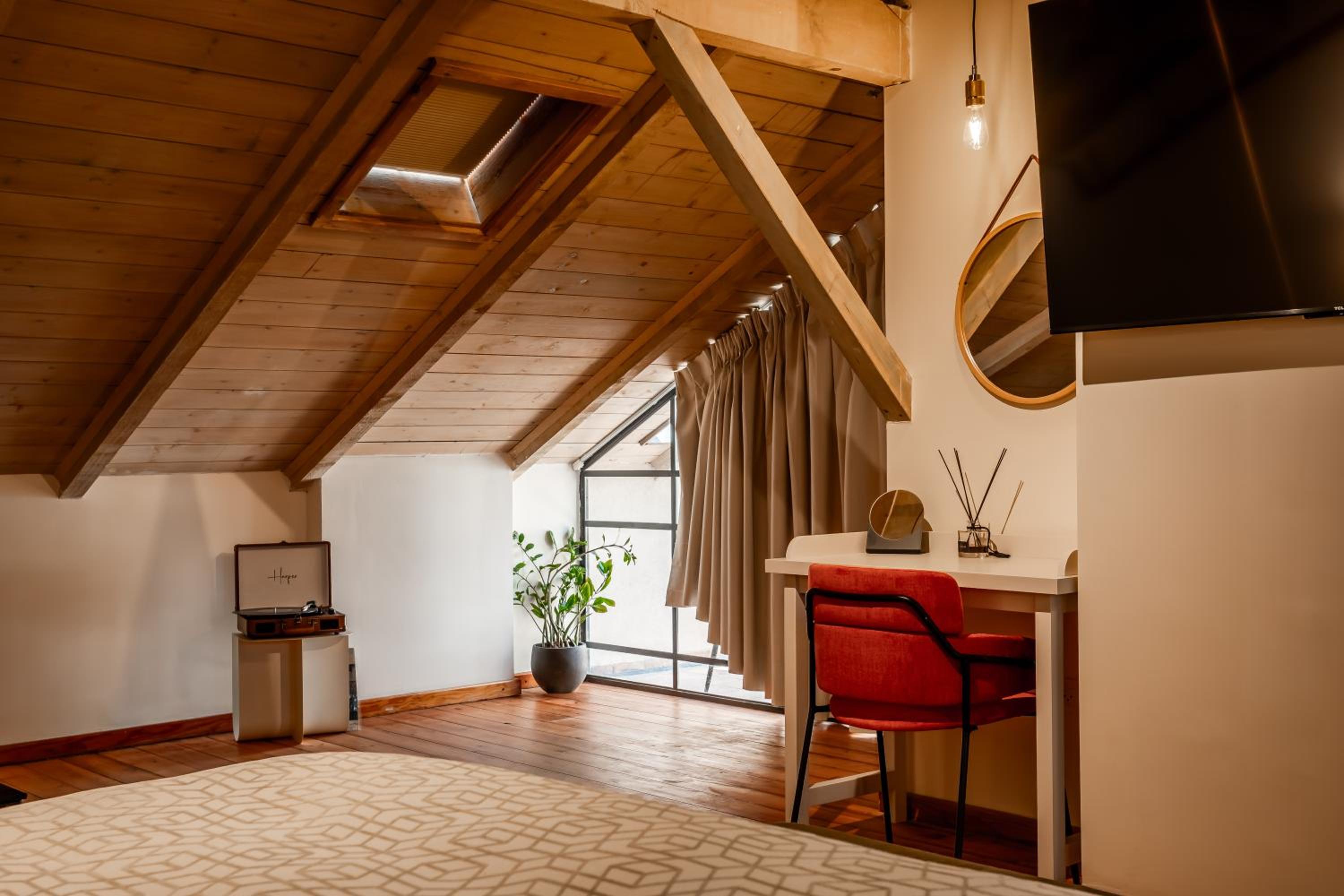 החדר קטן ביחס למה שנראה בתמונות, כי חצי ממנו בעצם גג משופע שאי אפשר לעמוד מתחתיו. אבל הדבר המרכזי שהפריע היה בעיה גדולה של אקוסטיקה. כל דייר שיפתח את הדלת החיצונית מייצר רעש בחדר ותחושה של הדף, שלא מאפשרת שינה רציפה בכלל. שומעים כל דיבור וכל אפצ׳י מחדרים קרובים וכל הזמן יש מים שעוברים בצנרת הדקורטיבית בגג ועושים רעש גדול. מי שרגיש לרעשים ממש לא מומלץ. בשבת ארוחת הבוקר נחמדה מאוד אבל בופה, מה שאומר ירידה ברמה וללא קפה אמיתי. מי שבא בשביל זה כנראה עדיף אמצע שבוע.