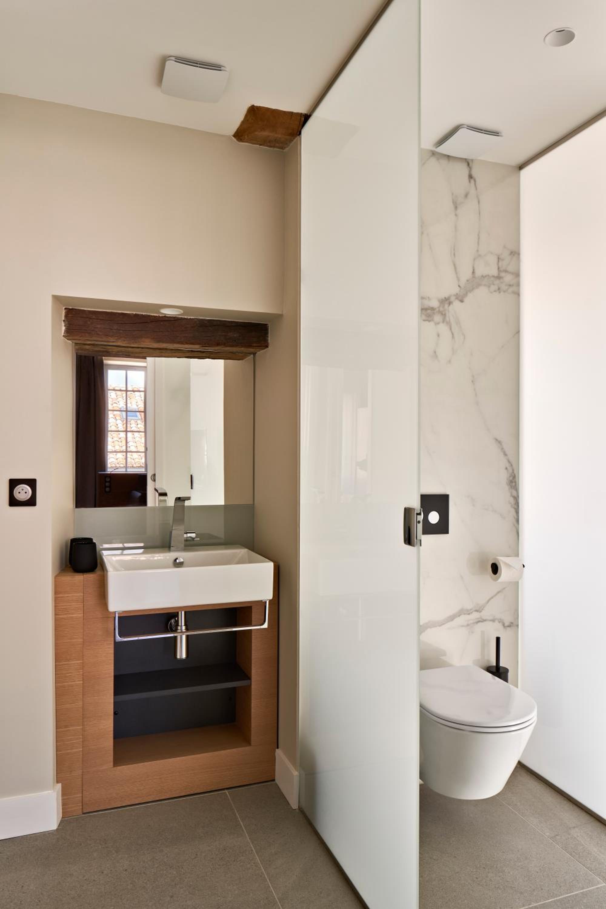Hôtel moderne dans des murs anciens au cœur de Monpazier. Notre chambre était très spacieuse et donnait directement sur la petite rue ce qui était très pratique pour sortir notre chien. Gentillesse du personnel et très bon petit déjeuner.