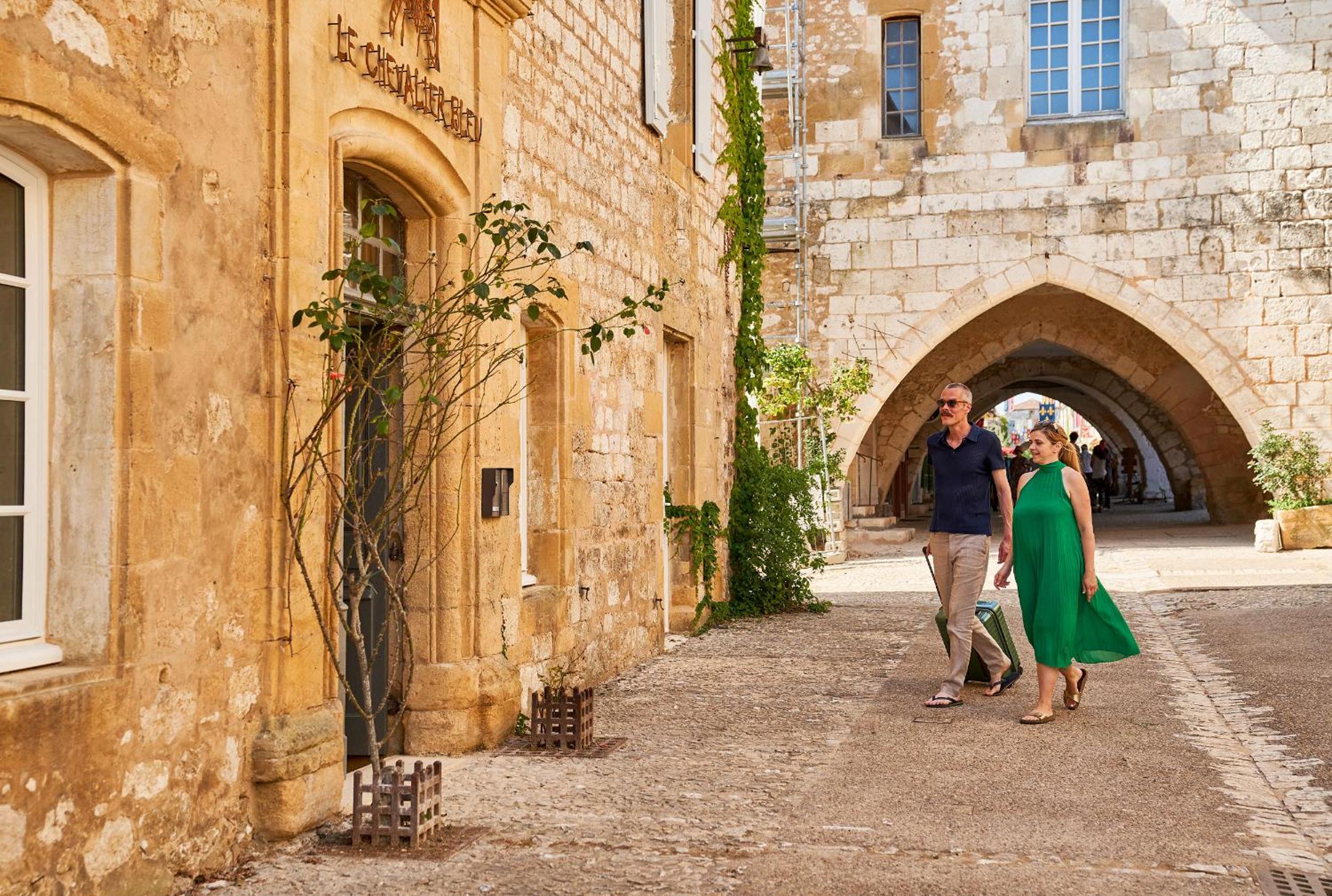 Escape to the serene beauty of Monpazier at Hotel Le Chevalier Bleu, where elegance meets comfort.
