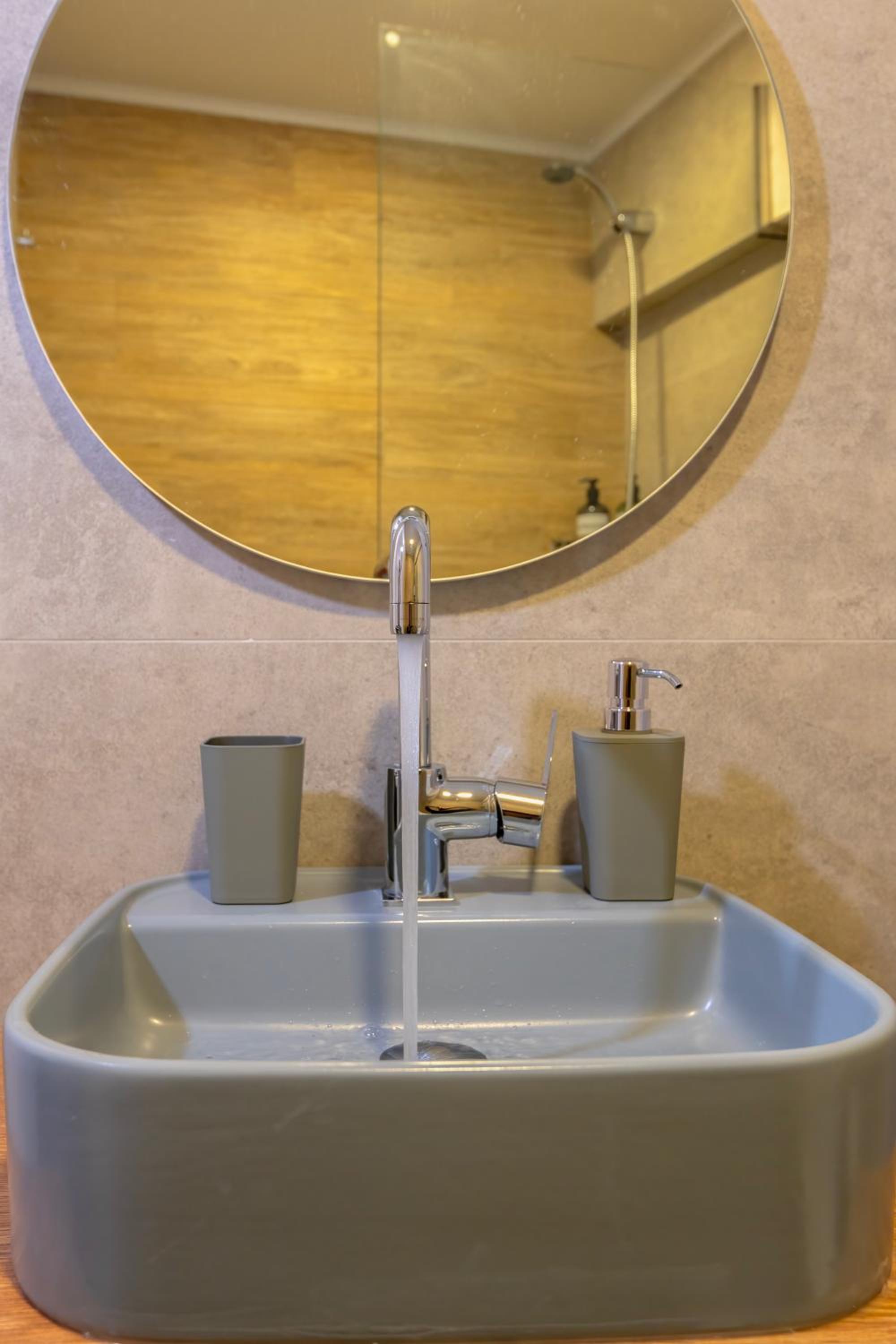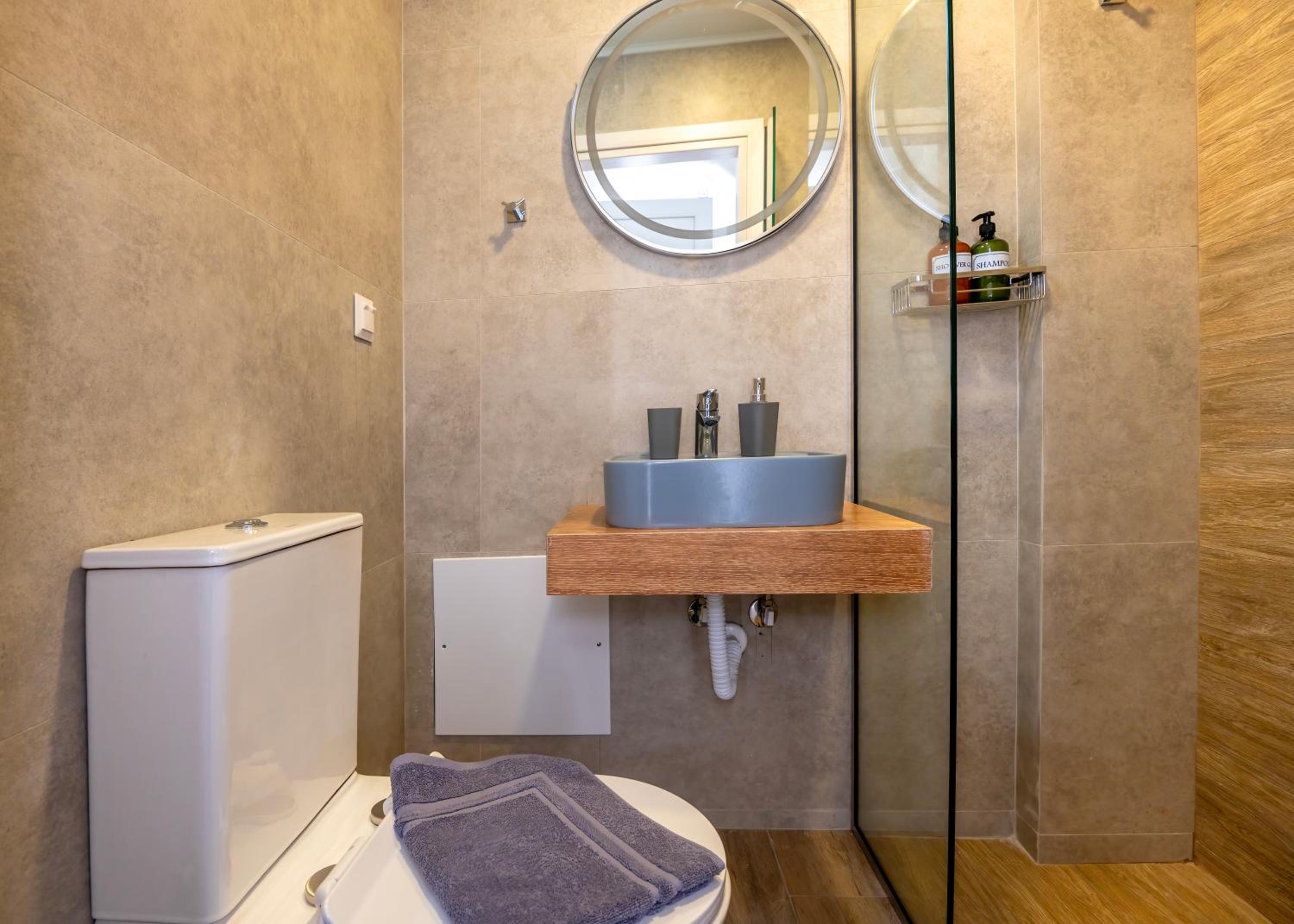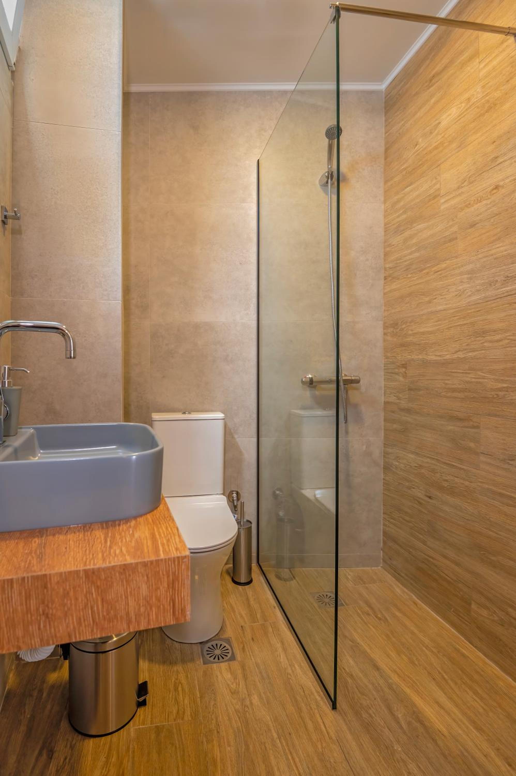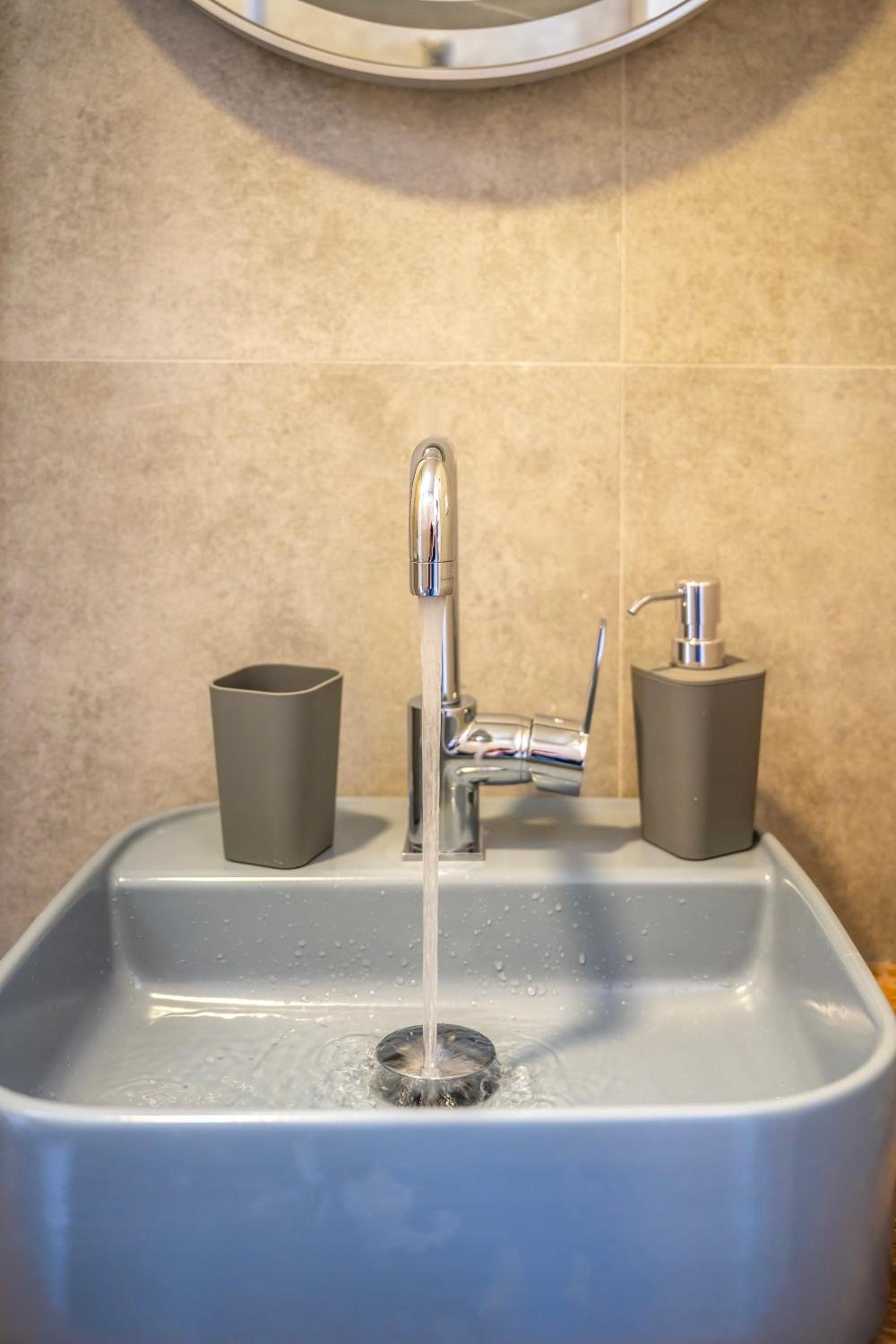 Bagno piccolo per soggiorni prolungati, con la doccia senza parete che bagna il resto del bagno. Nell’annuncio è segnata la lavastoviglie ma nel nostro appartamento non c’era. Cose di poco conto comunque, ne vale la pena!