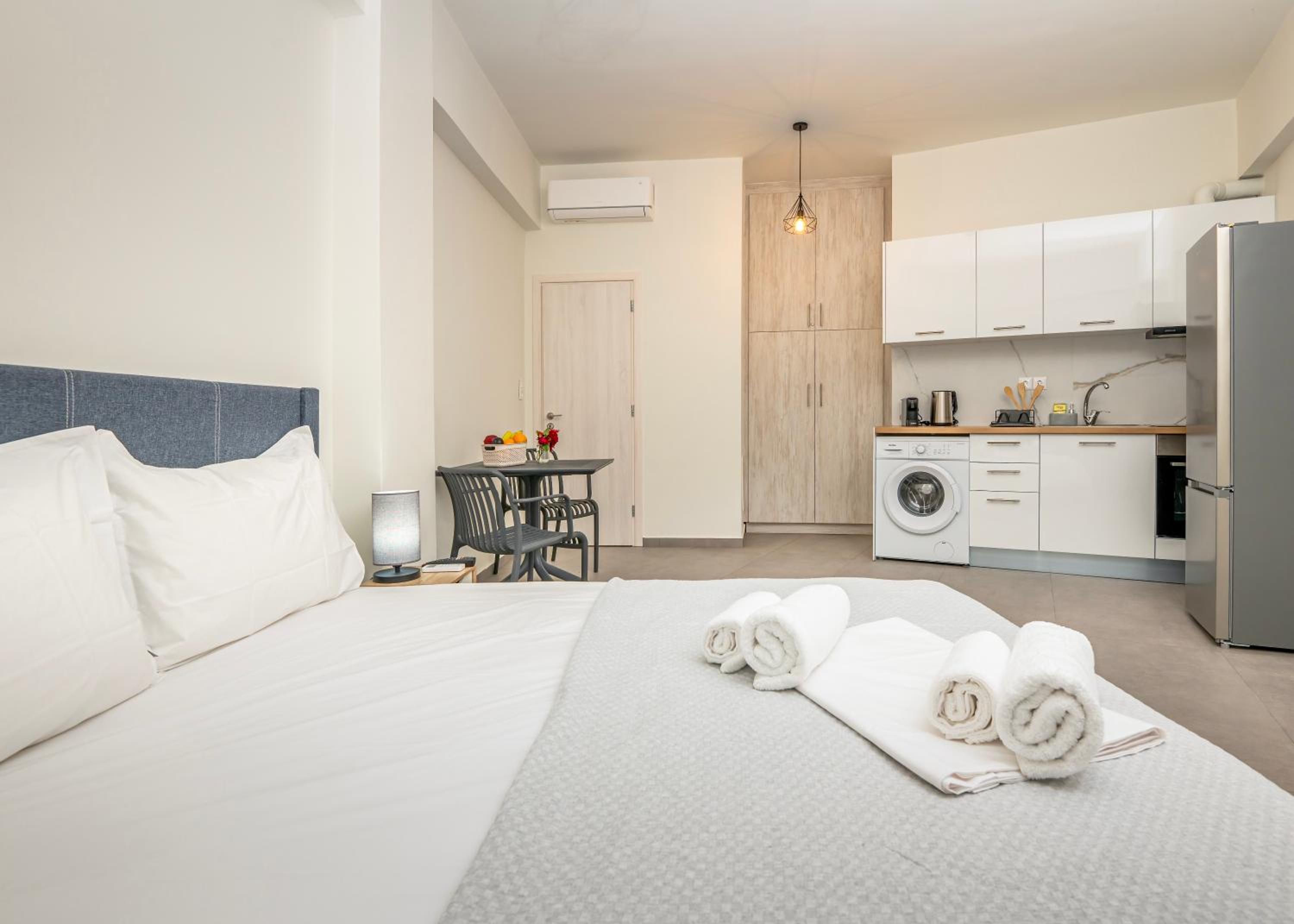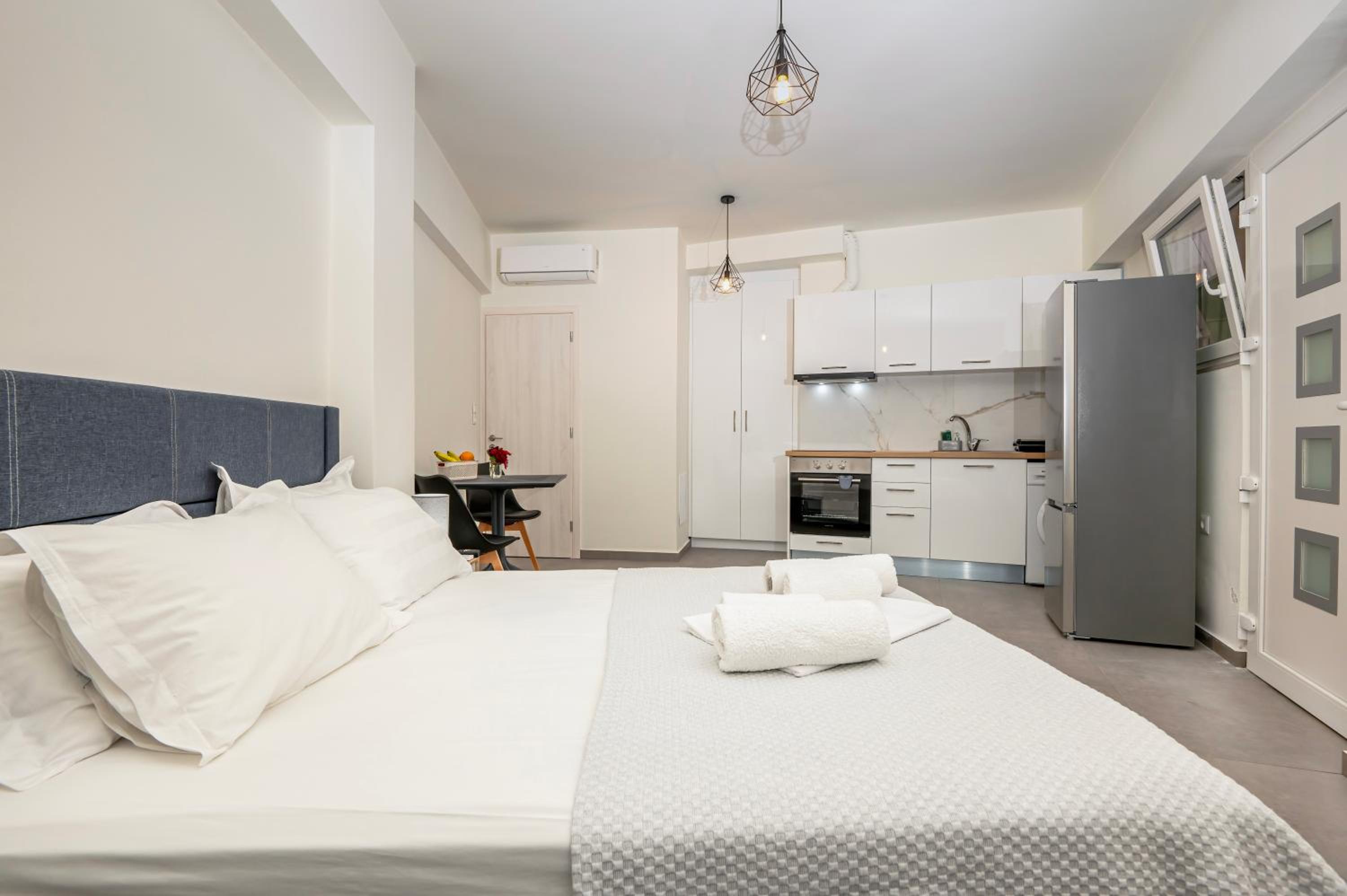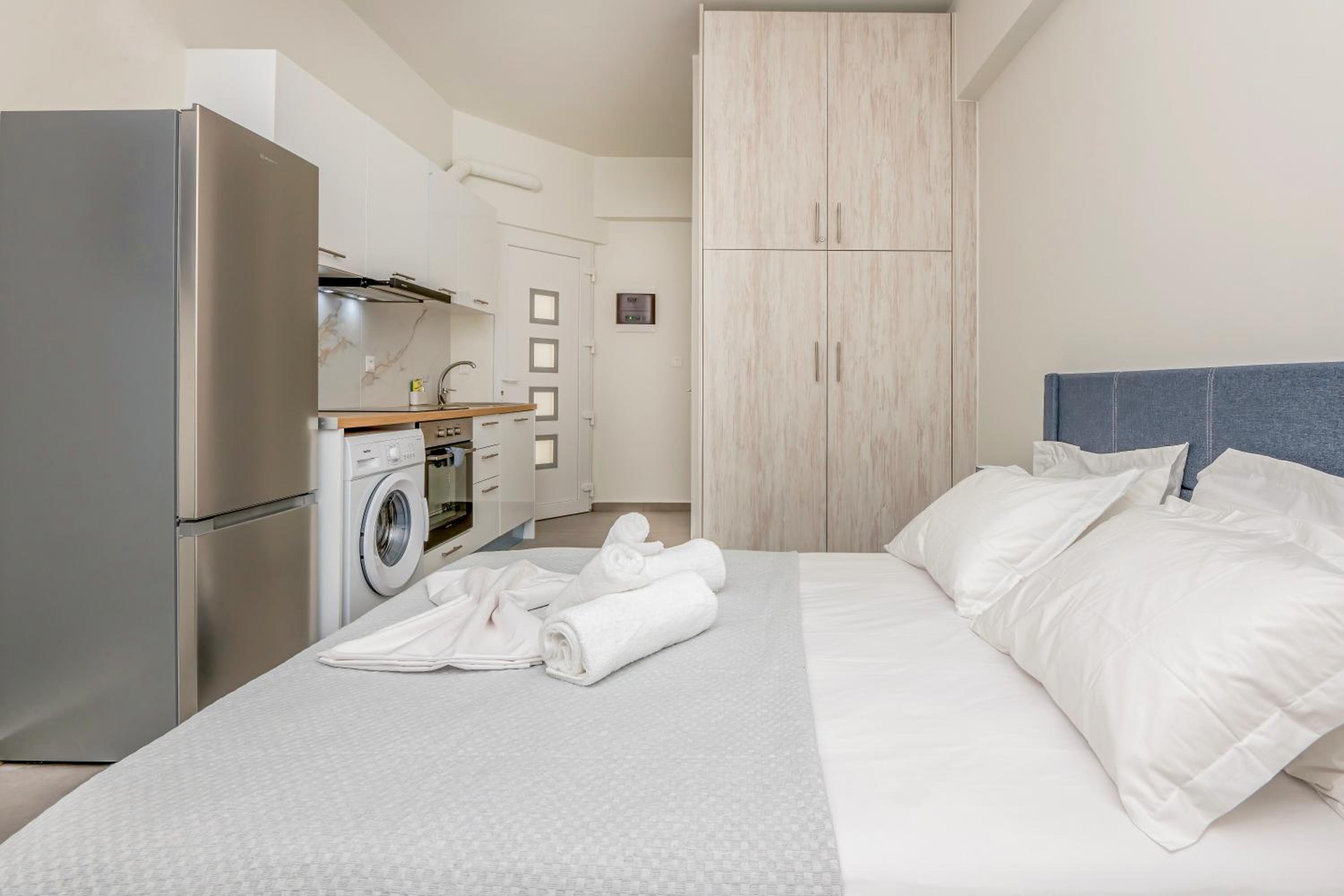 Το studio που μείναμε εμείς (με τον καναπέ κρεββάτι και το διπλό),ήταν πολύ καθαρό και περιποιημένο.Η τοποθεσία ήταν πολύ καλή, πολύ κοντά και στο σούπερ και σε καφέ.