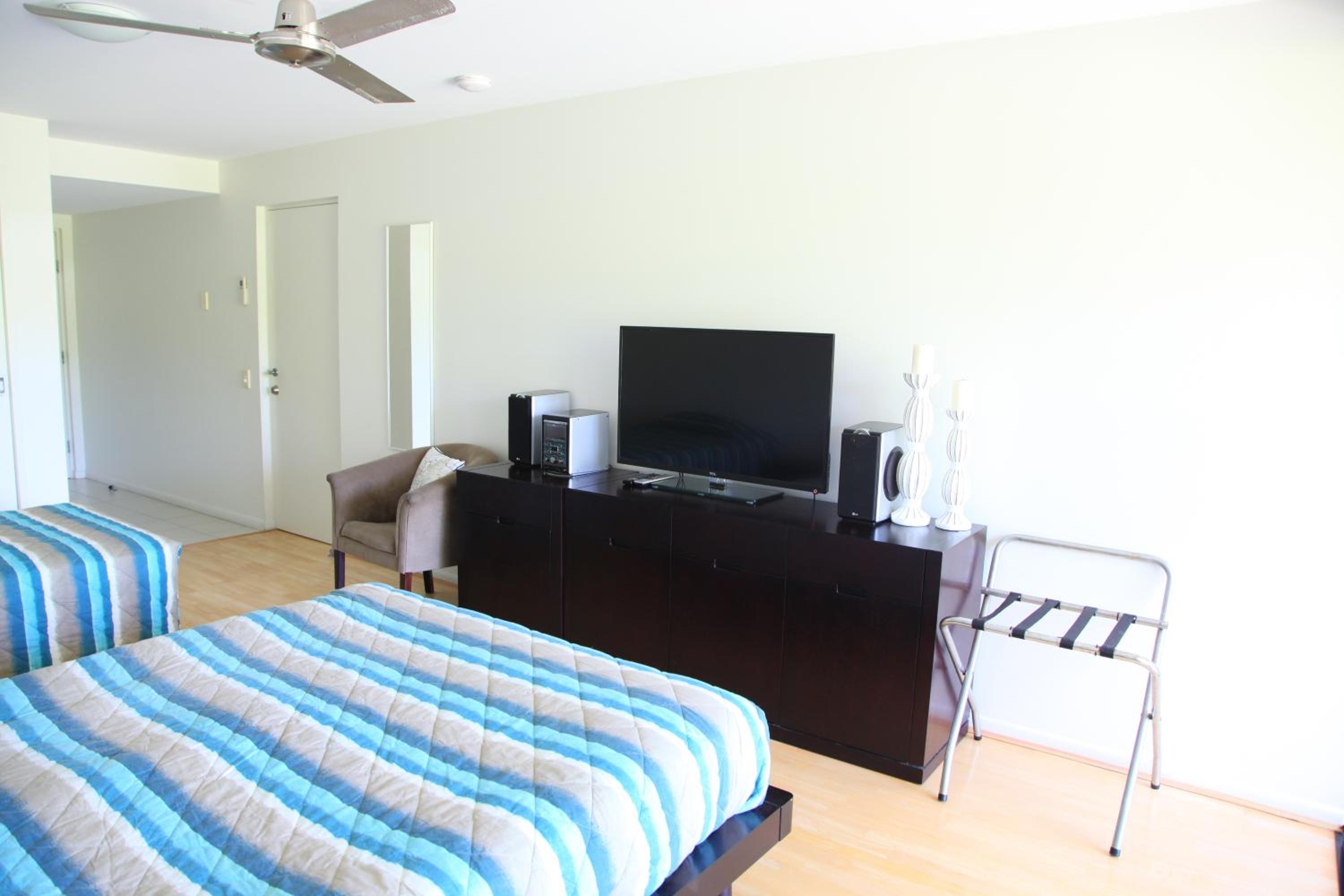 The location is perfect, within walking distance of the beach, restaurants and shops. It was quiet and although we had a balcony facing the road it was peaceful and perfectly shaded for a morning coffee. The apartment was spacious and the bed was comfortable.