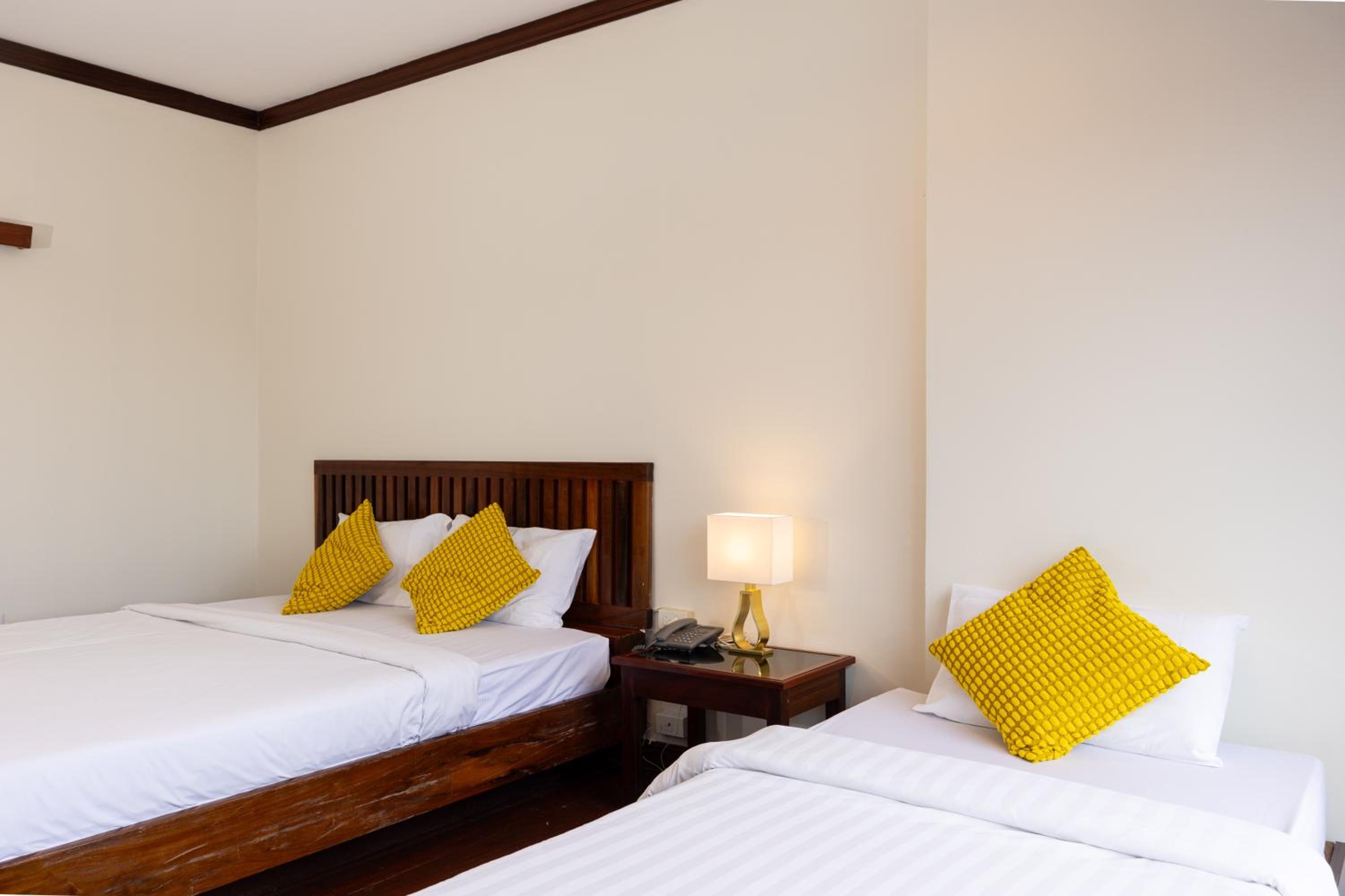 concernant le lit c 'est comme une coulée de beton dur de chez dur , le menage est realiser en moins de trois minutes on change les serviettes ont vides les poubelles et on passe un coup de balai pas partout a l œil nu , le changement de drap est une option car si je ne demande pas de le faire et apres que la femme de chambre et téléphoné pour savoir si elle pouvais le faire ,je pense que j aurais eu mes draps pendant les 28 jours passés , pas d eau chaude dans le bain et apres avoir signale la seule reponse tout l hotel est prive d eau chaude pour le bain mais aucune reponse concernant une réparation possible demande au 5 eme jour et au bout du 28 eme toujours pas réparer et d apres les commentaire cela est pas récent pas de restaurant juste le buffet du petit dejeuner , pas de laverie , le parking de l hotel est squatté par les habitant d a cote une personne fait le placement des véhicules le soir mais trop de véhicules comme des taxi ou touc touc se gare dans le parking se qui est un probleme pour les touristes qui loue des voitures et n ont pas de place, le manque de communication entre les personnes de l hotel la veil du depart je réserve un taxi et je le regle le matin je m inquiete de ne pas le voire je demande la personne pas prevenu et commence par me montrer des photos du personnel pour savoir qui c 'est occuper de moi , la chambre et pas dans un état super ni la salle de bain le parquet fait un bruit d enfer et c est bon pour réveillé ce du dessous si vous bouger dans la nuit moi j ai une soirée comme cela ou celui du dessus a fait un marathon dans sa chambre de 19h30 a 23h50 environ ou je pensais qui courrais dans sa chambre tellement le bruit etait pénibles. pour en terminer booking devrais visiter ces etablissement plus souvent afin de ne pas les favoriser quand il y existe autant de malfaçons je deconseil cet hotel qui n est pas dans les moins cher et surtout n offre pas les meilleurs condition pour des sejour long