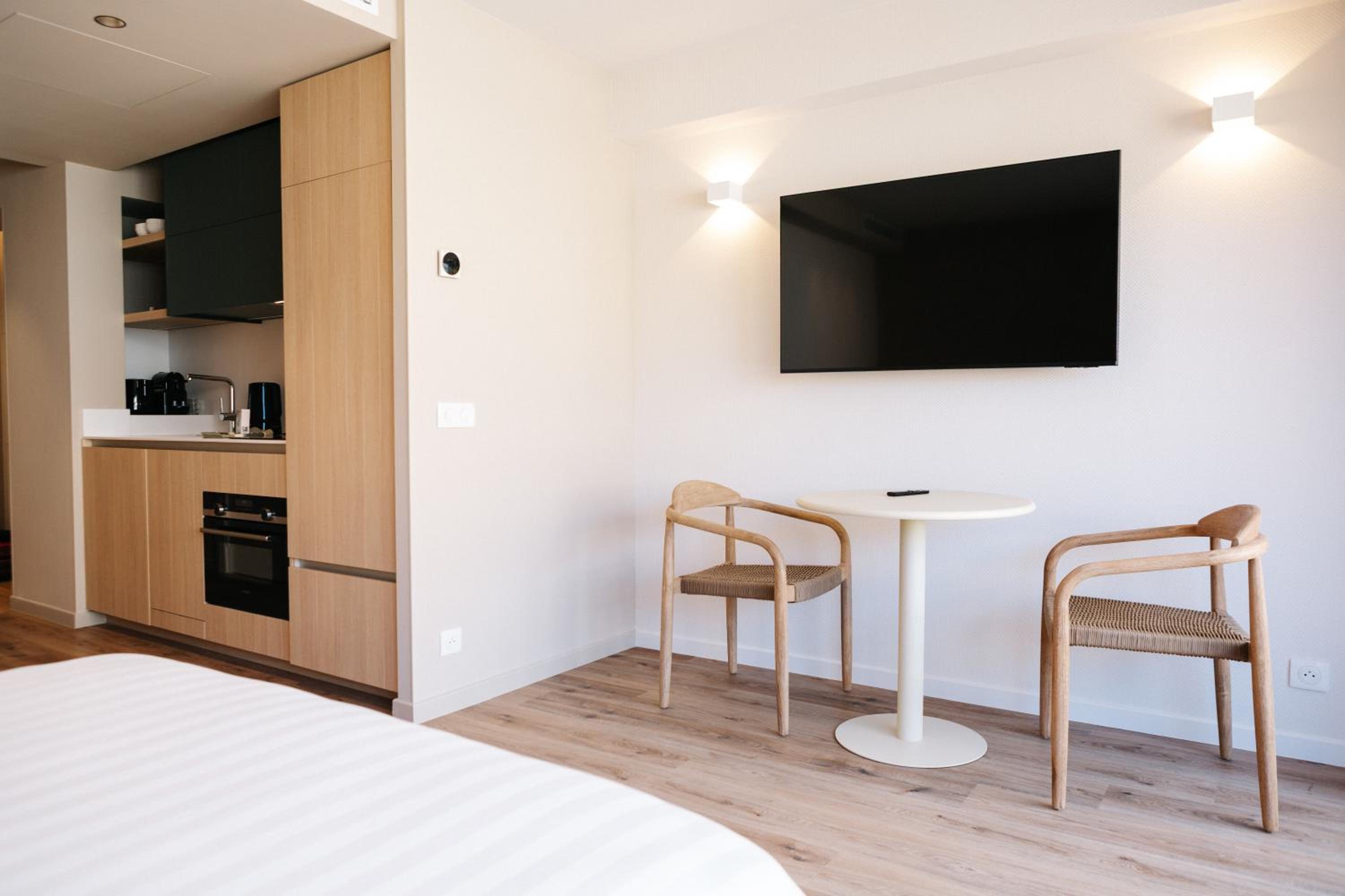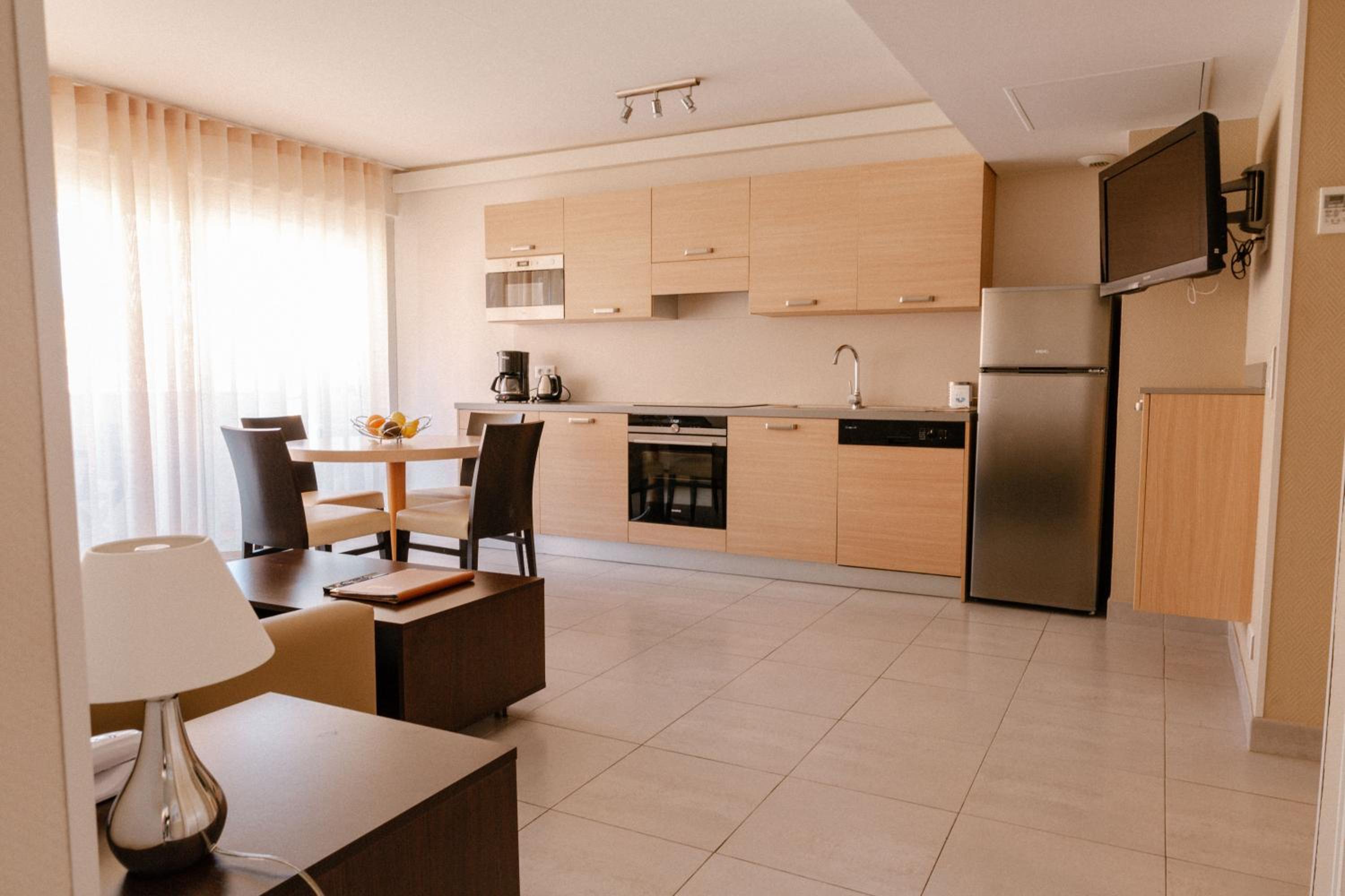 Our studios and apartments are thoughtfully designed with flat-screen TVs, fully equipped kitchens or kitchenettes, and spacious bathrooms, offering you the ultimate convenience for a home away from home.
