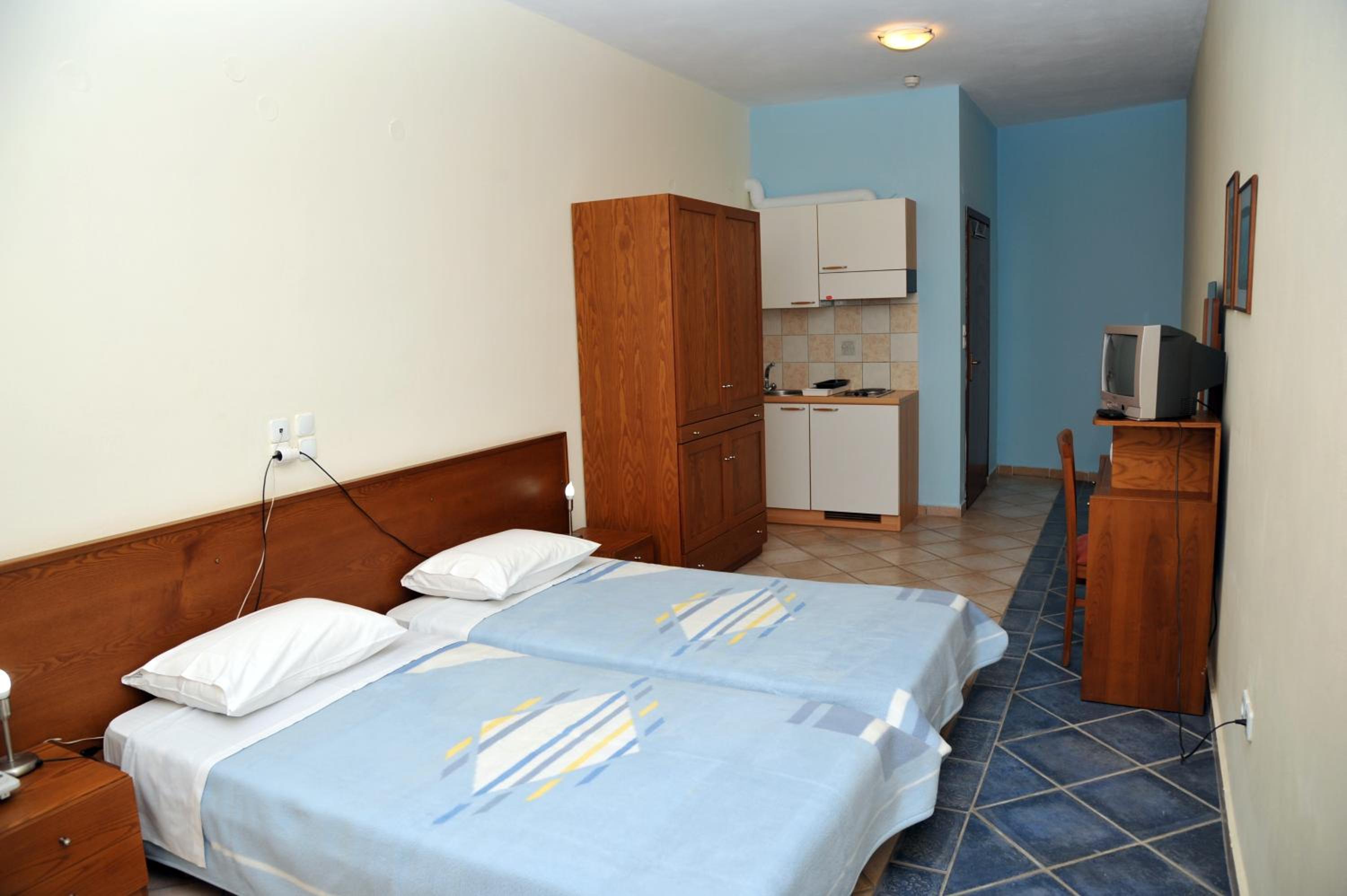 Our spacious, air-conditioned studios and apartments feature furnished balconies with breathtaking views of the Laconian Gulf. Offering self-catered comfort, each unit includes a kitchenette with a fridge and a cozy TV for your leisure.