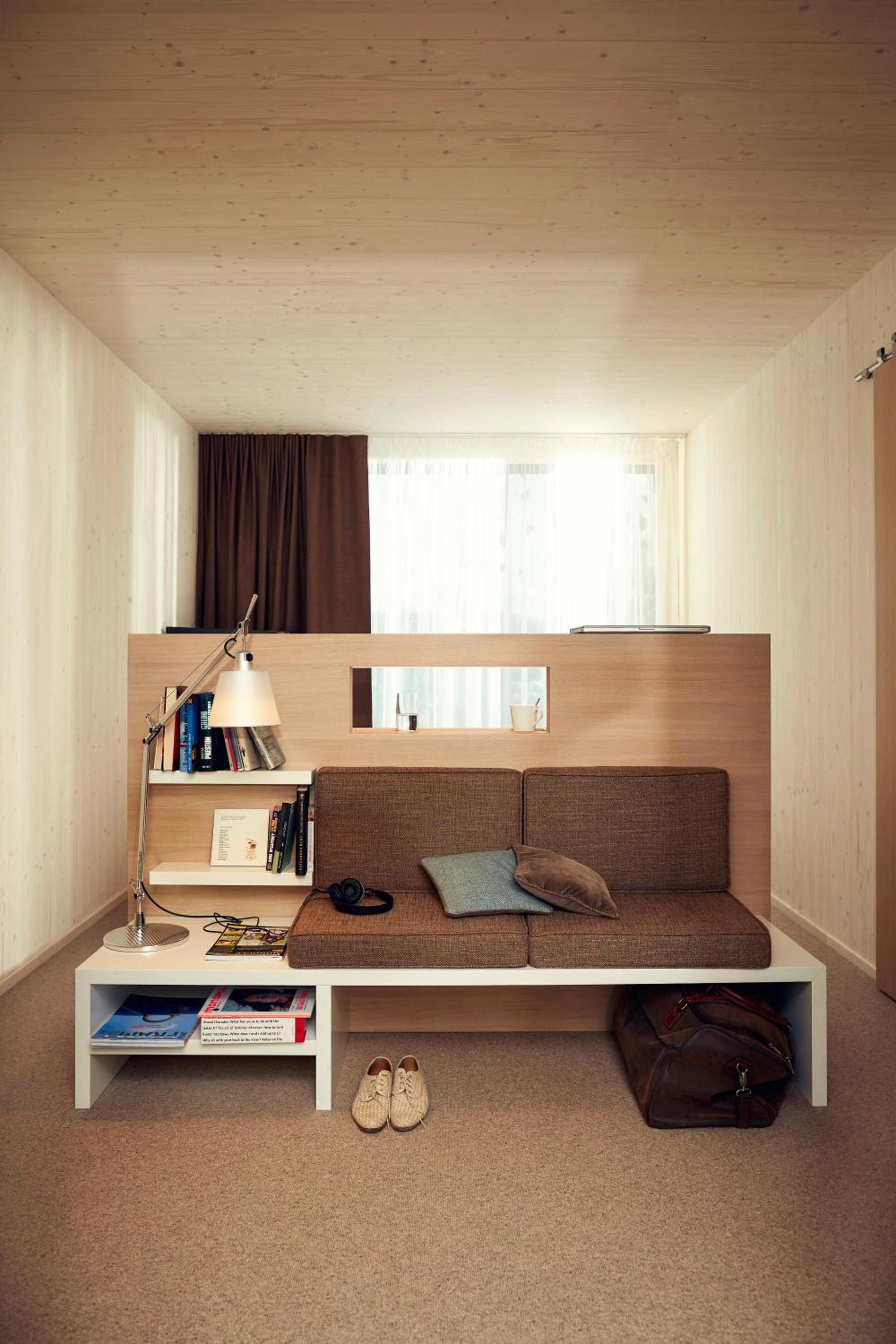 Experience the charm of stunning wooden interiors at SOULMADE in Garching bei München. The timber construction creates a cozy atmosphere that is sure to make your stay memorable.