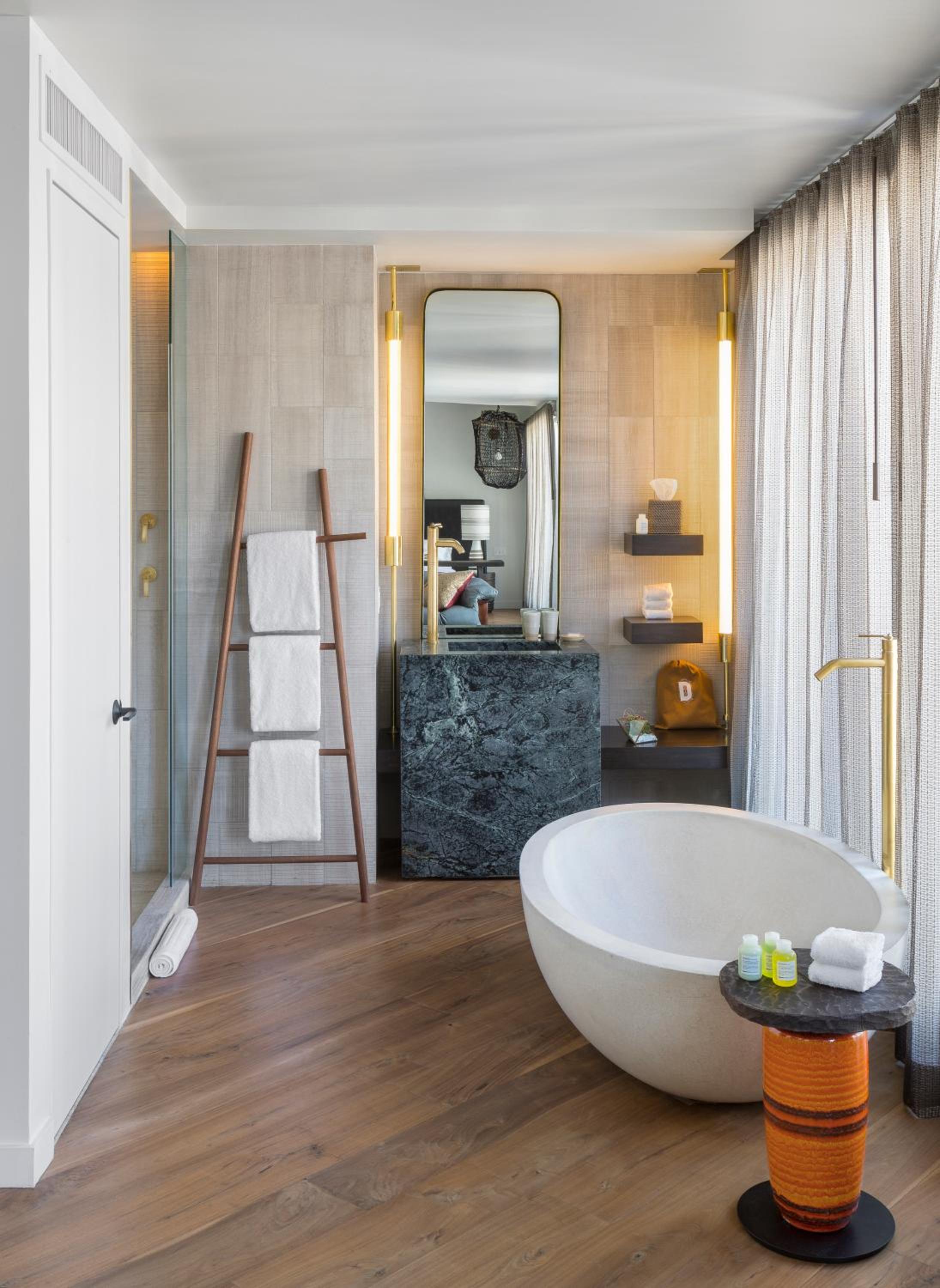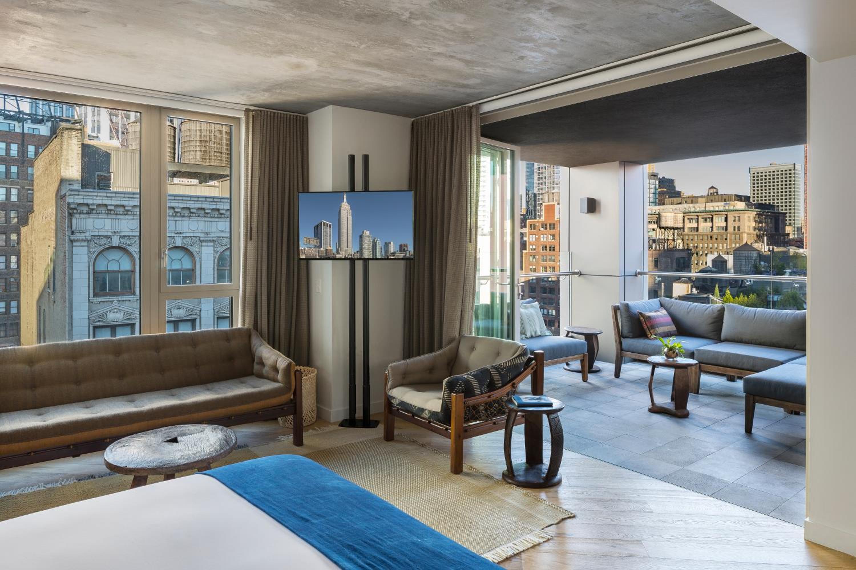MADE Hotel in New York offers select rooms with floor-to-ceiling windows and modern amenities like air conditioning, bathrobes, and Samsung® flat-screen TVs. Some units even boast stunning city views.