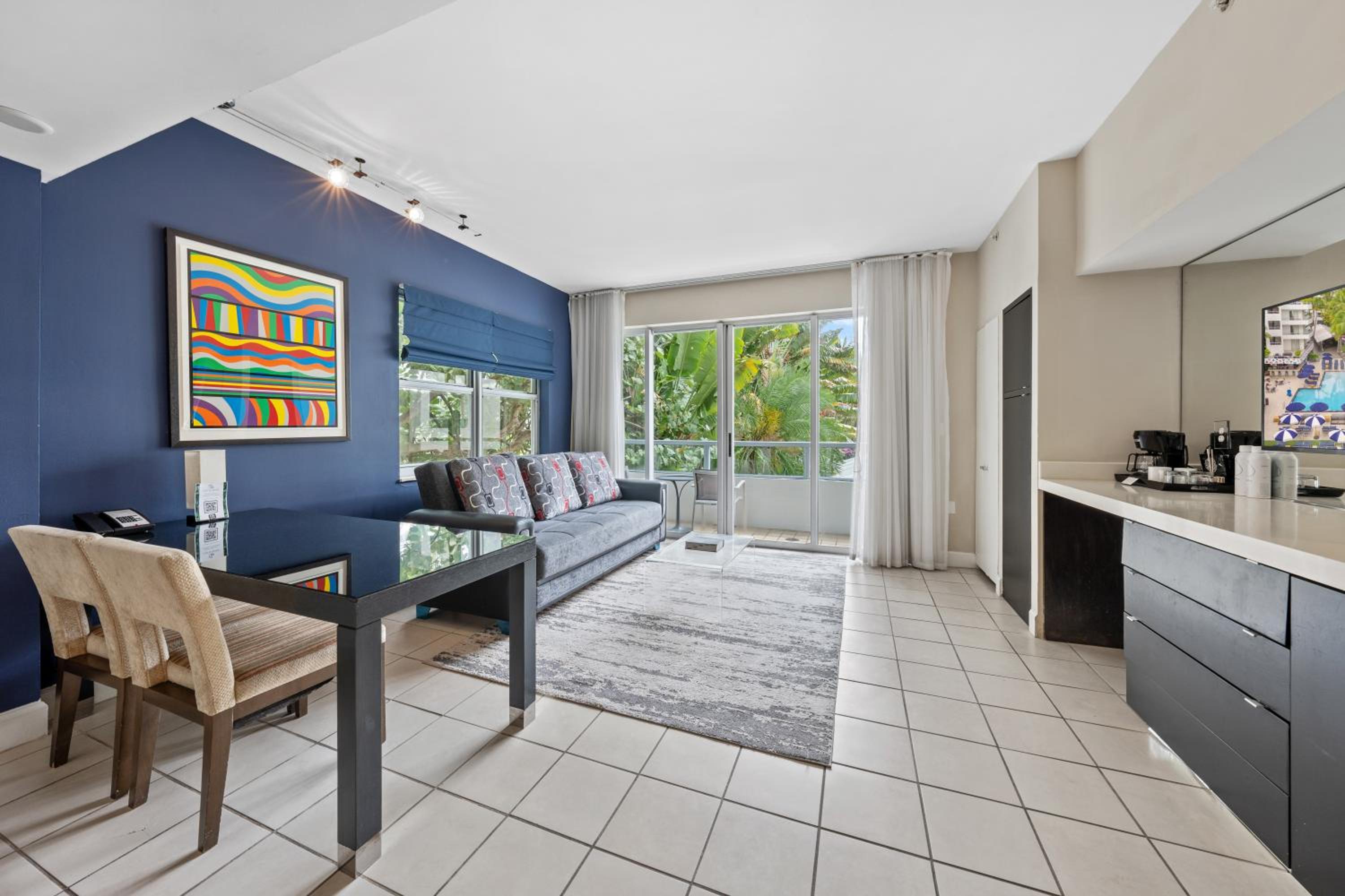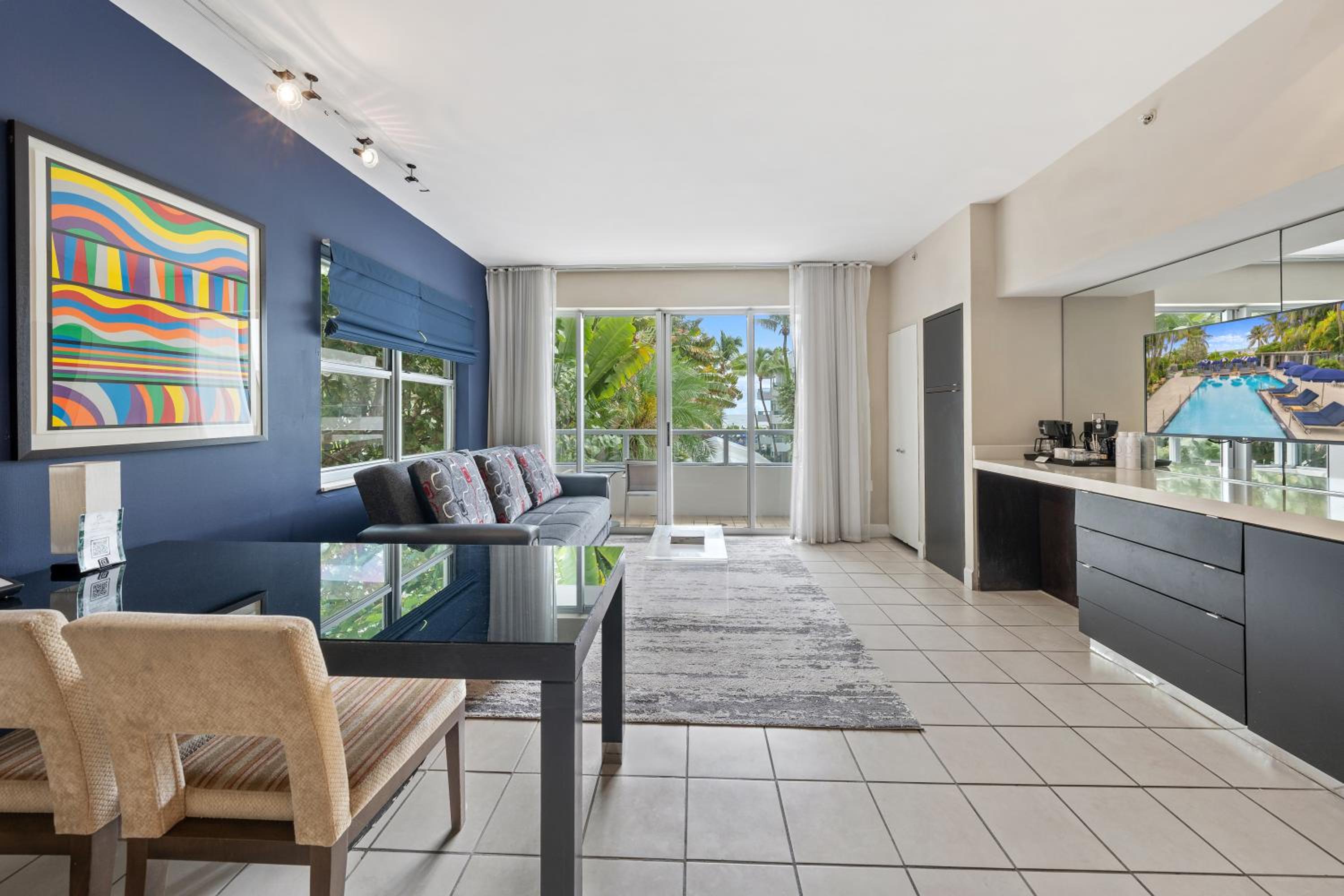Indulge in comfort with our modern suites equipped with 42-inch plasma flat-screen TVs, DVD players, and complimentary WiFi, ensuring a relaxing stay in the heart of South Beach.
