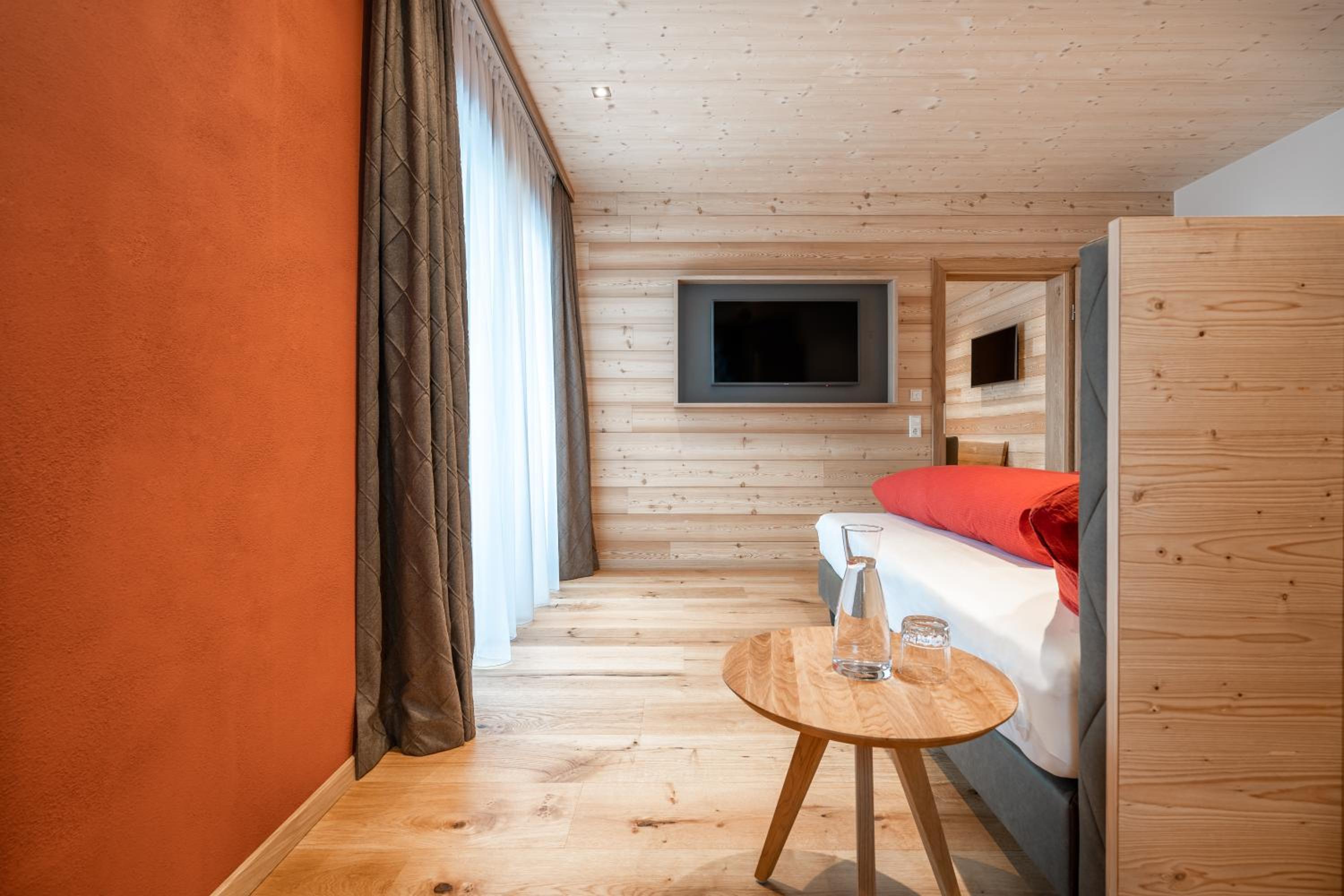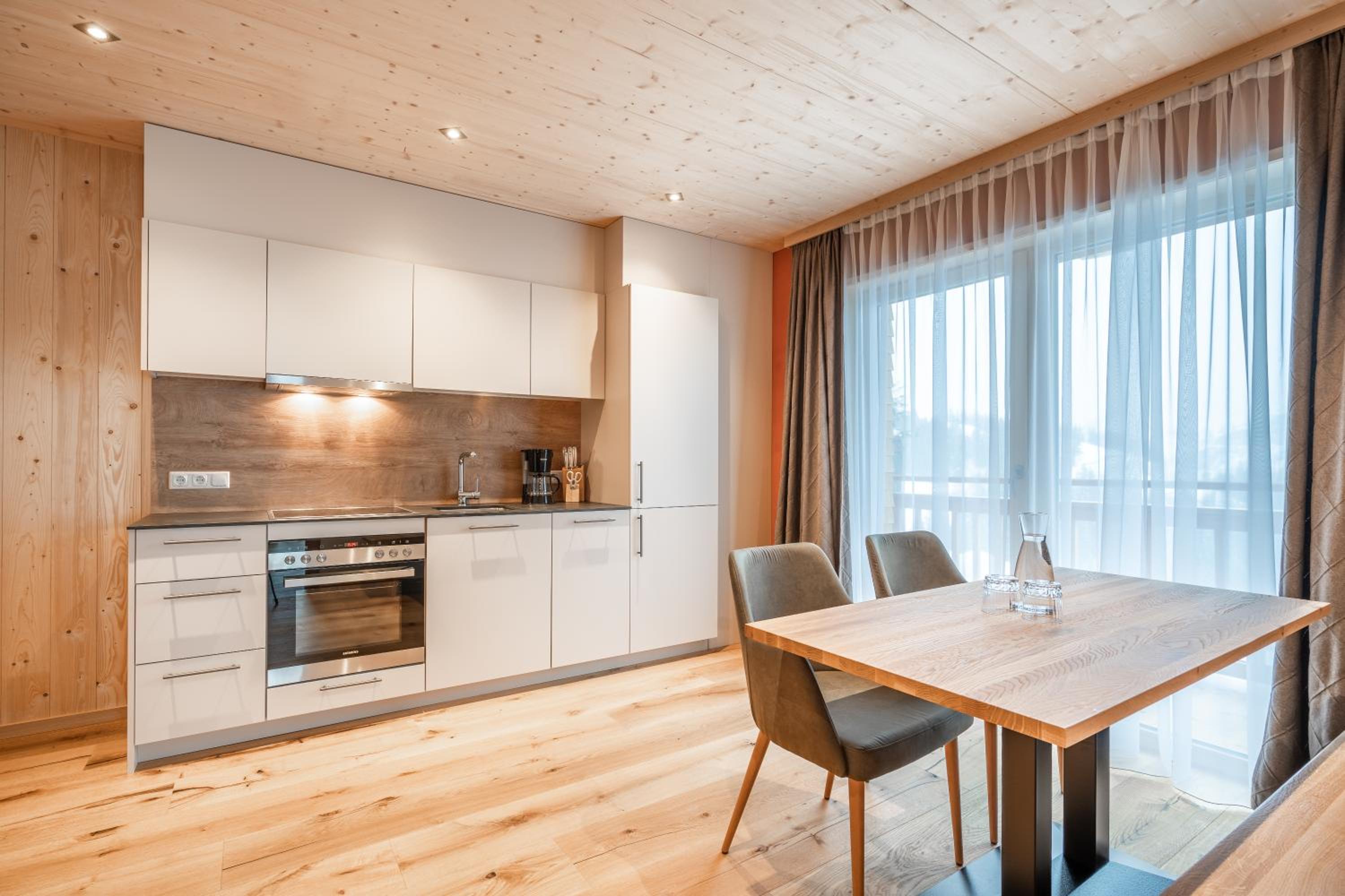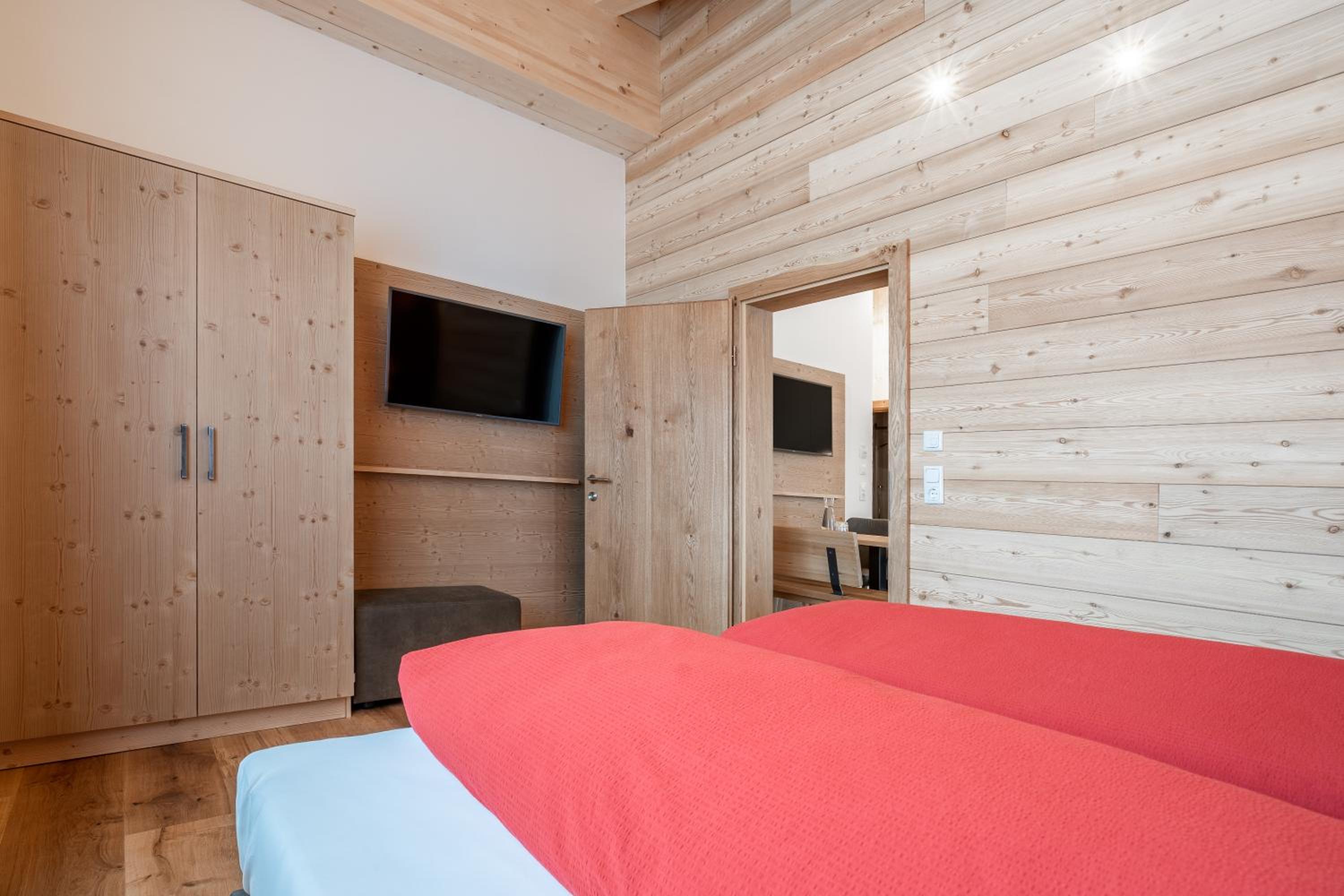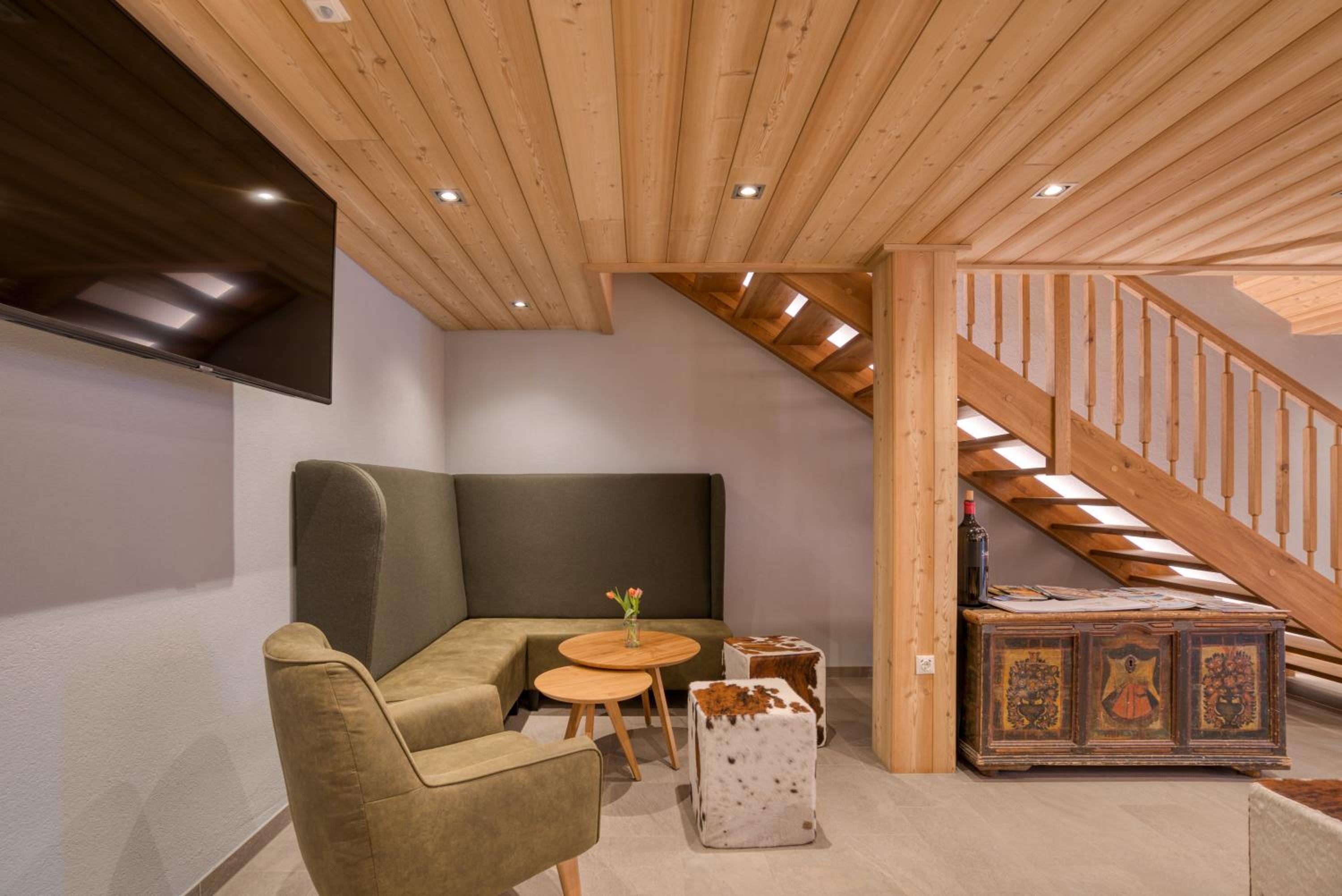 Sehr neu und modern mit viel Holz eingerichtet. Lage fussläufig des Skibus, wenn auch ein kurzer Anstieg. Mit Skidepot an der Talstation Steffisalp aber wirklich kein Thema.