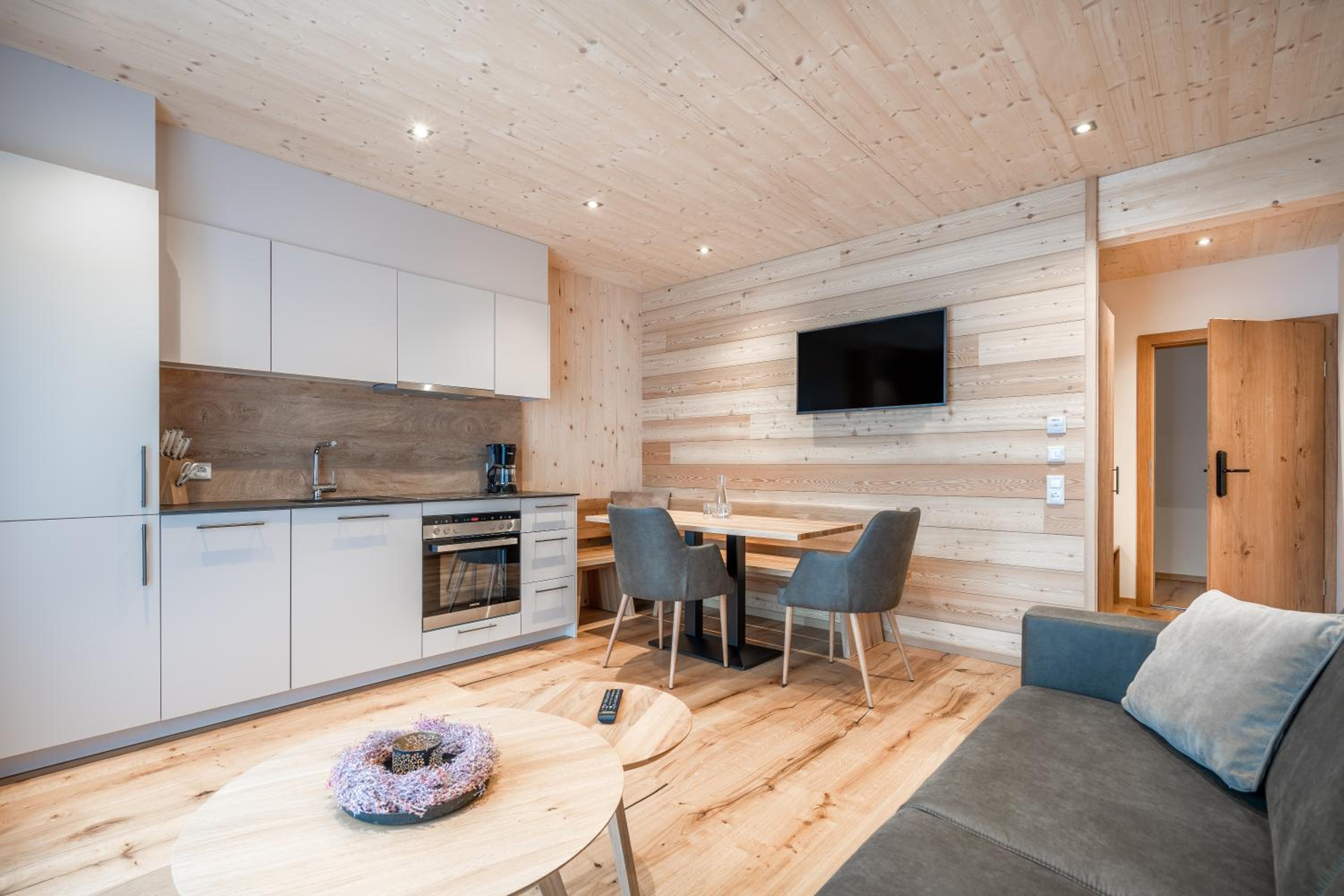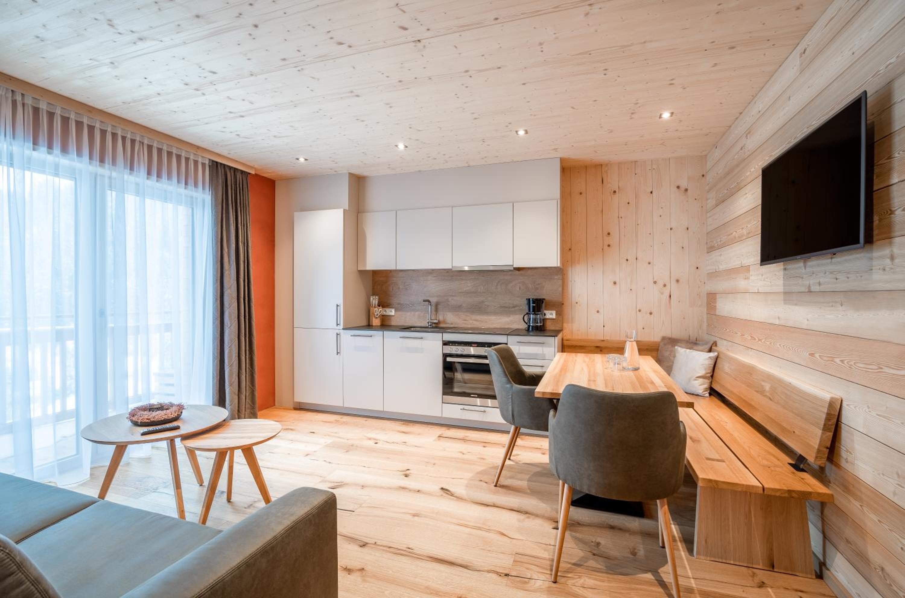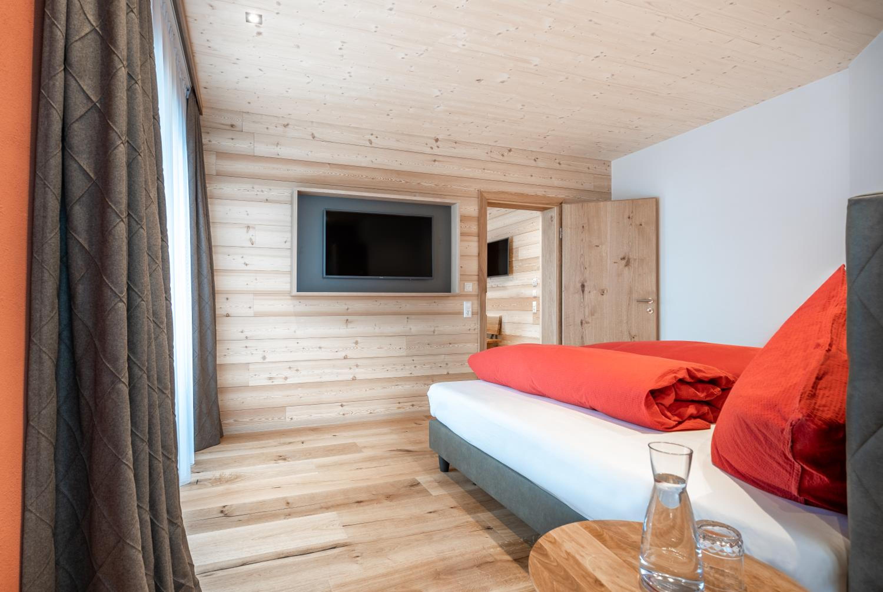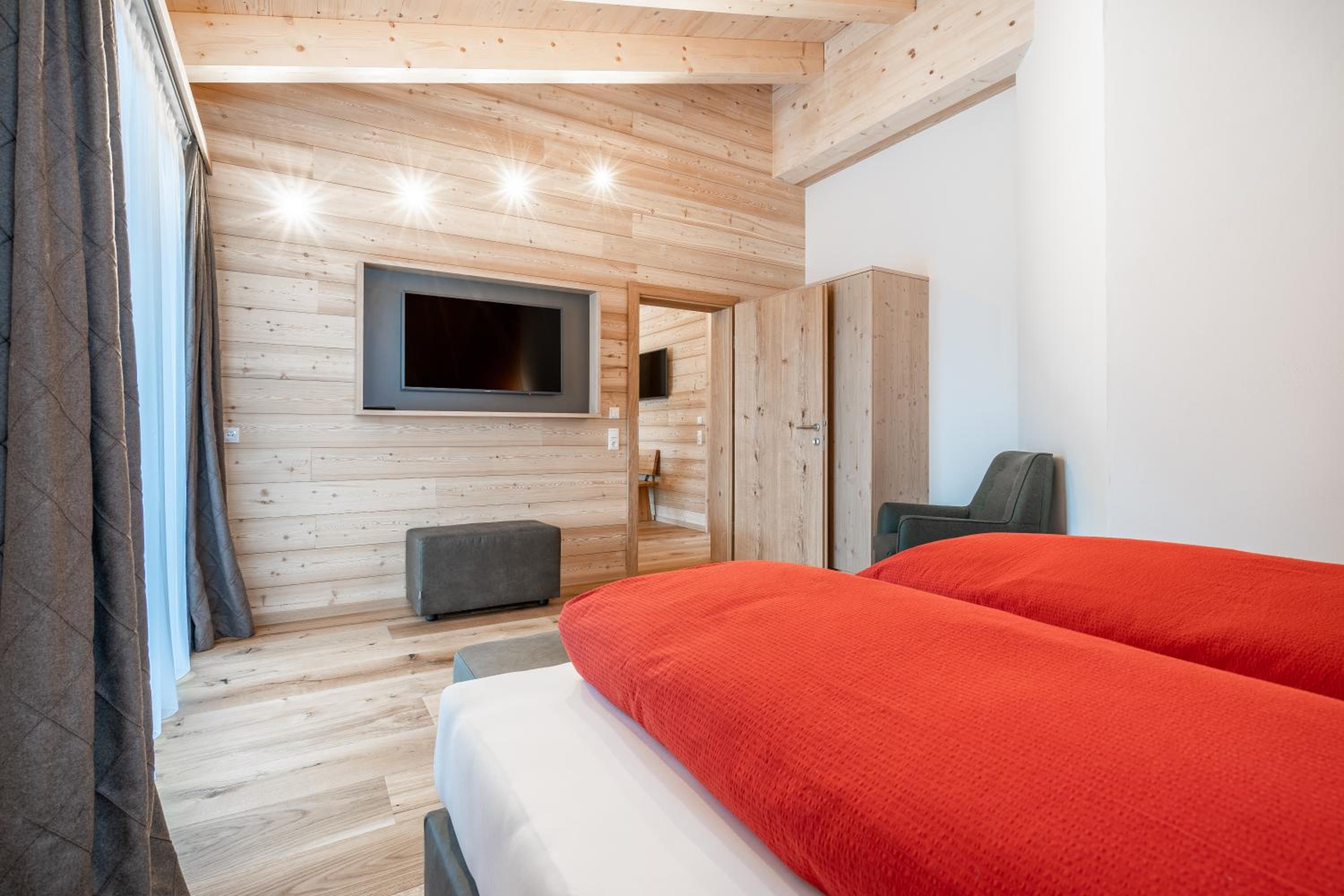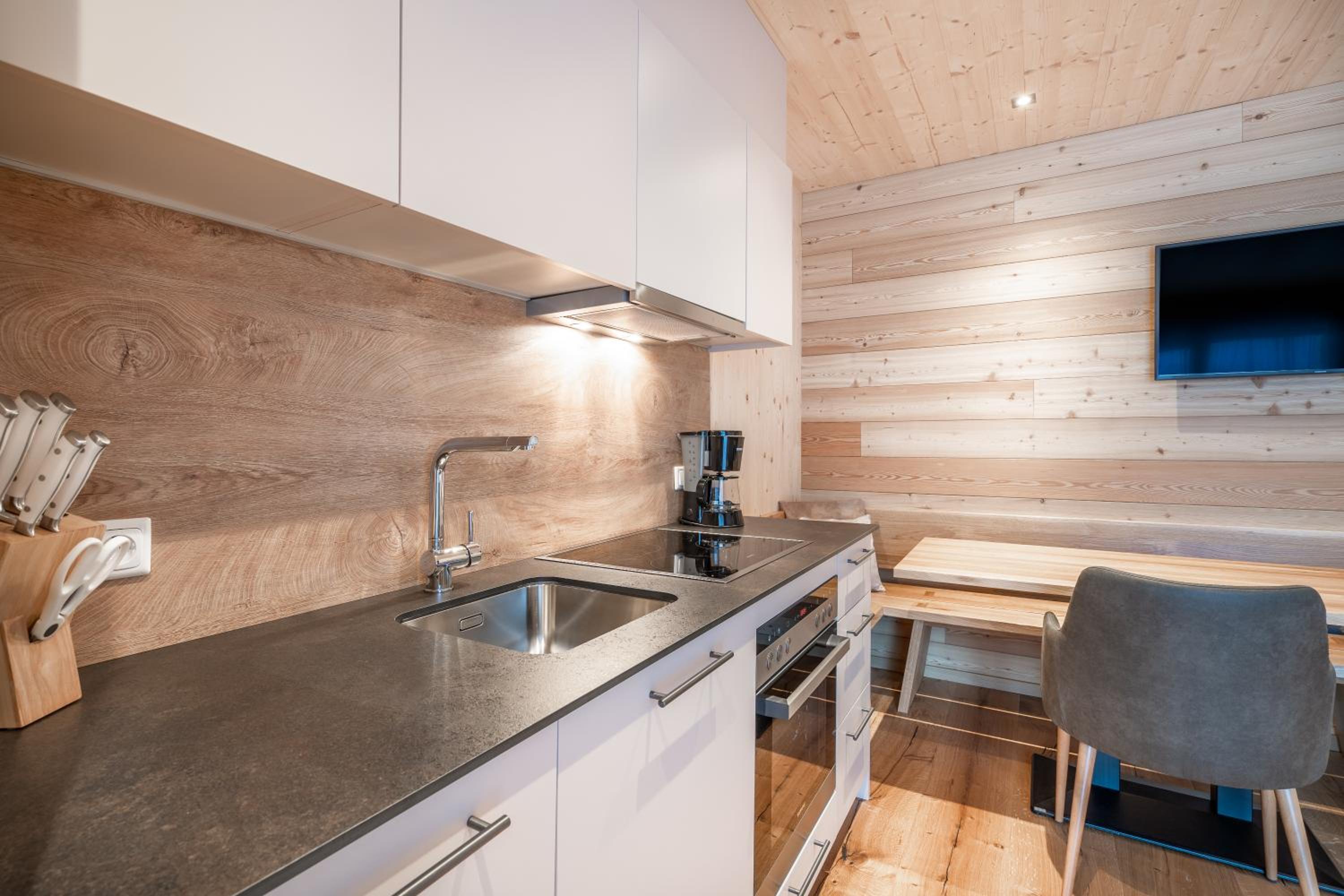 Sehr neu und modern mit viel Holz eingerichtet. Lage fussläufig des Skibus, wenn auch ein kurzer Anstieg. Mit Skidepot an der Talstation Steffisalp aber wirklich kein Thema.