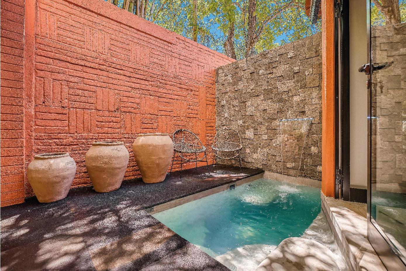 Would like a chair in the room. There is not a place to sit and the outdoor furniture is community. Room is gorgeous but not functional. The lighting is pretty but the bathroom is dark. Description made the room look like it had an ocean view- it does not. We would ask more questions before booking again.
