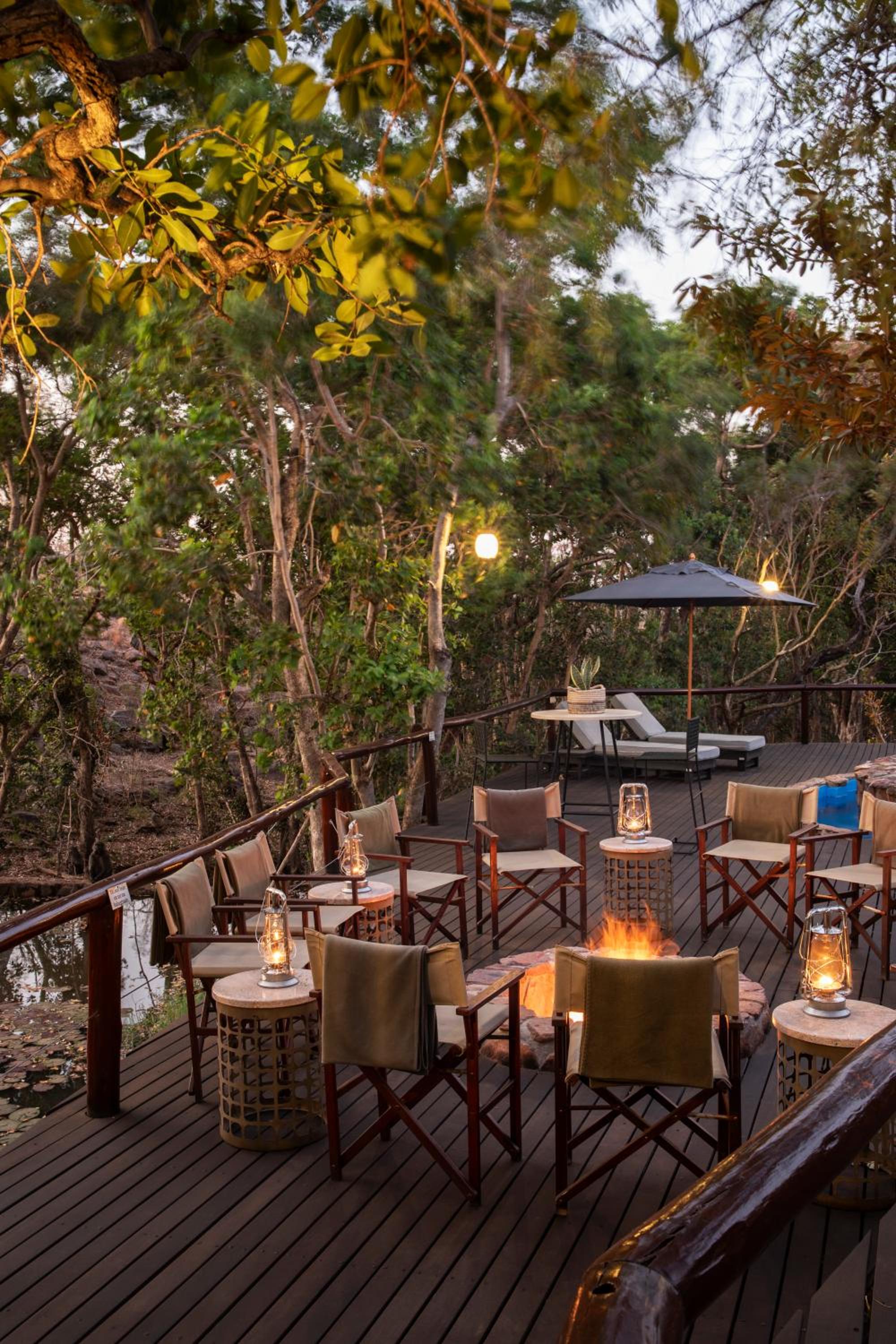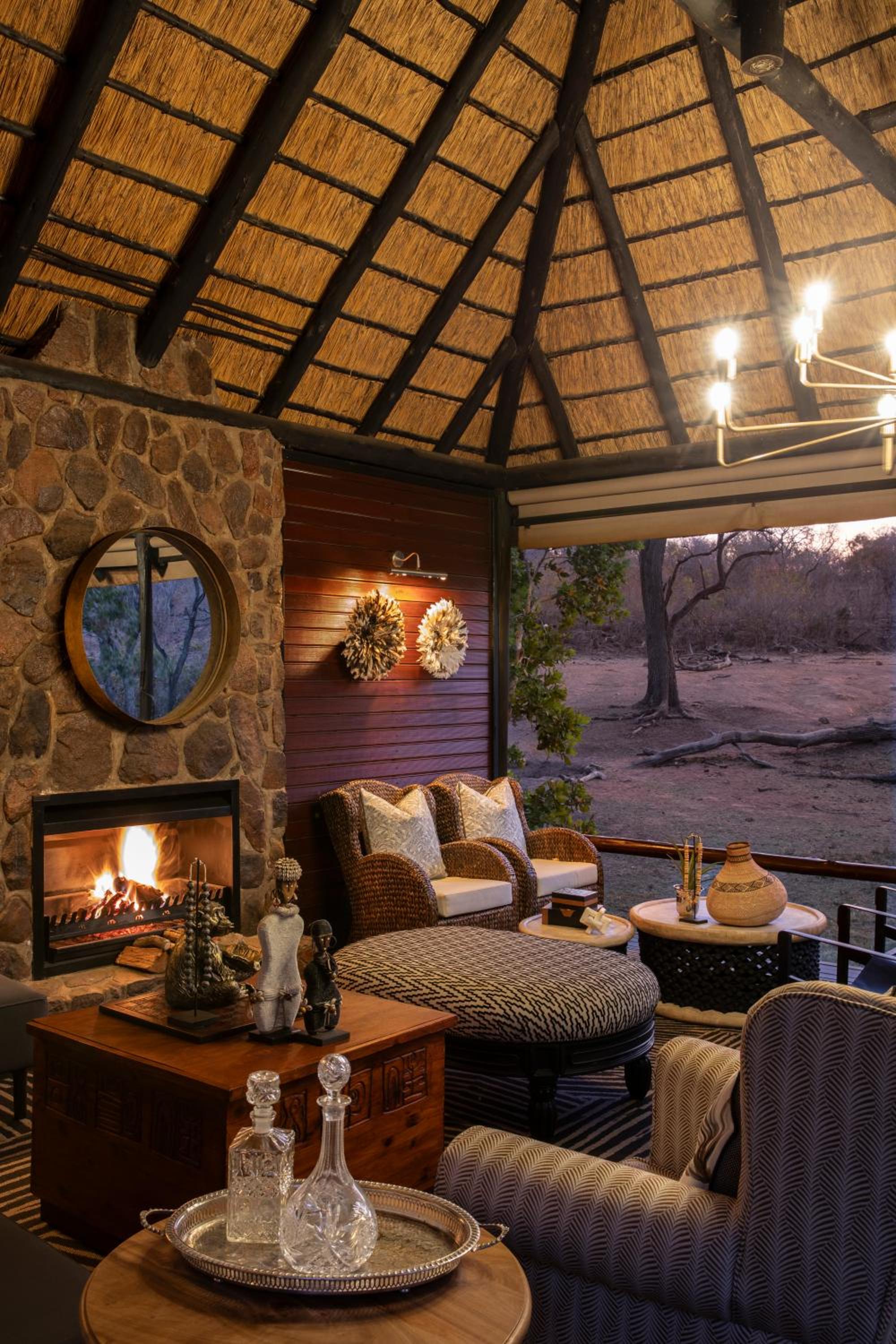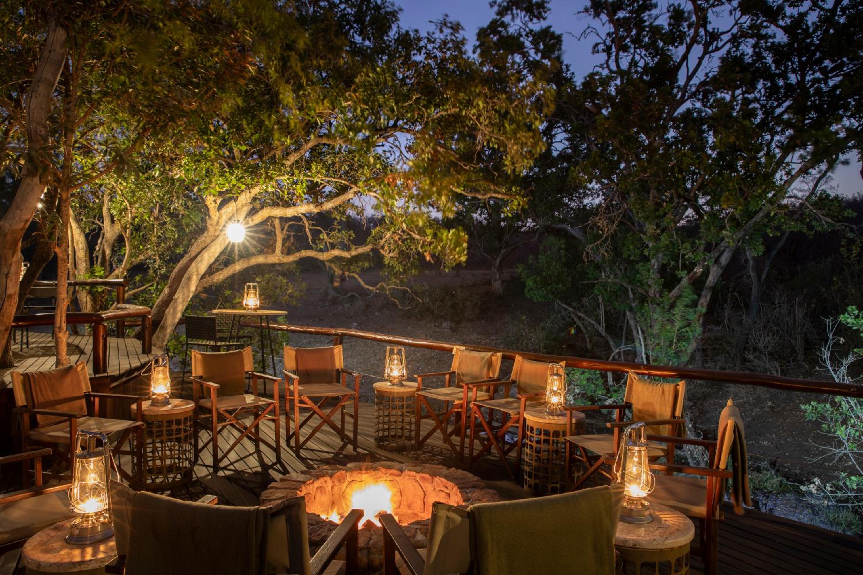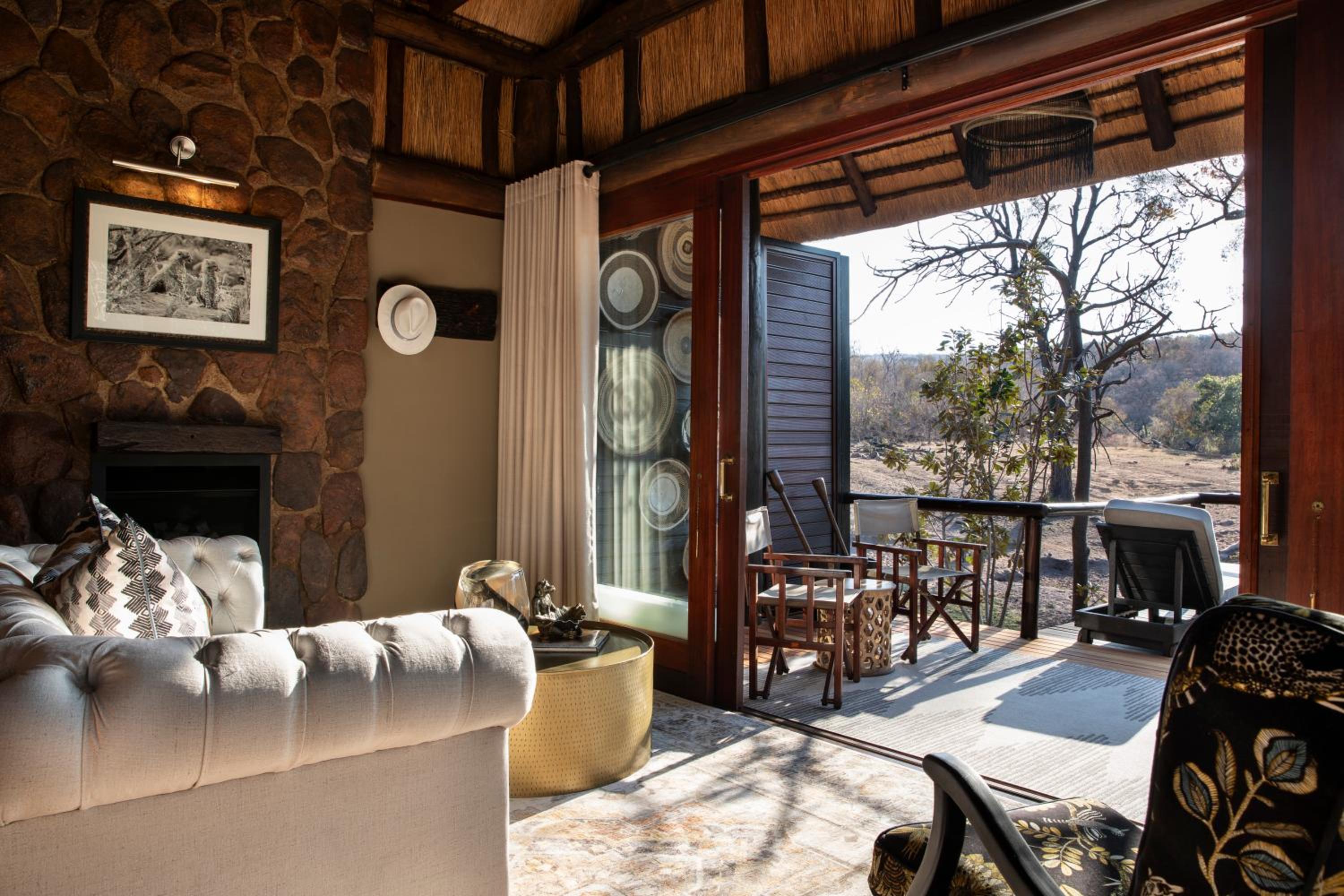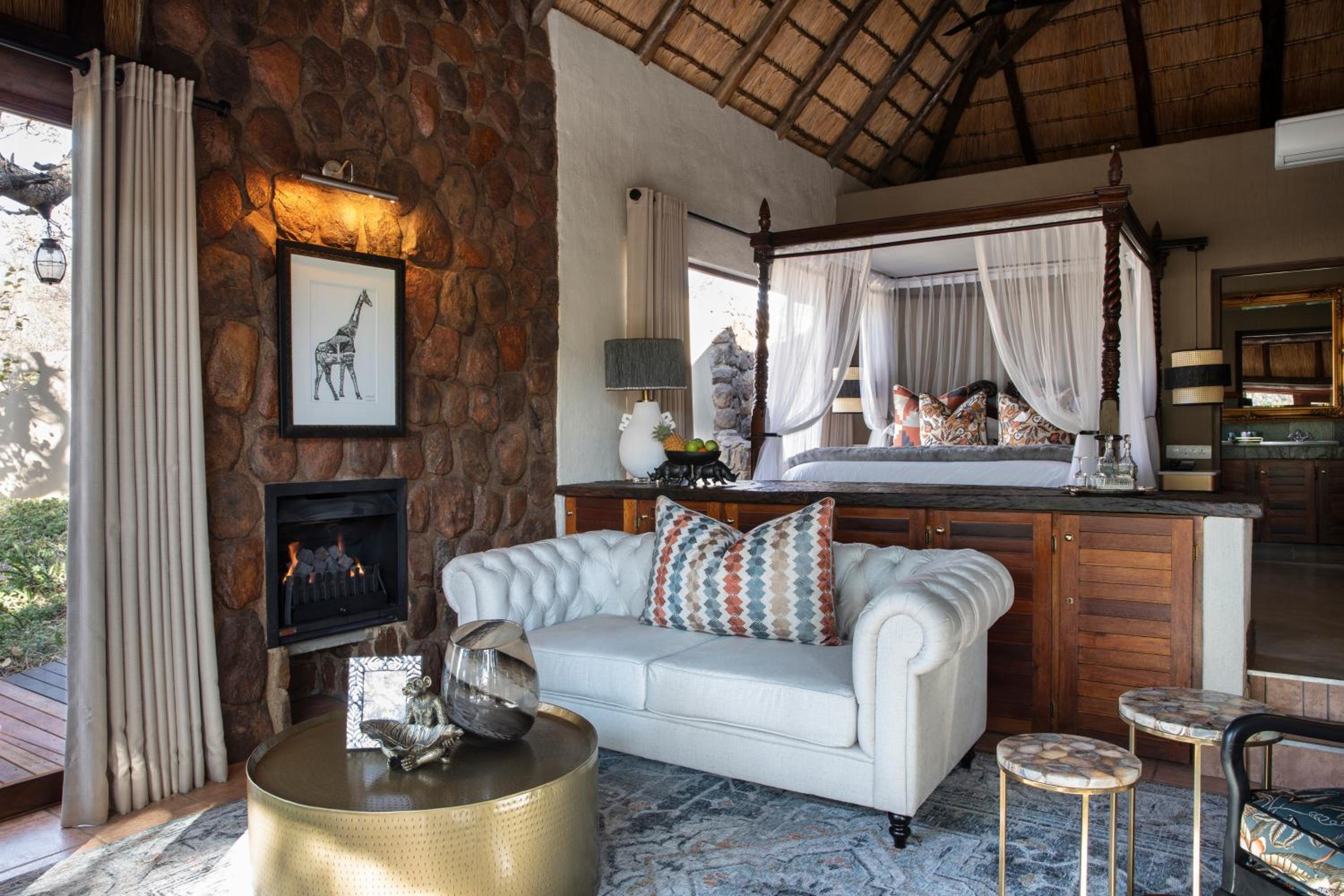 Camp Ndlovu offers air-conditioned luxury units with cozy fireplaces and private bathrooms, all overlooking the beautiful African bush from a spacious deck.