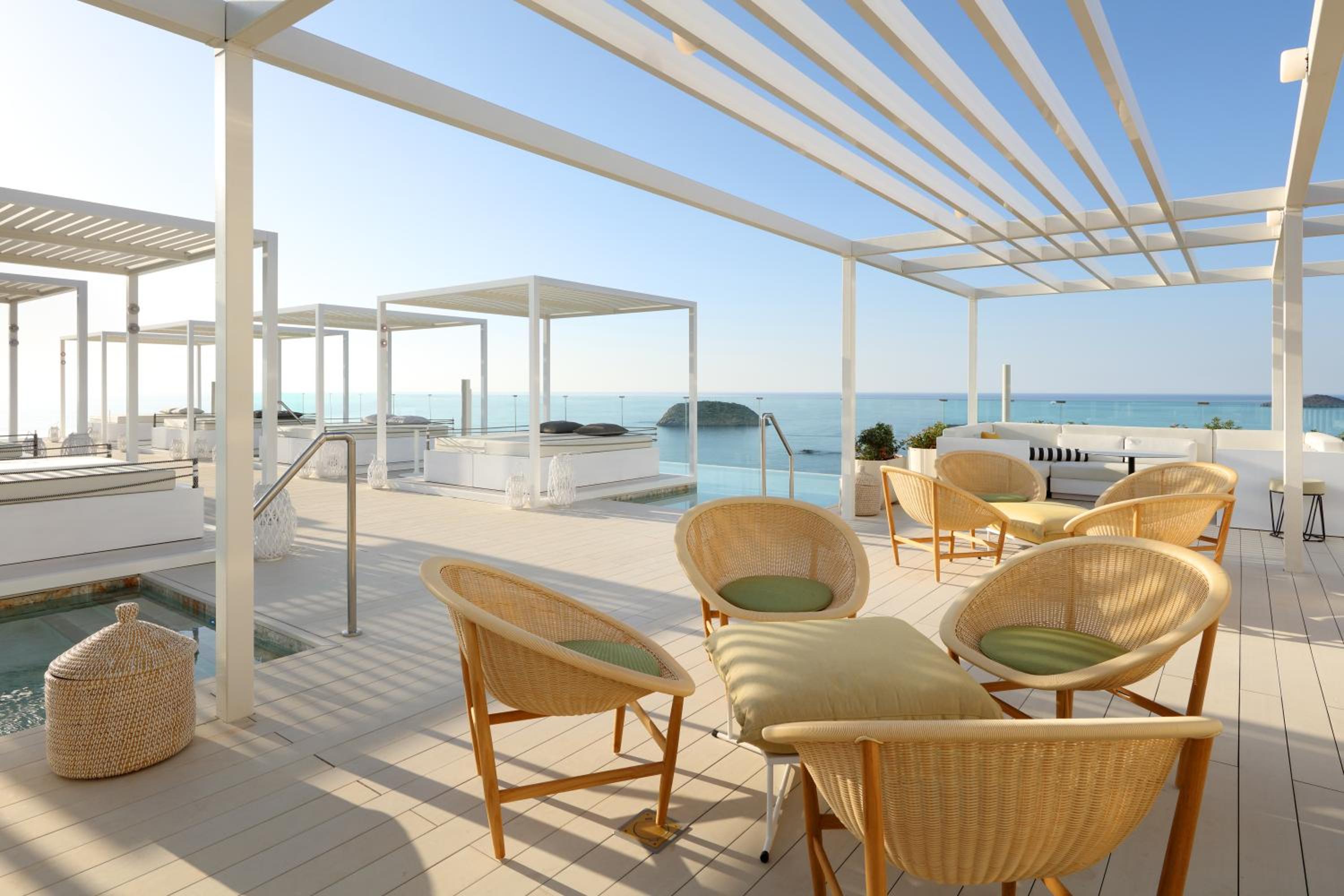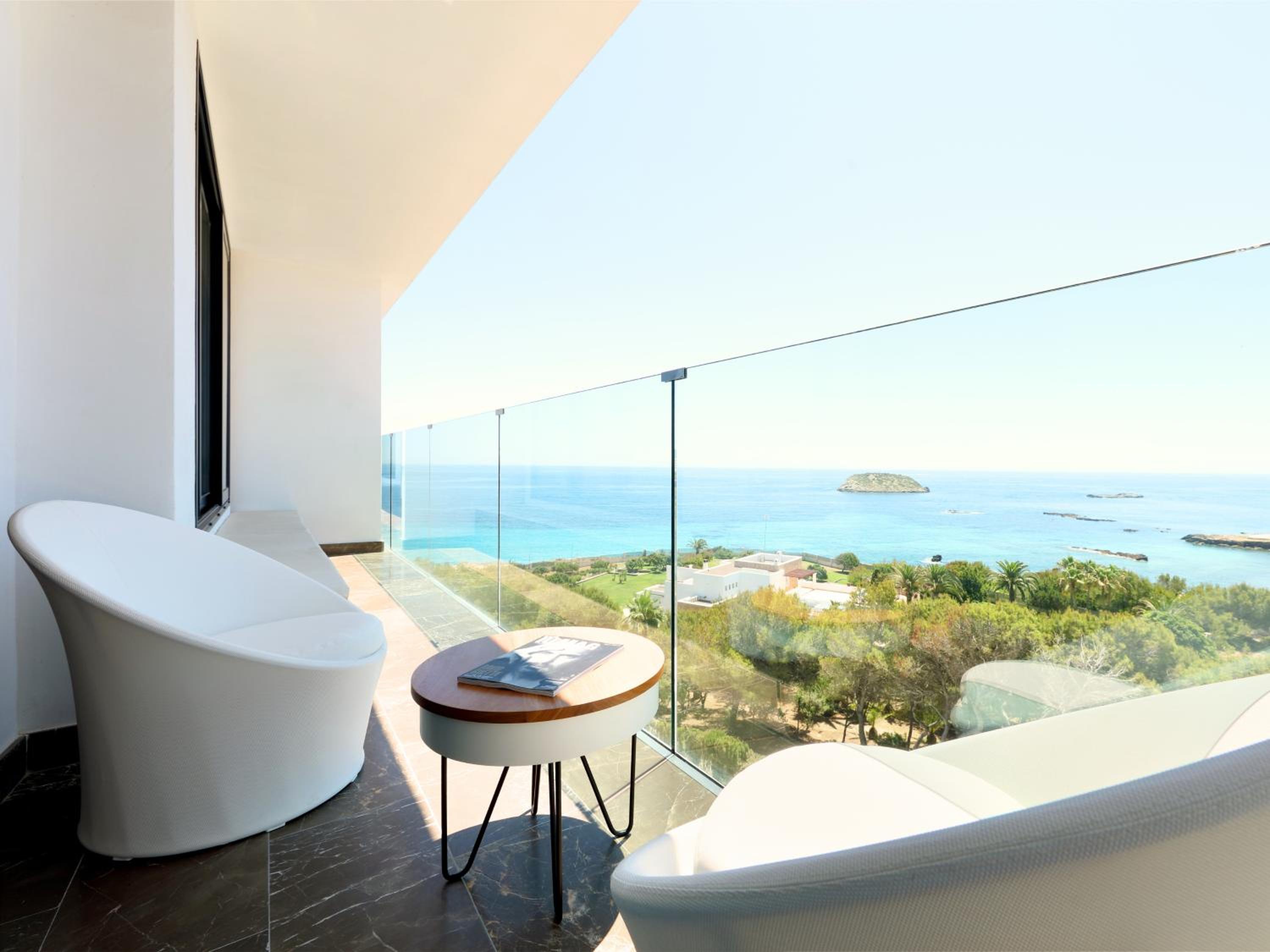 Bless Hotel Ibiza offers breathtaking views of the Mediterranean Sea and Tagomago island. Relax by the outdoor infinity pool or enjoy direct beach access for a truly luxurious experience.