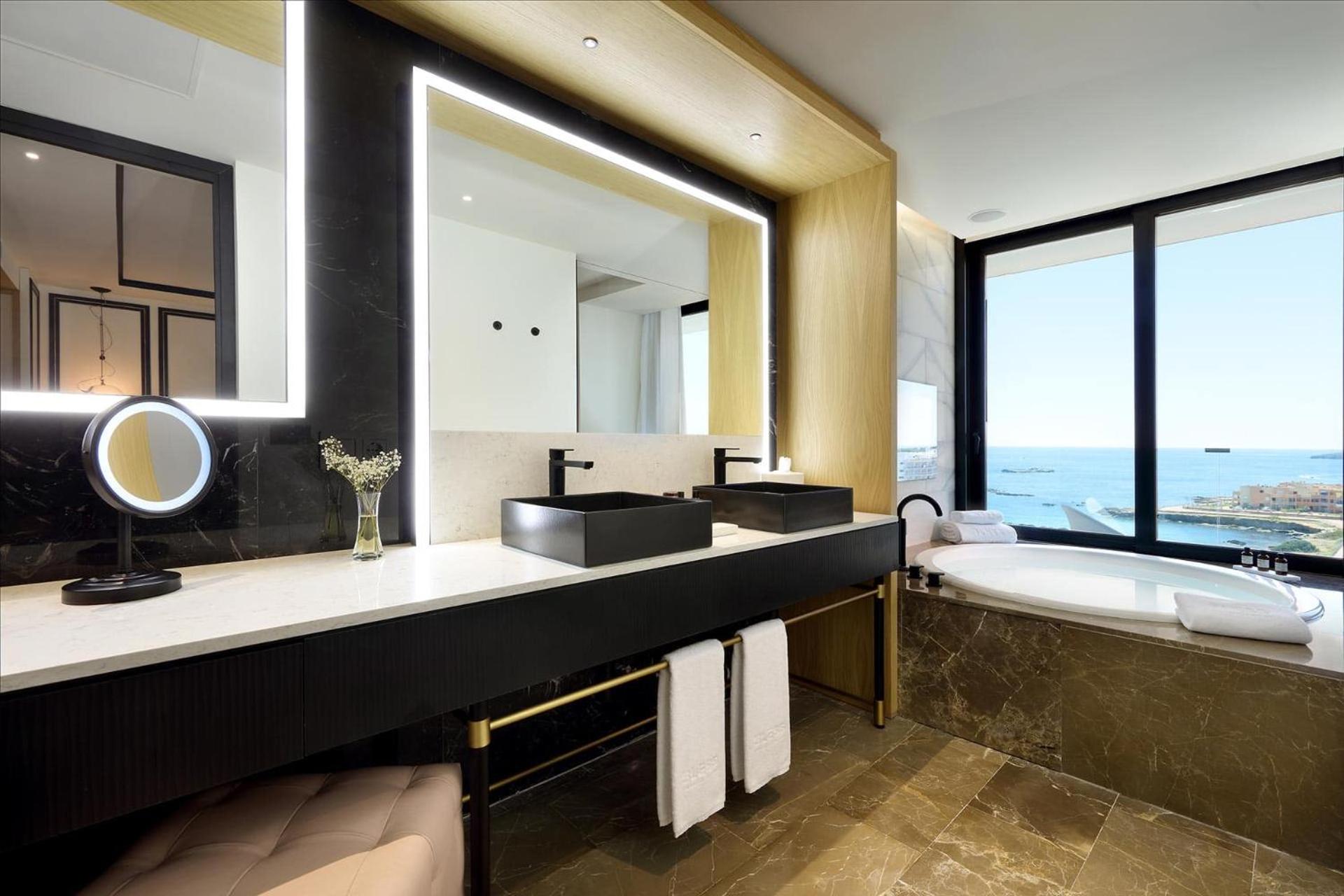 Indulge in air-conditioned rooms with private terraces, satellite TV, and iPod docking stations. The hotel's restaurant, Etxeko, led by Michelin-starred chef Martin Berasategui, offers a special menu for a gourmet dining experience.