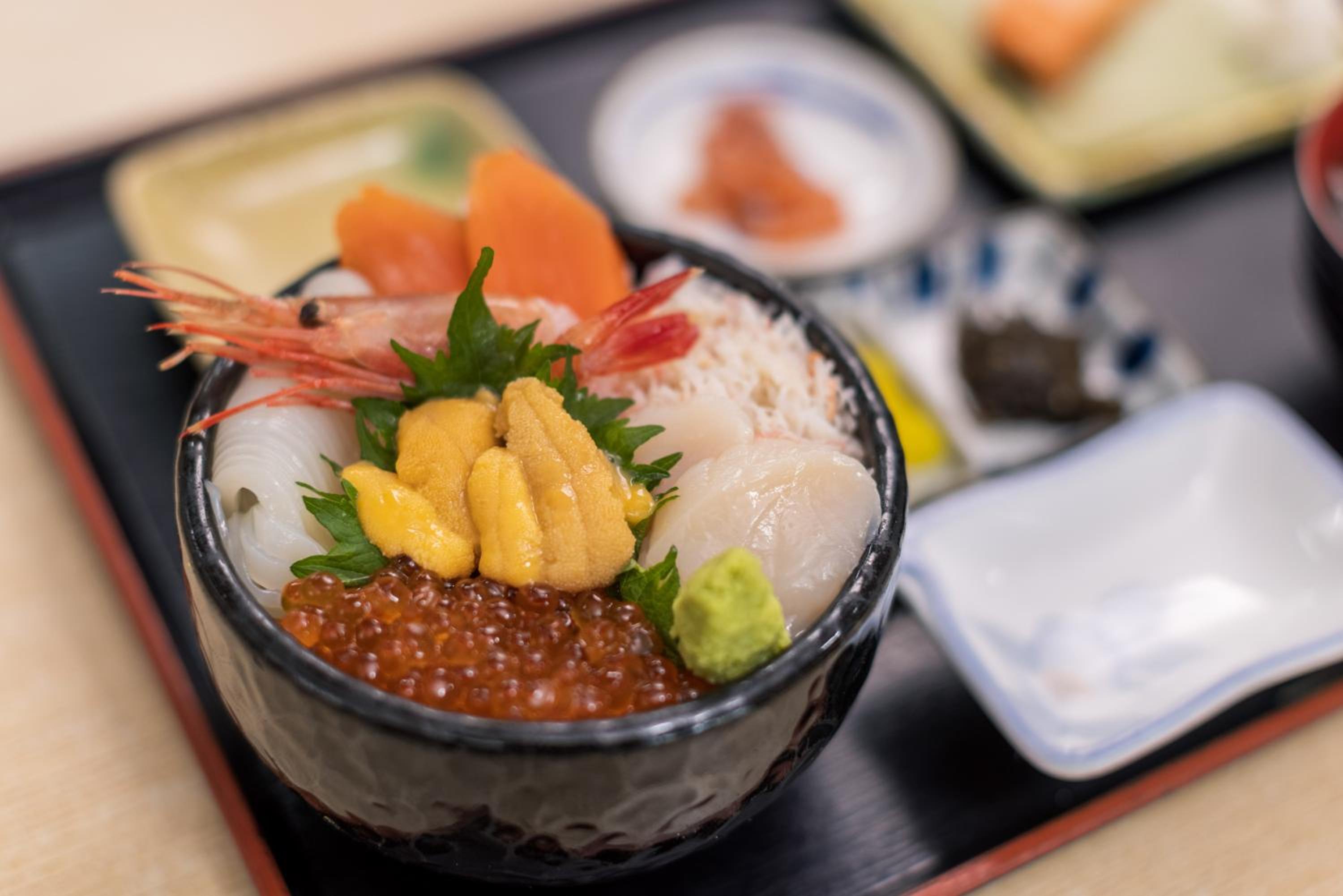 Start your day right with a breakfast selection from offsite restaurants at Hakodake Morning Market, showcasing the finest Hakodate ingredients.