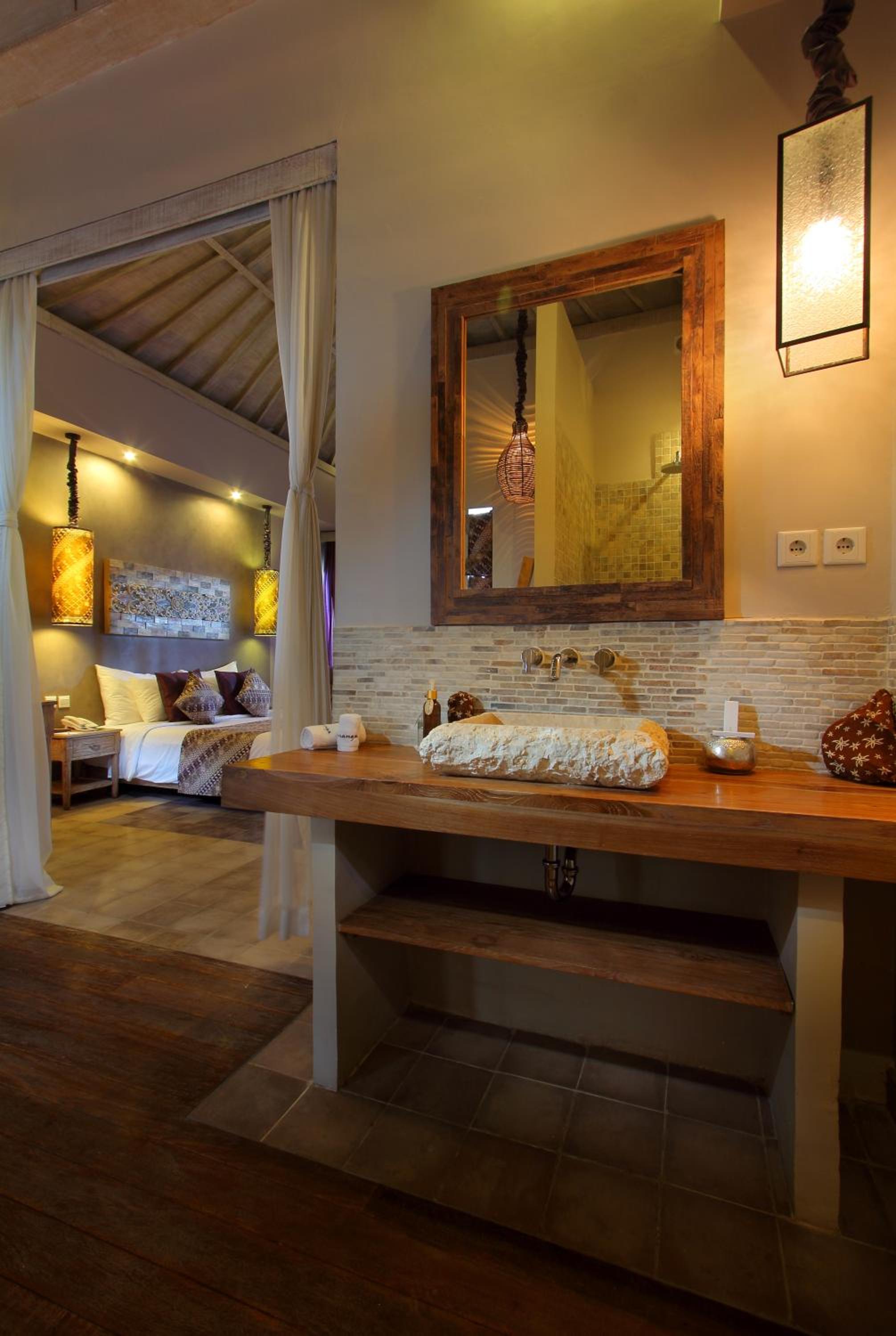 Indulge in the modern Balinese architecture and décor of the luxurious rooms and bungalows, each equipped with a private terrace and flat-screen TV for your comfort.