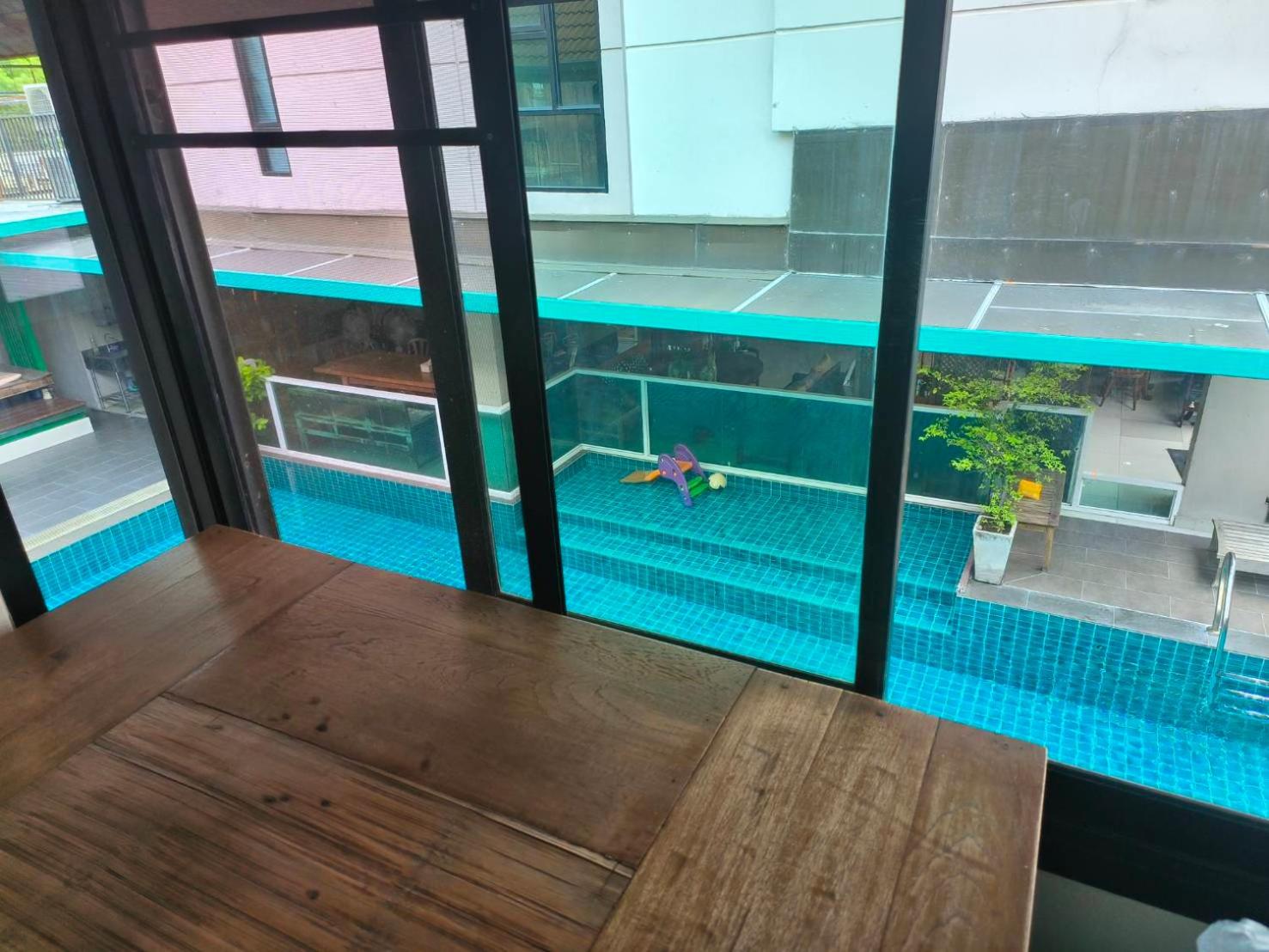 Enjoy a refreshing dip in the outdoor swimming pool or unwind on the terrace at Baan Tanwa - MRT Ratchadapisek. Perfect spots to relax and soak in the vibrant atmosphere of Bangkok.