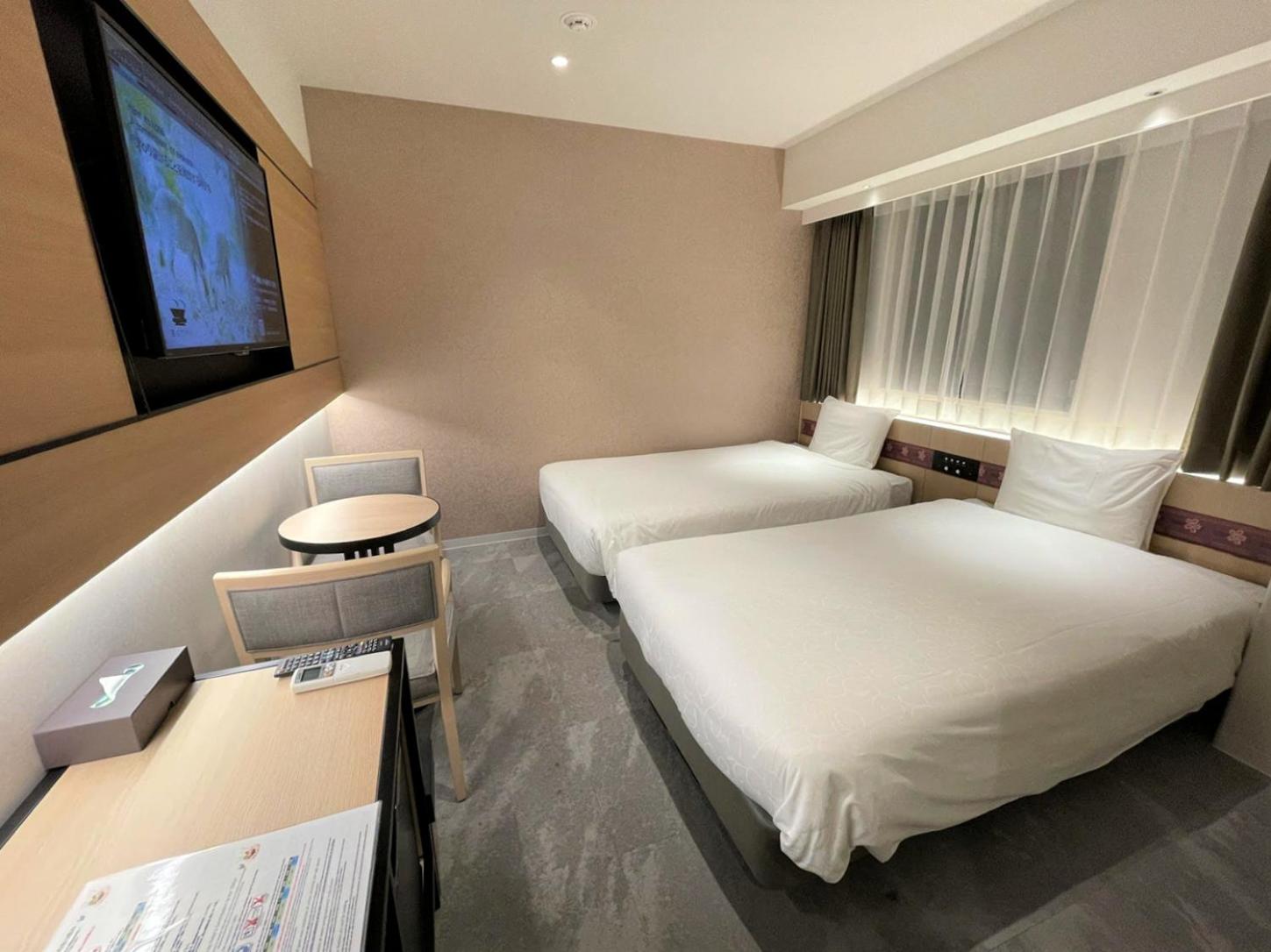 床很大,可以睡三個成人,把桌椅挪動後,1~2件大行李也有空間打開,全程自助入住,不用擔心太晚到達,有英文、日文、中文可以選,掃描完護照,機器自動發出房卡。兩間房二人房含早餐,一天共台幣三千六左右。早餐還ok ,西式簡單自助式的。入住和退房當天,都可以自助式的寄放行李,很方便。