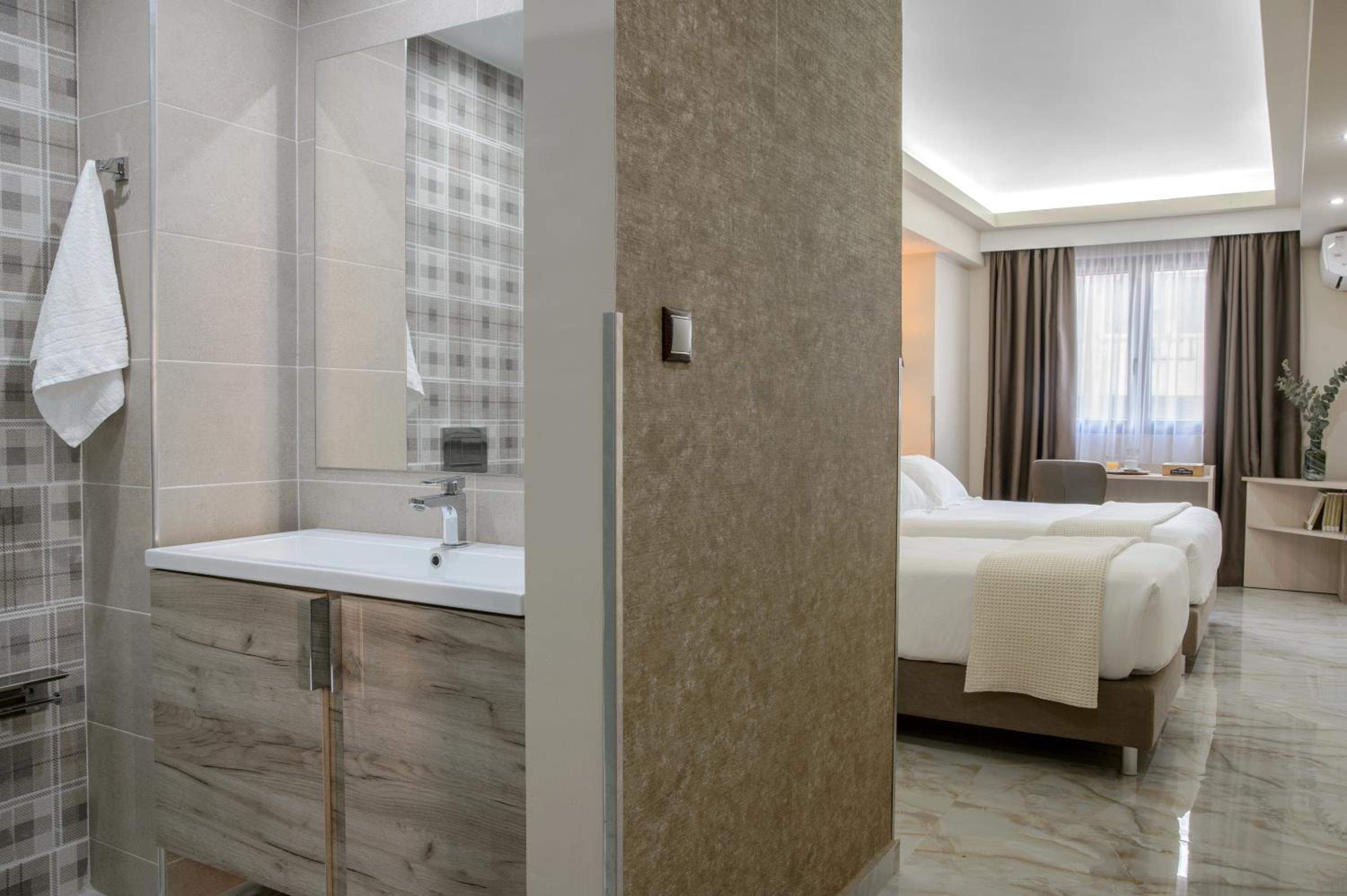 Ζεστό νερό όλες τις ώρες, καλό ίντερνετ, κοντά στο κέντρο της Αθήνας. Πολύ ωραίο πρωινό. Ευγενικό προσωπικό.