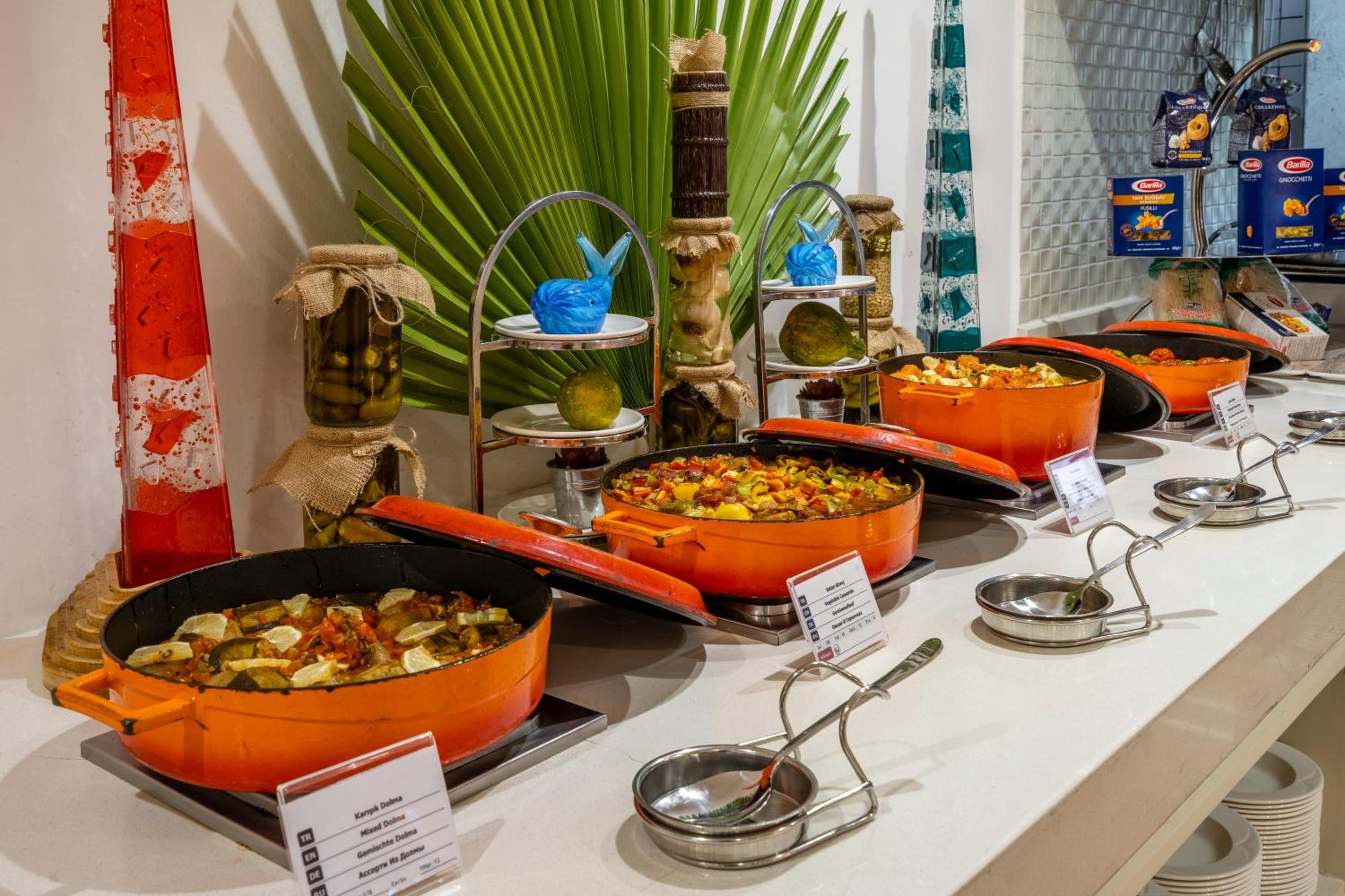 Питание, на высшем уровне . В отеле готовят и турекцие и европейские блюда . Есть даже борщ, куриный супчик, сырники и тд . Роллы очень вкусные, они без риса, там сплошная рыба и нори, это супер . Морепродукты каждый день. Креветки, кальмары, лосось , дорадо, мидии, осьминог . Выпечка очень вкусная . И что самое интересное, в ресторане нет запаха приготовления еды, значит вытяжки у них очень сильные . Блюда оформленны красиво и везде чисто . Форма у официантов красивая , чистая .