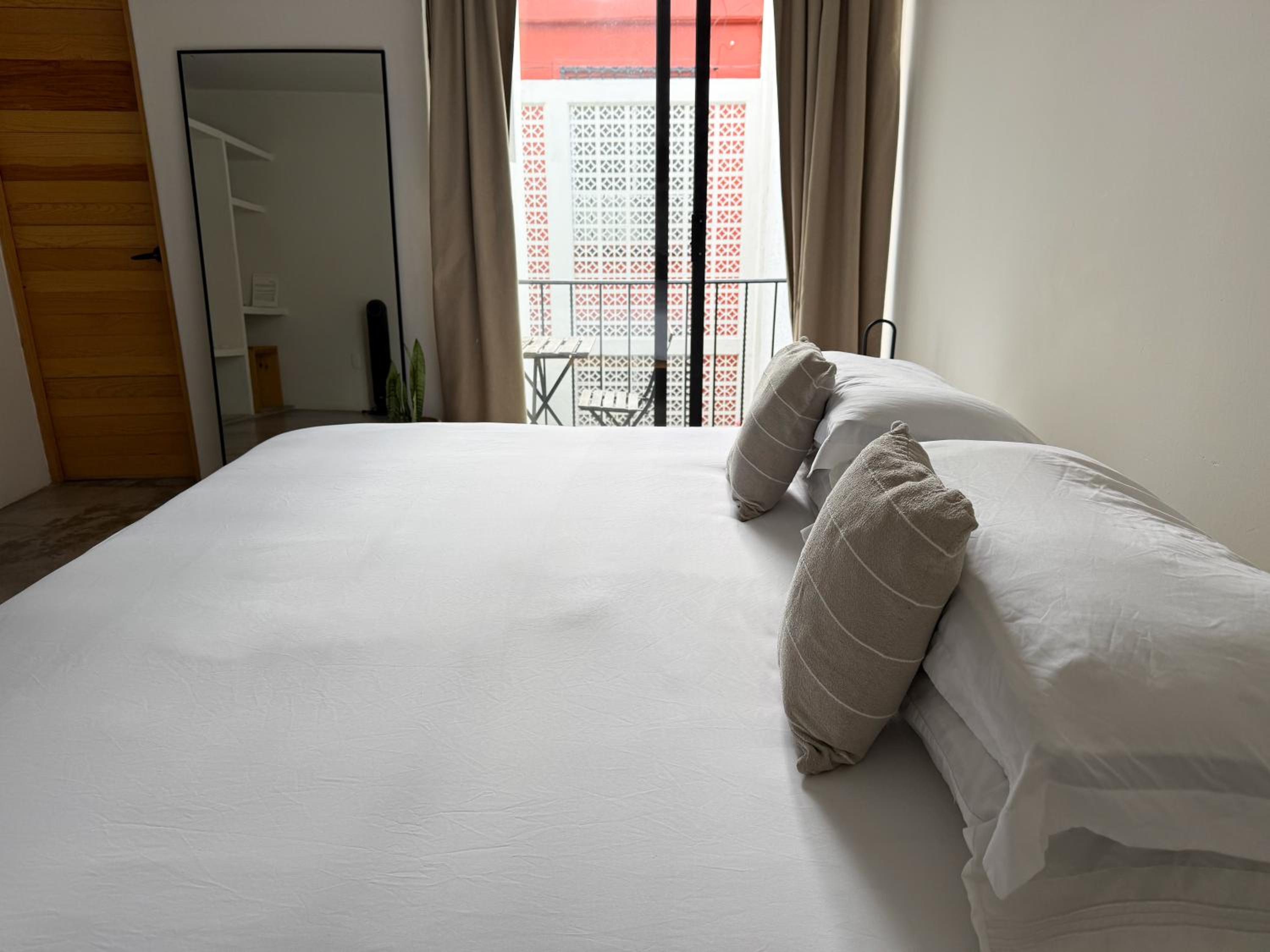 Il posto è bellissimo e la nostra stanza al primo piano aveva tutto il necessario, oltre a un bellissimo piccolo patio interno. Il letto era comodo e sia la stanza che l’intera struttura erano molto puliti. Si trova vicino al centro, a soli 15 minuti a piedi dallo Zócalo, e la sera è stato tranquillo tornare a piedi. Tutte le istruzioni per il check-in e il check-out erano chiarissime e la comunicazione con l’host è stata molto facile. Un punto molto positivo è stato il primo lavaggio dei vestiti gratuito.