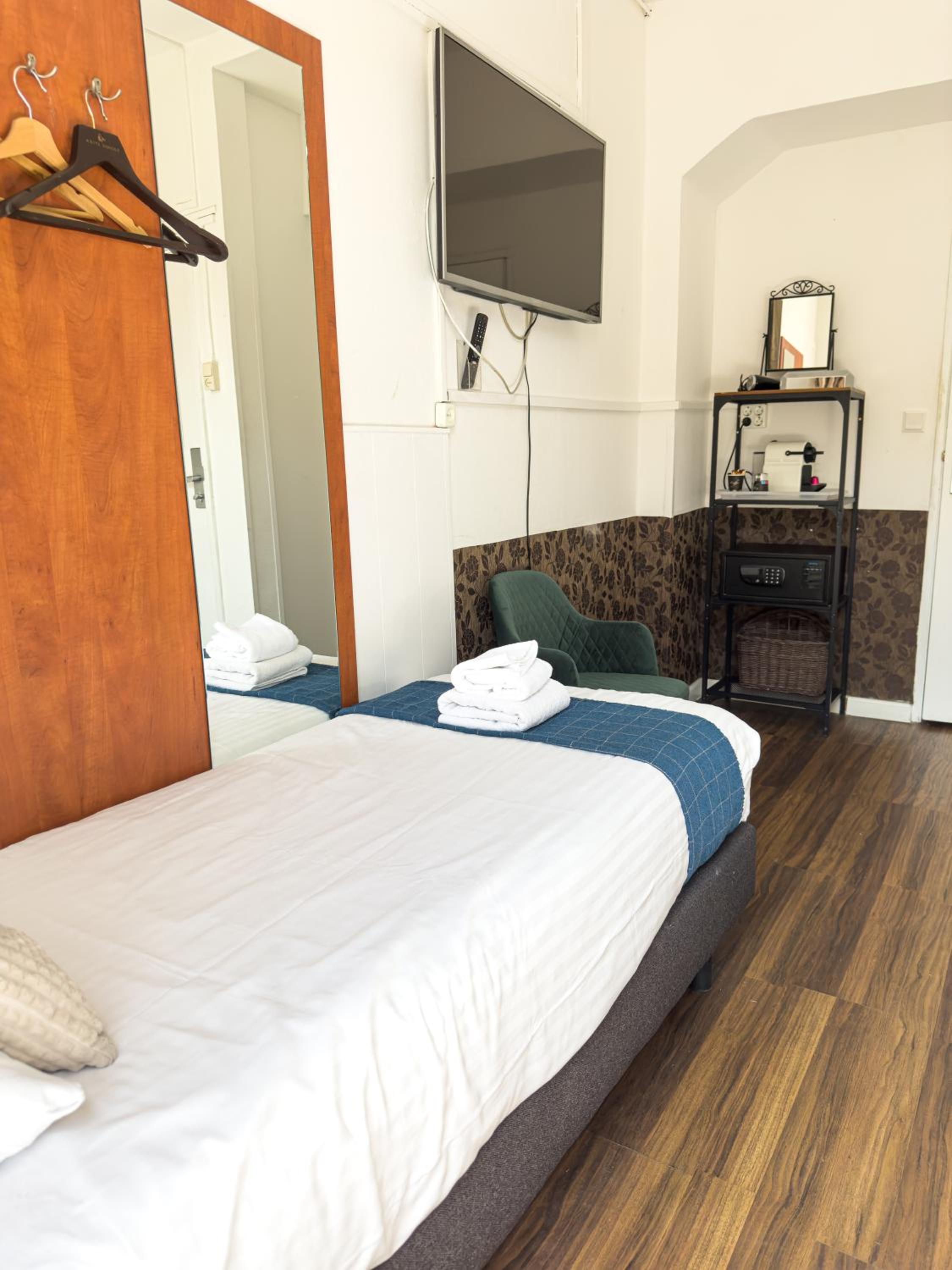 Kamers zijn gewoon vervallen, net als de rest van het gebouw. Best jammer want met zoveel kamers is er best iets van te maken. Douche wordt wel warm, na wat geduld. Enkel glas, overal dus erg gehorig en dat gaat ook wel de hele nacht door. Op zich geen ramp als je daar rekening mee gehouden hebt.