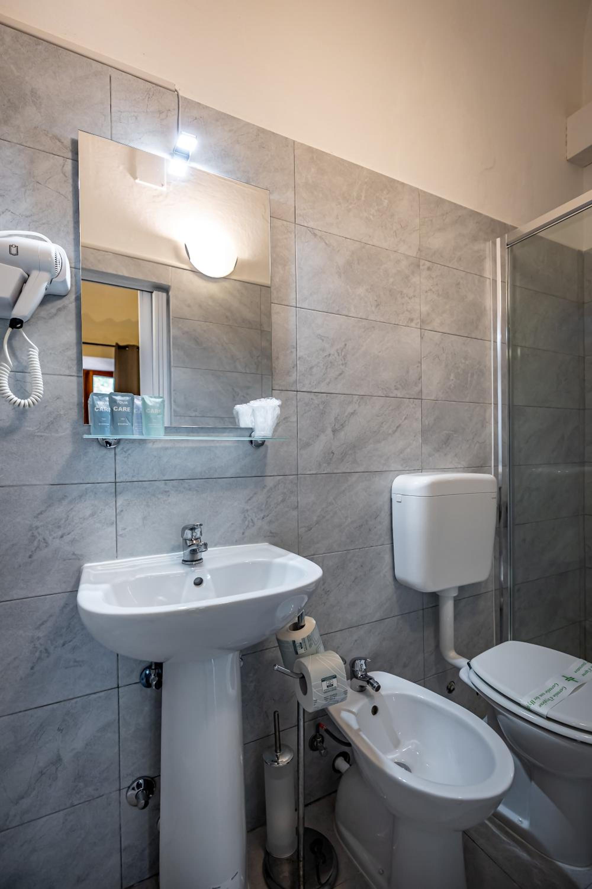 El hotel esta limpio, las habitaciones son mas o menos grandes que para dormir sobra, baño con bide, wc y ducha independiente, cosa q en alguno de Italia me he encontrado que no.