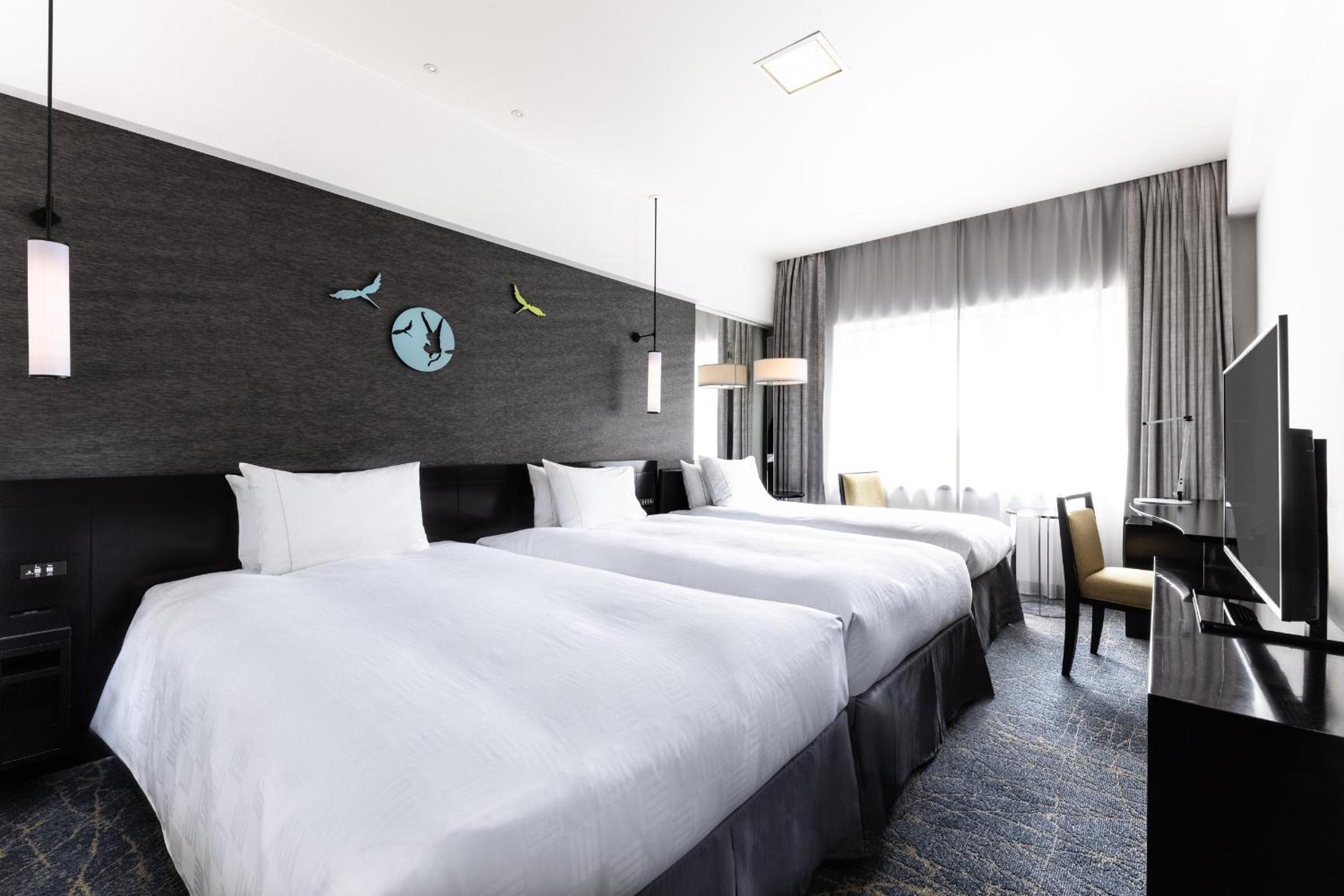 The Royal Park Hotel Kyoto Sanjo offers sleek and modern rooms with free wired internet access, flat-screen TVs, and elegant decor. The private bathrooms feature spacious shower areas and bathtubs, providing the perfect retreat after a day of exploring Kyoto.
