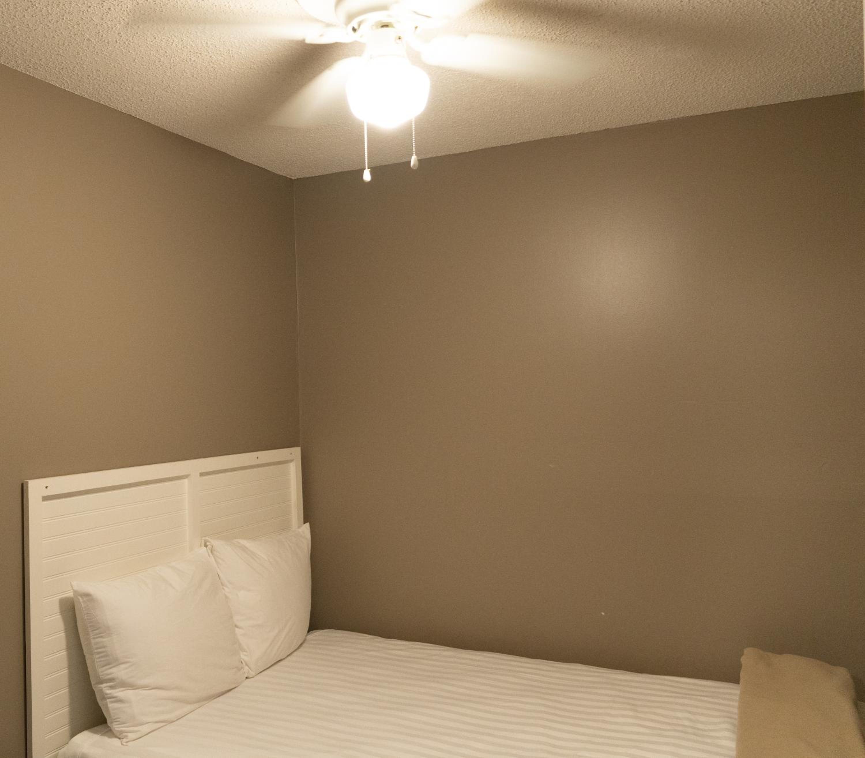 The beds were the most uncomfortable bed I have been on. There was no blankets available just sheets. Bathroom was filthy. The kitchen cabinet had roaches in them