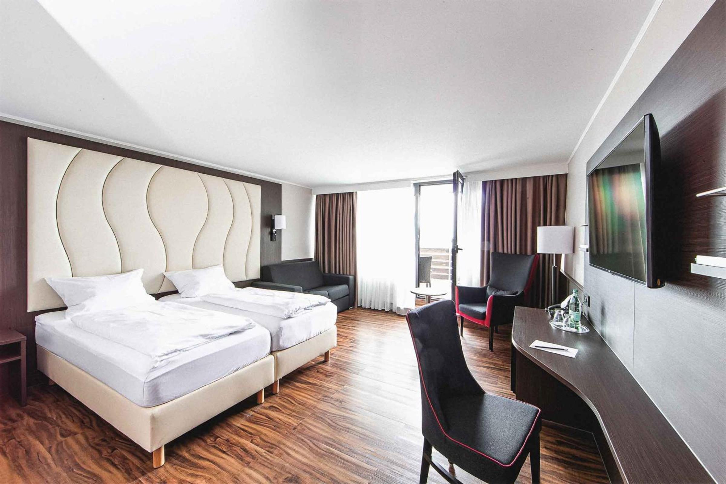Experience breathtaking views of Lake Constance and the Swiss Alps from the comfort of your room's south-facing balcony.