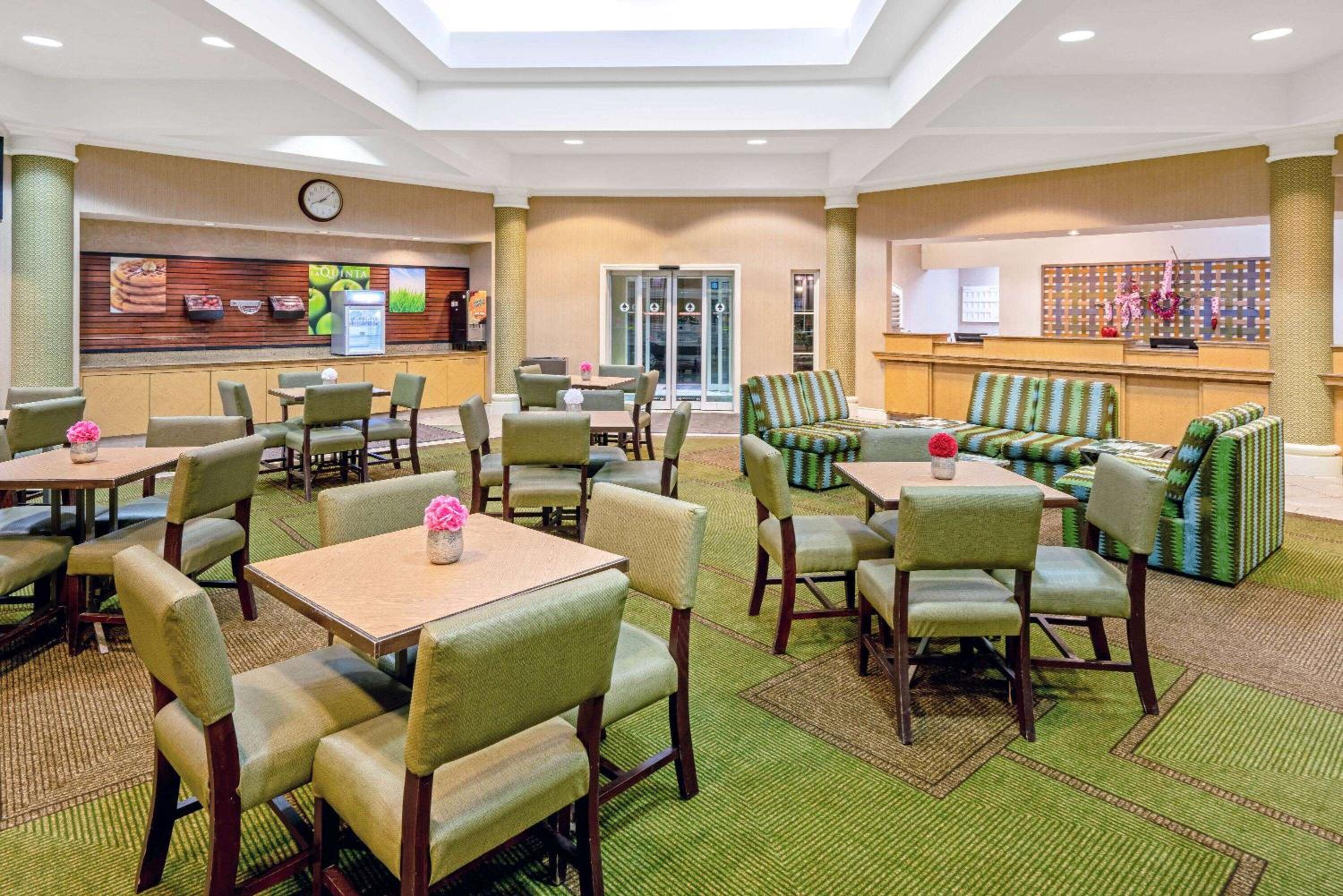Indulge in a breakfast spread featuring waffles, cereals, fresh fruit, and more at the Salt Lake City Airport La Quinta Inn & Suites. Satisfy your morning cravings before heading out to explore nearby attractions like the Hogle Zoo and Antelope Island State Park.