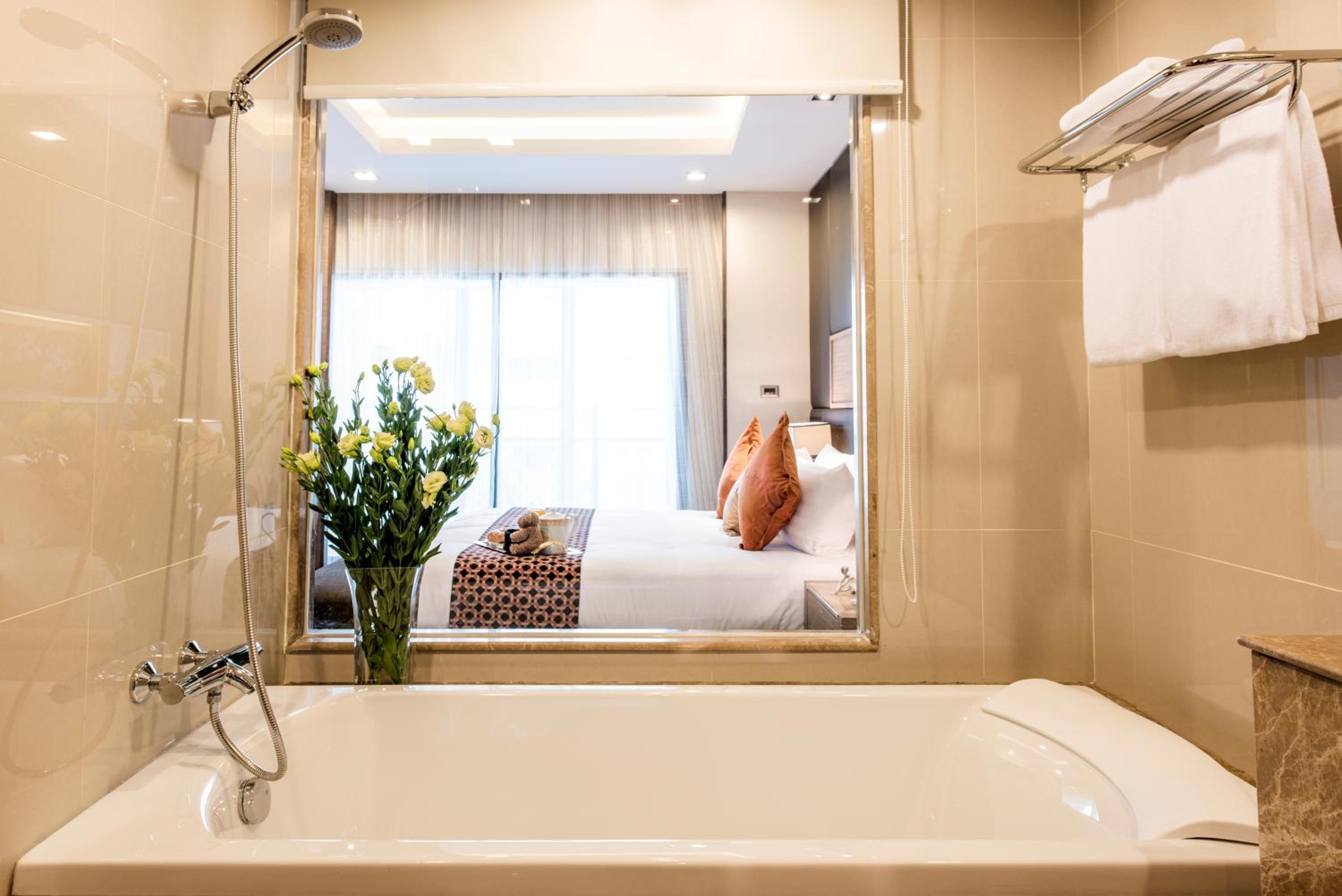 Qiss Residence by Bliston - SHA Plus, located in the heart of Bangkok, offers elegant rooms with city views, flat-screen TVs, and private balconies. Each room is equipped with modern amenities for a comfortable stay, including air conditioning, plush bedding, and a fridge for convenience.