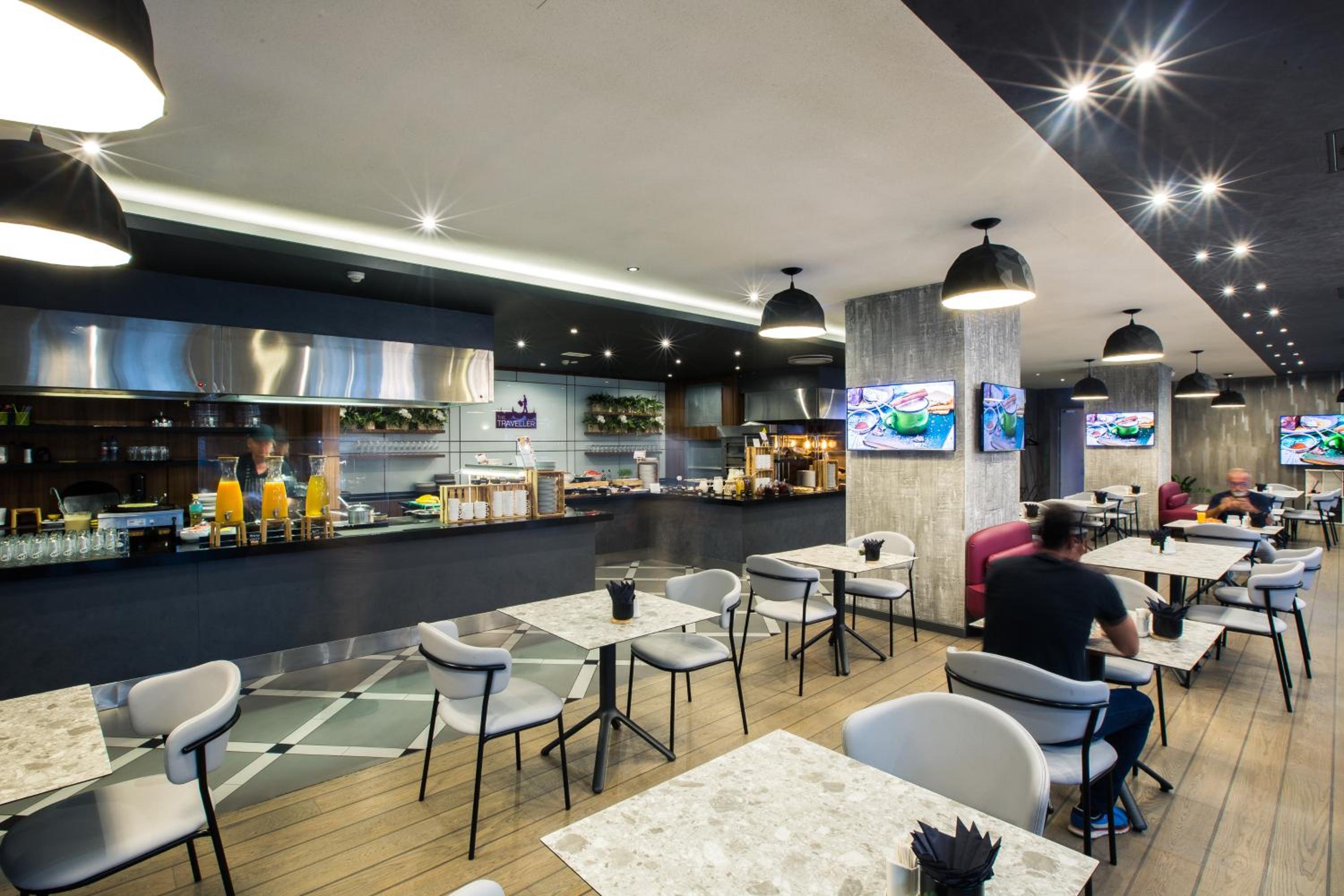Savor a culinary journey at Restaurant The Traveller, offering a diverse menu of hot meals, cold snacks, and a wide selection of drinks. Enjoy a delightful dining experience without leaving the hotel.