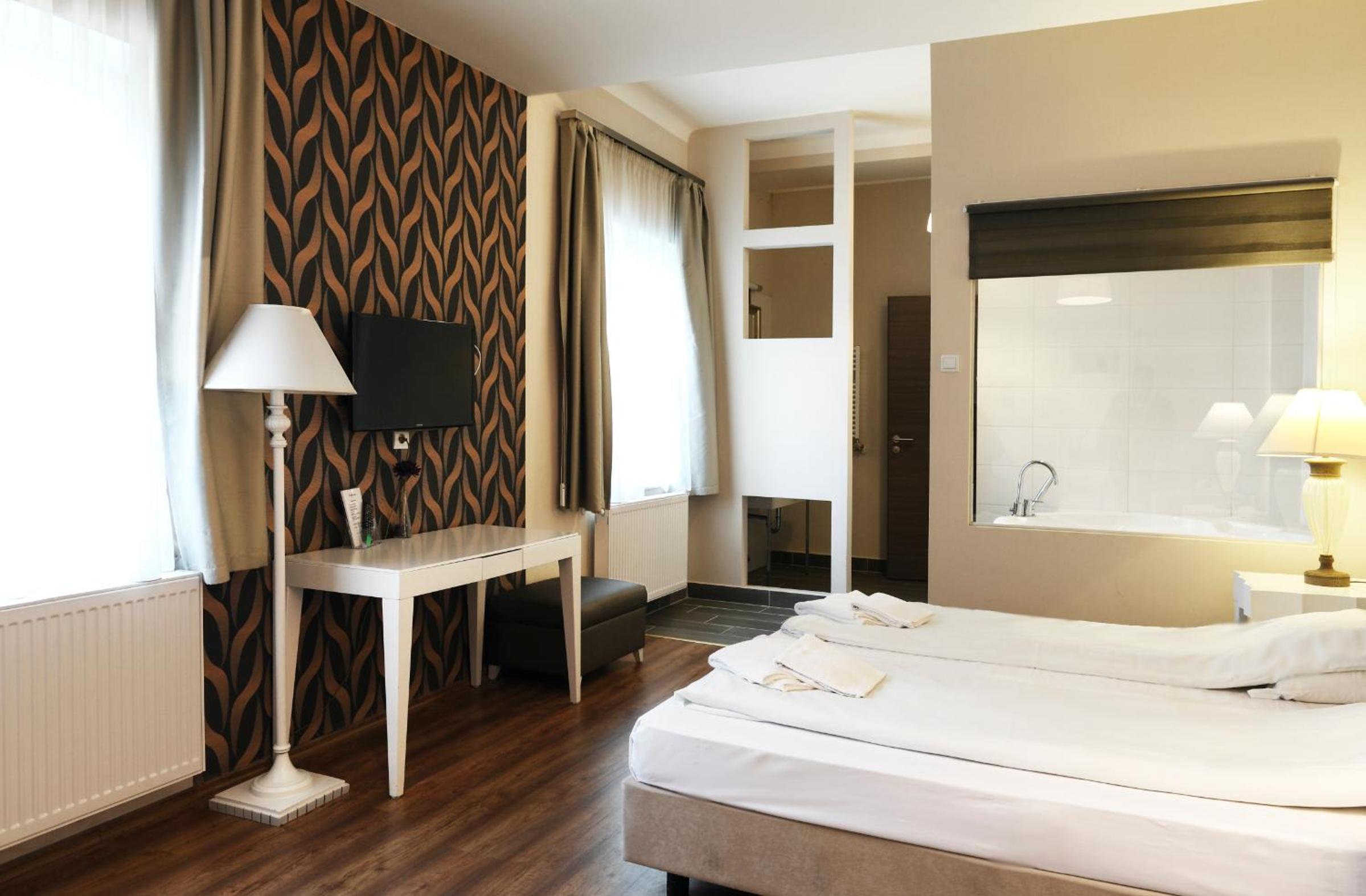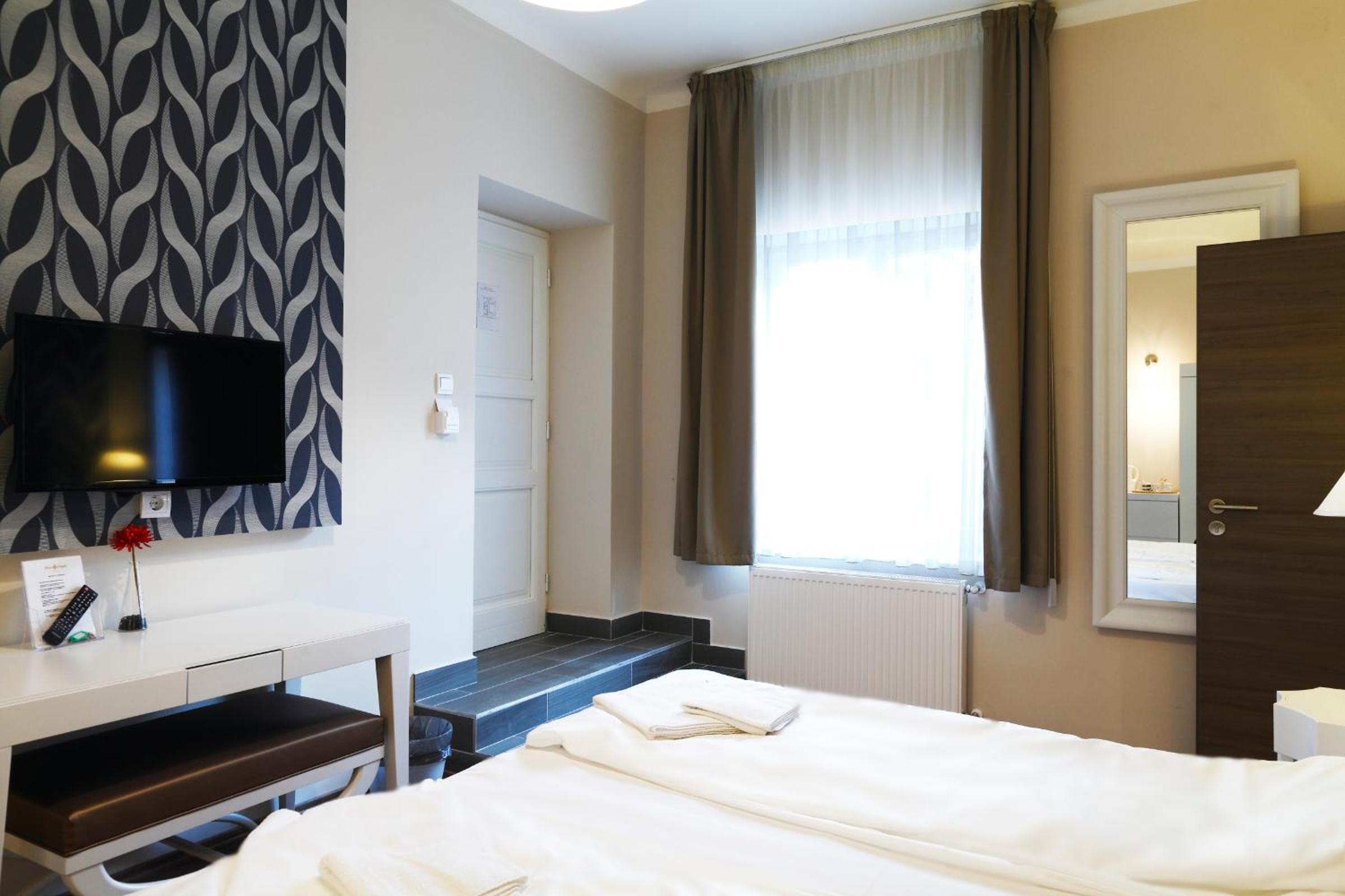 Enjoy a comfortable stay in our stylishly decorated rooms, each featuring a flat-screen cable TV, minibar, and kettle. The en-suite bathrooms offer a choice of shower or bathtub, along with hypoallergenic pillows and blankets. Opt for daily maid service for an extra touch of luxury.