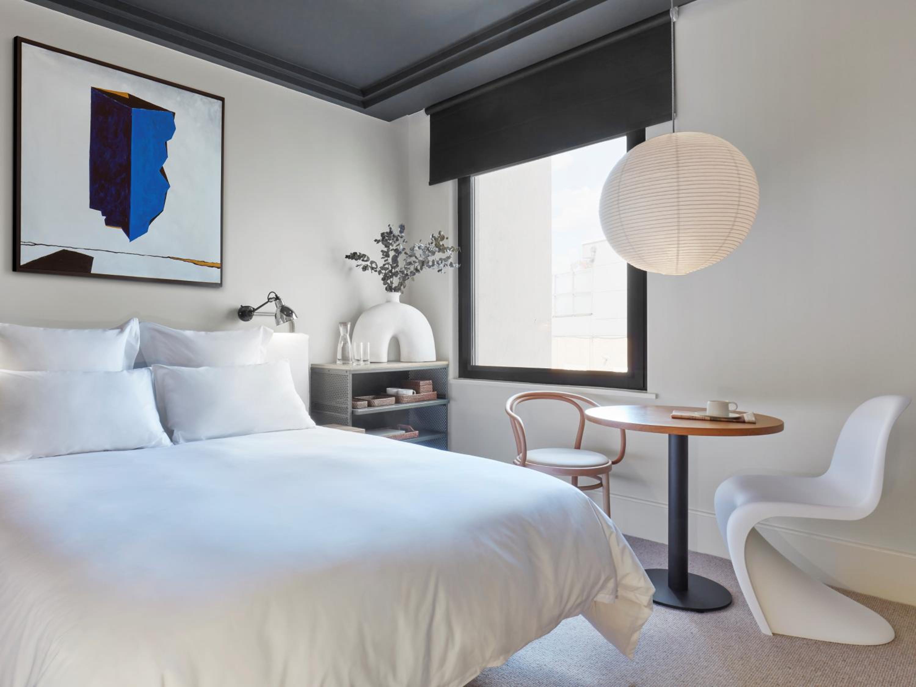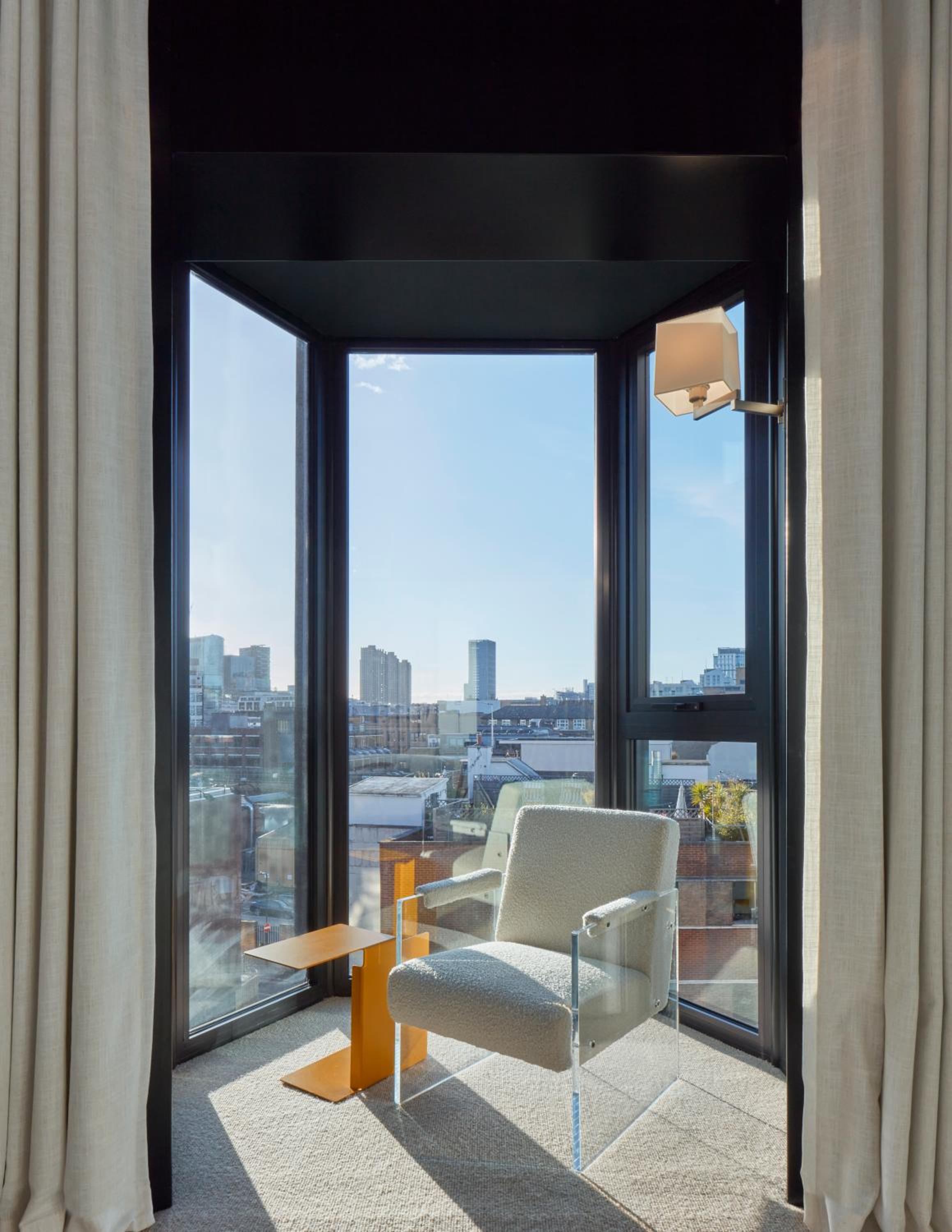 Escape the hustle and bustle of the city in the thoughtfully designed bedrooms and suites at One Hundred Shoreditch. Featuring a minimalist design, comfortable seating, and bespoke art, these spaces provide a peaceful sanctuary amidst the lively neighborhood.