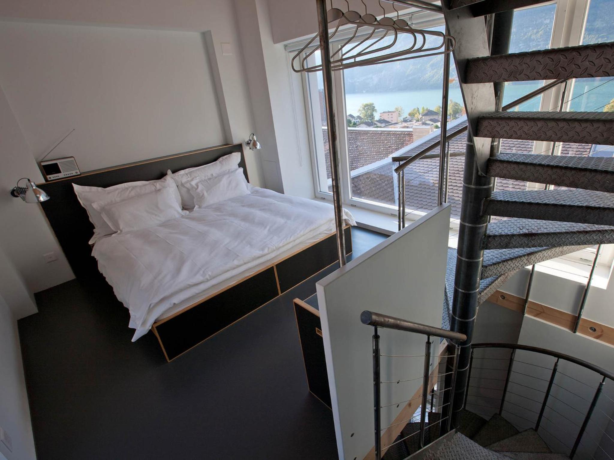 Ein wirklich besonderes Hotel, das Loftzimmer mit Seeblick ist originell gestaltet, bequeme Betten und alles sehr sauber! Der Blick auf den See und die Berge im Hintergrund ist toll!