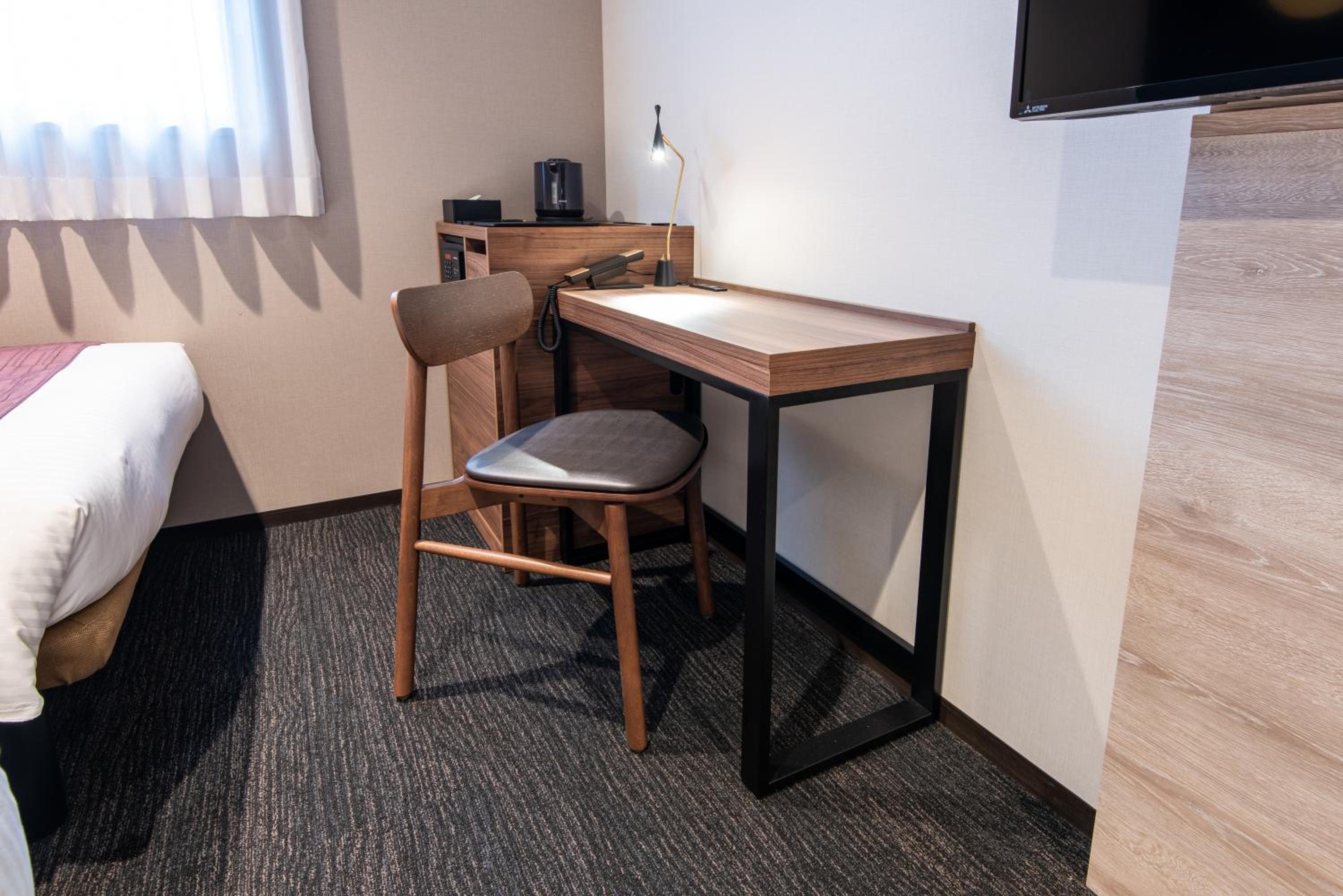 The hotel is modern and has everything a traveler needs. The room was small by North American standards but had space to store bags under the bed. The bath had shampoo, soap and hair dryer provided, and other amenities available at the front desk. The room had coffee making and a mini fridge.