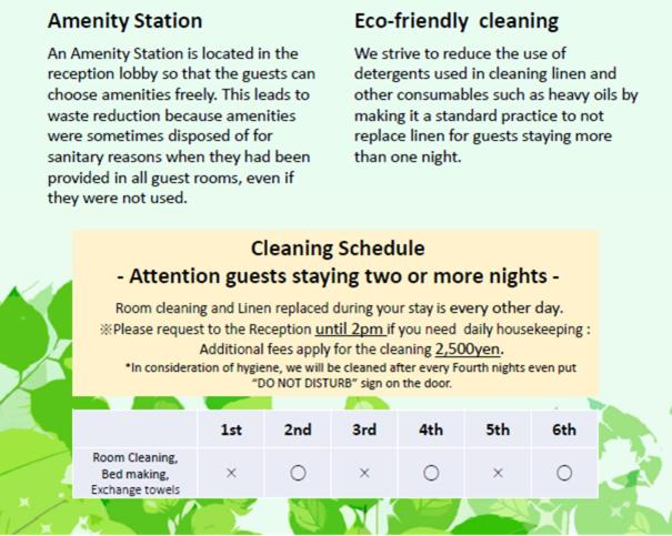 There is a coin laundry on floor 2. The machine washes and dries for 500¥ with additional drying for 100¥. The front desk will make change. The machine has automatic detergent. There are only 2 machines, so you might have to plan ahead.