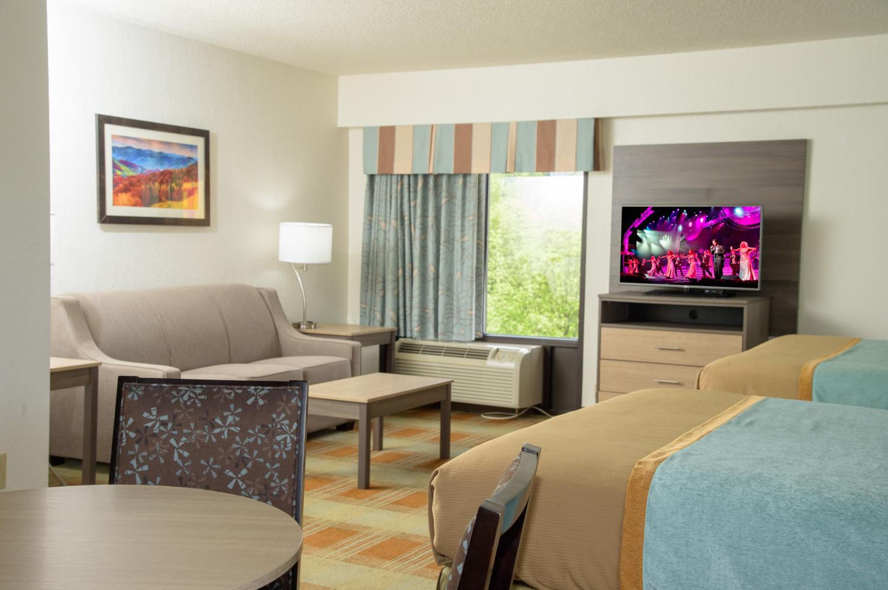 Take a refreshing dip in the outdoor pool, stay connected with free WiFi, and start your day right with a complimentary continental breakfast. Explore nearby attractions like Dollywood, Wonder Works, and Titanic Museum, all within walking distance from the inn.