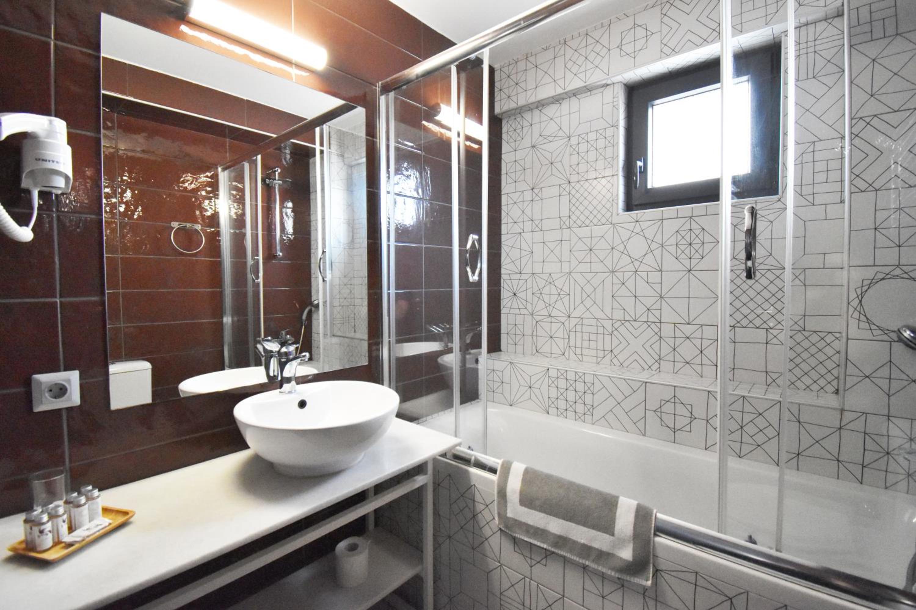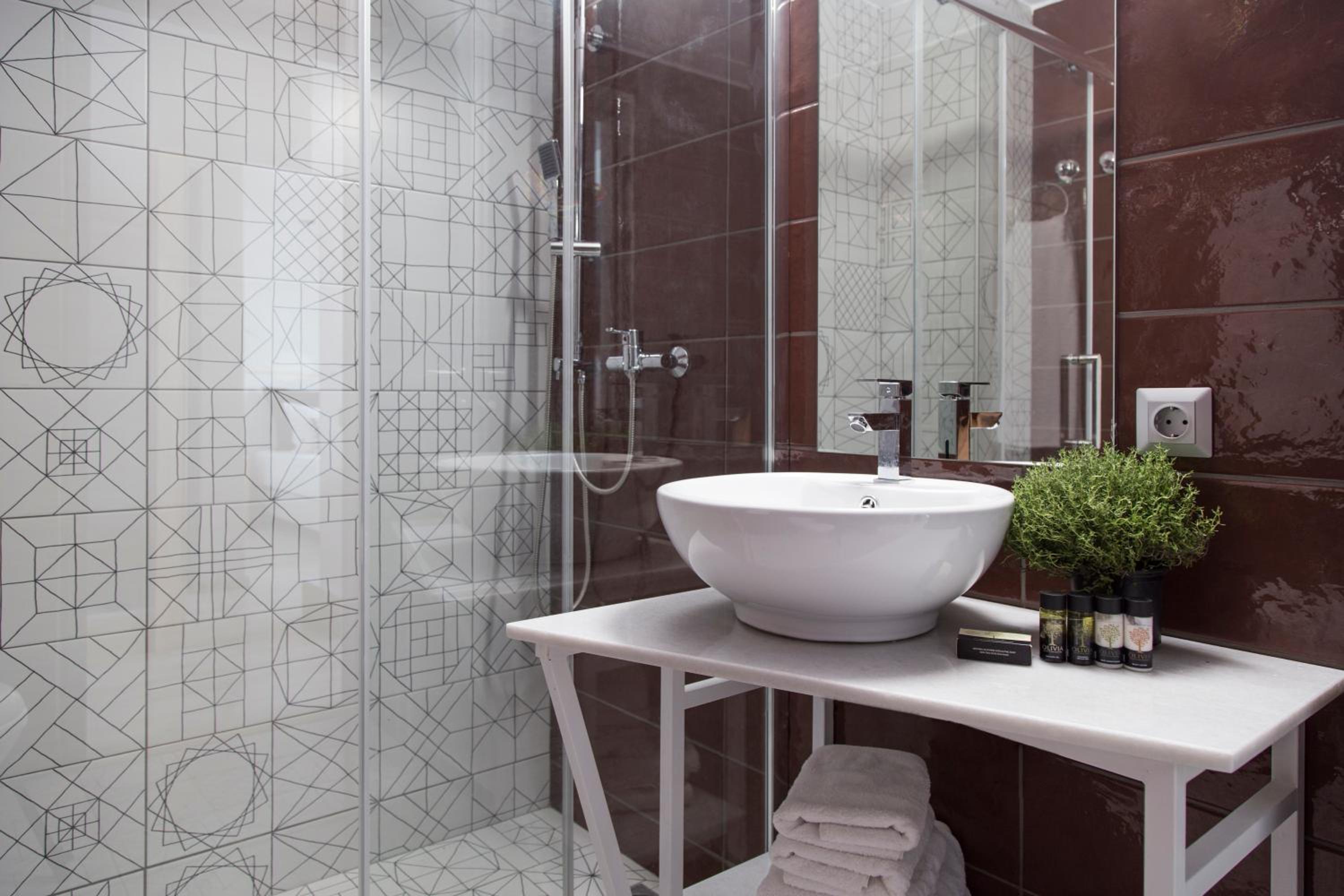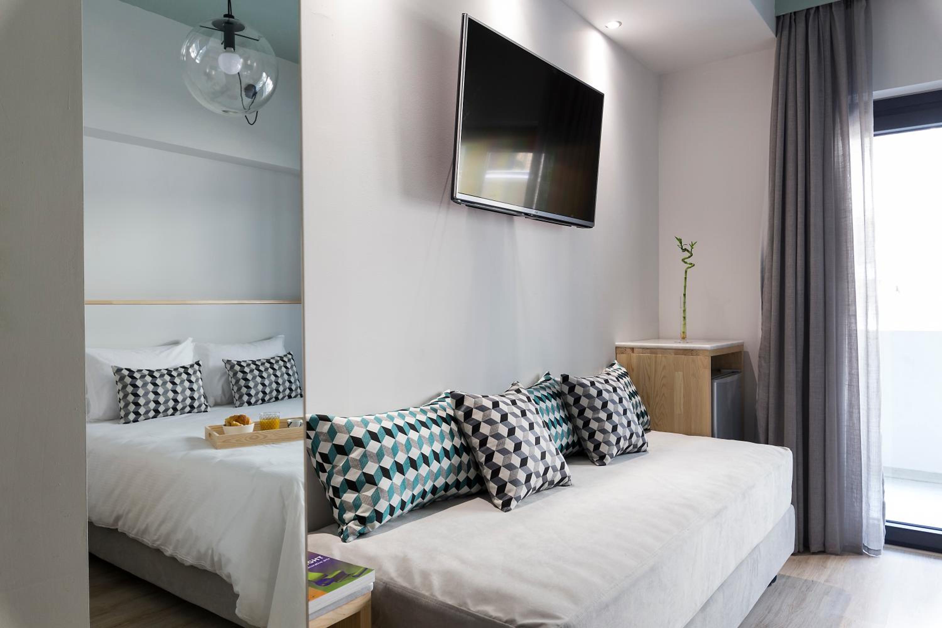 Experience the epitome of elegance at Be My Guest Athens with rooms and suites adorned with Naxian marble and pine wood. Enjoy modern amenities like a 43'' flat-screen TV and a sleek bathroom with a shower cabin. Some units even offer a cozy seating area for relaxation, along with a private terrace or balcony for stunning views.
