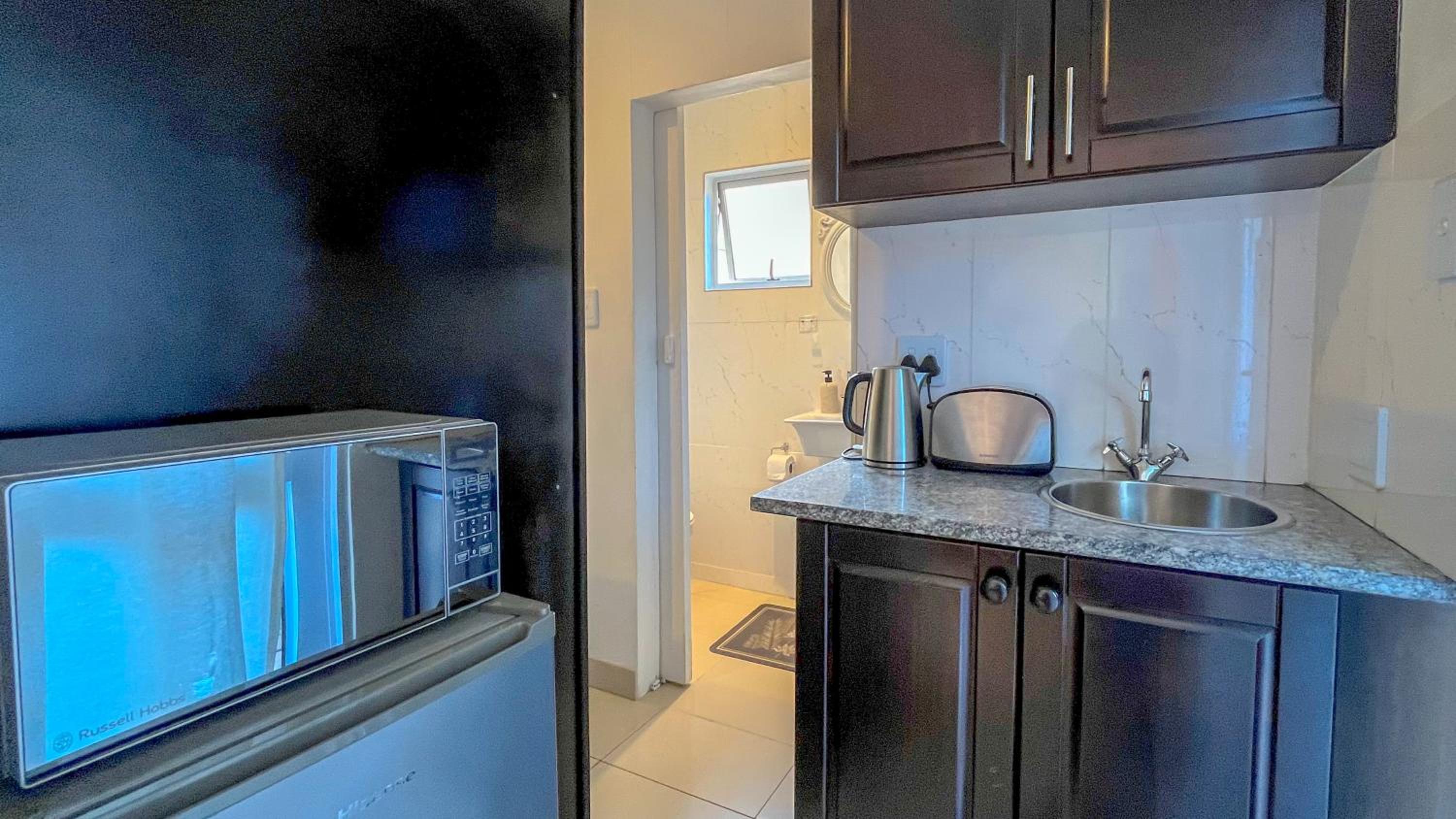 * small kitchenette, no coffee or tea provided