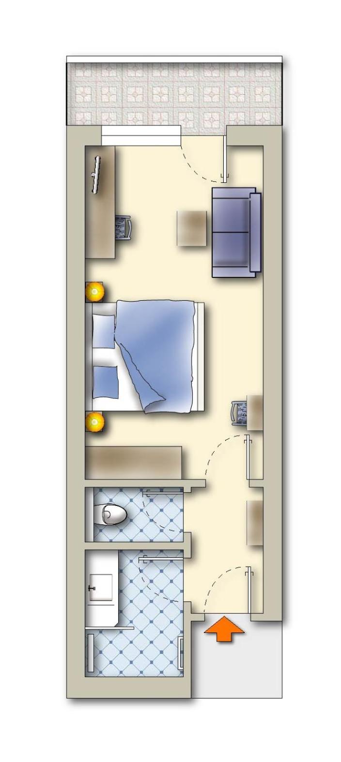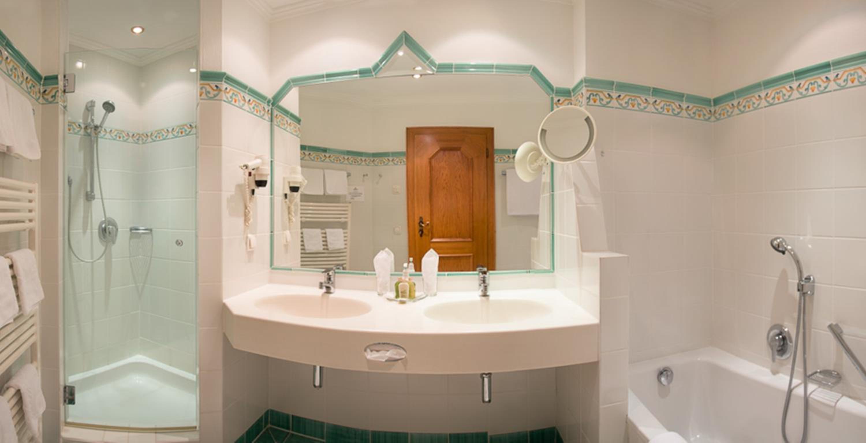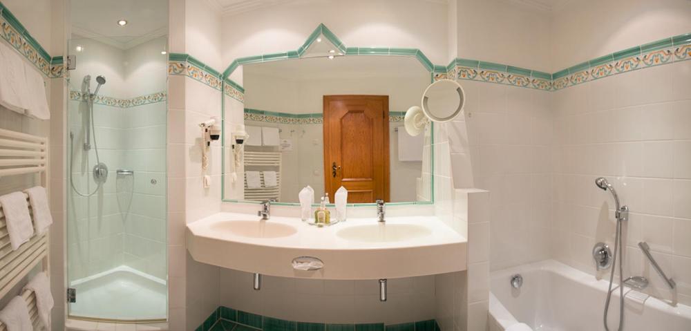 Im Badezimmer wären zusätzliche Ablageflächen wünschenswert. In unserem Zimmer handelte es sich um ein innenliegendes Bad ohne Fenster. Eine Möglichkeit zur Entlüftung nach außen – sofern baulich umsetzbar – wäre hilfreich, um die Feuchtigkeit schneller abzuführen.