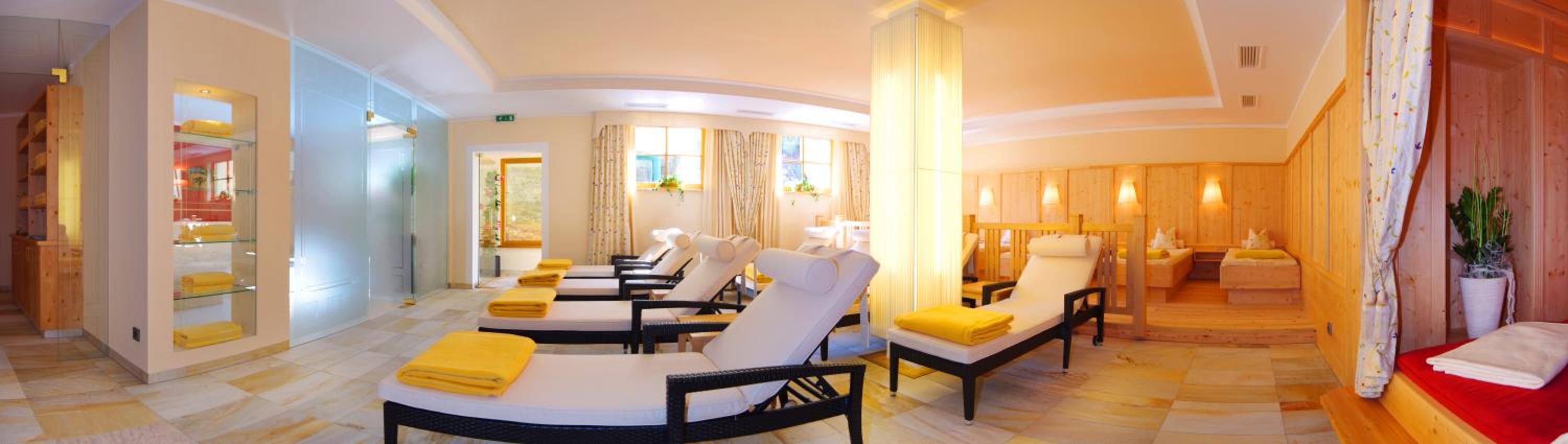 Der Wellnessbereich bietet alles, was man sich wünscht: Bio‑Sauna, Finnische Sauna, Infrarotkabine, Dampfbad und einen schönen Ruhebereich.