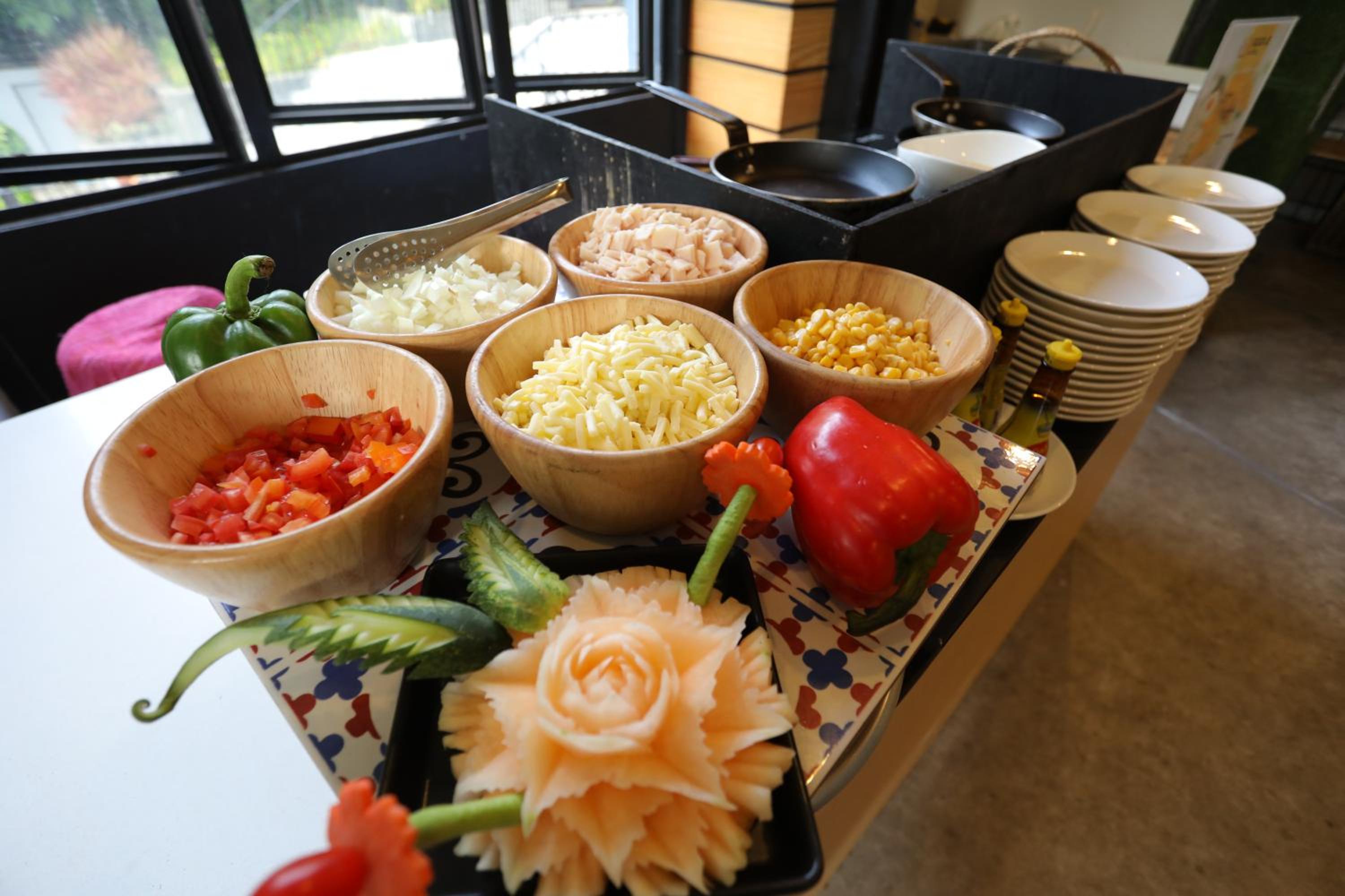 En el desayuno tienen muchas opciones de comida.