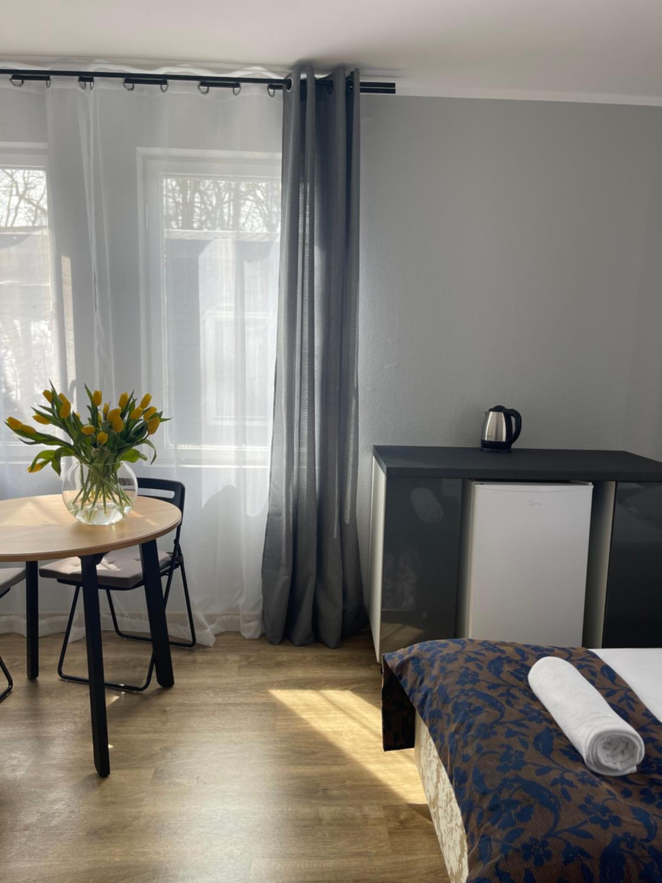 Nie podobał nam się Salonik telewizyjny z niewygodnymi kanapami. Przyjemniej byłoby gdyby telewizor znajdował się w sypialni. Brak zestawu do parzenia herbaty.