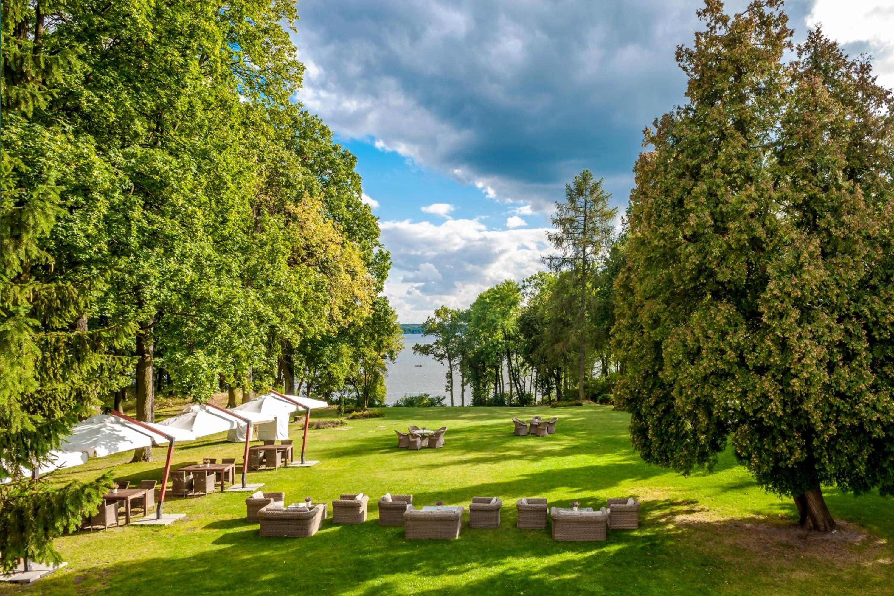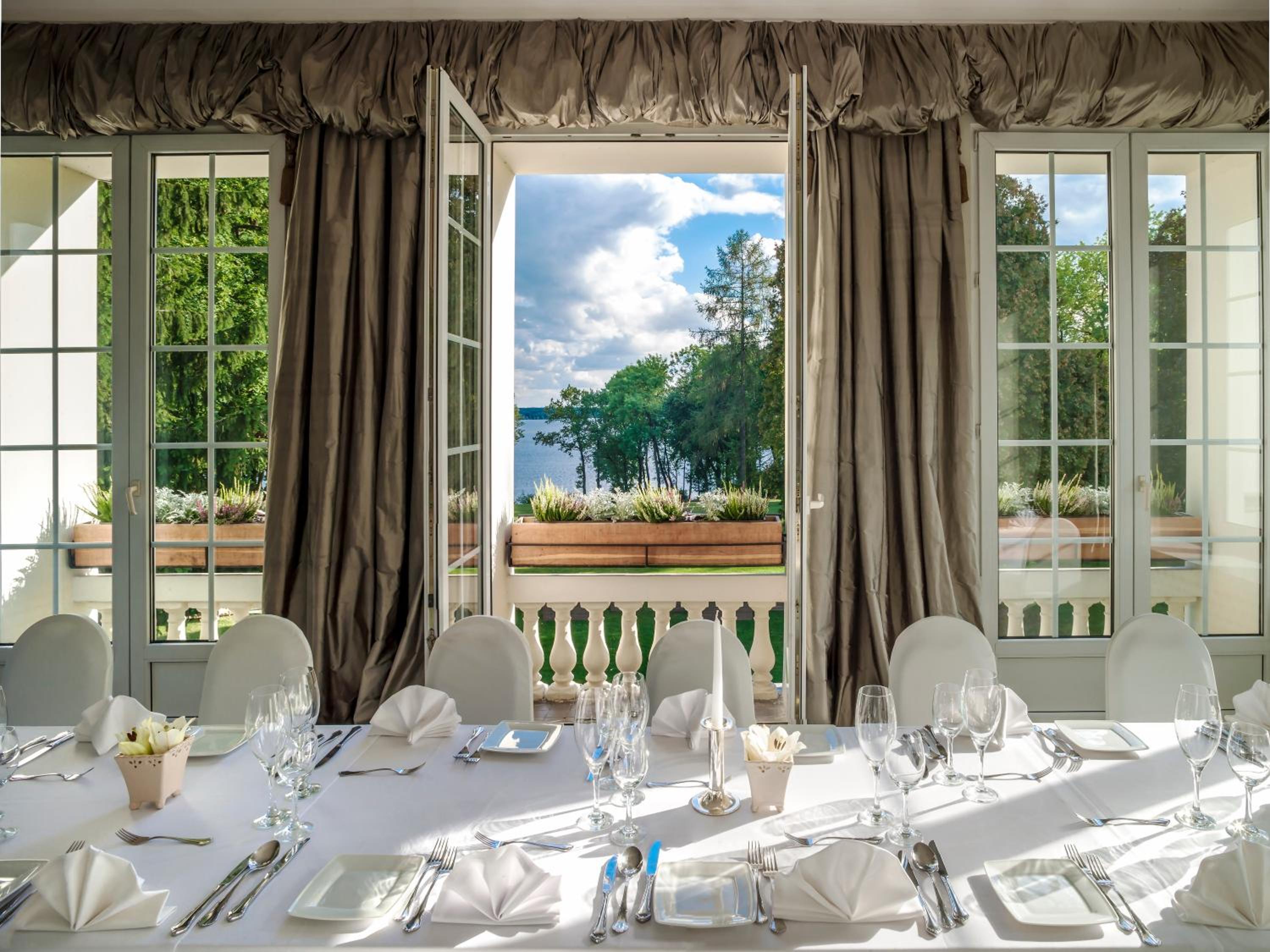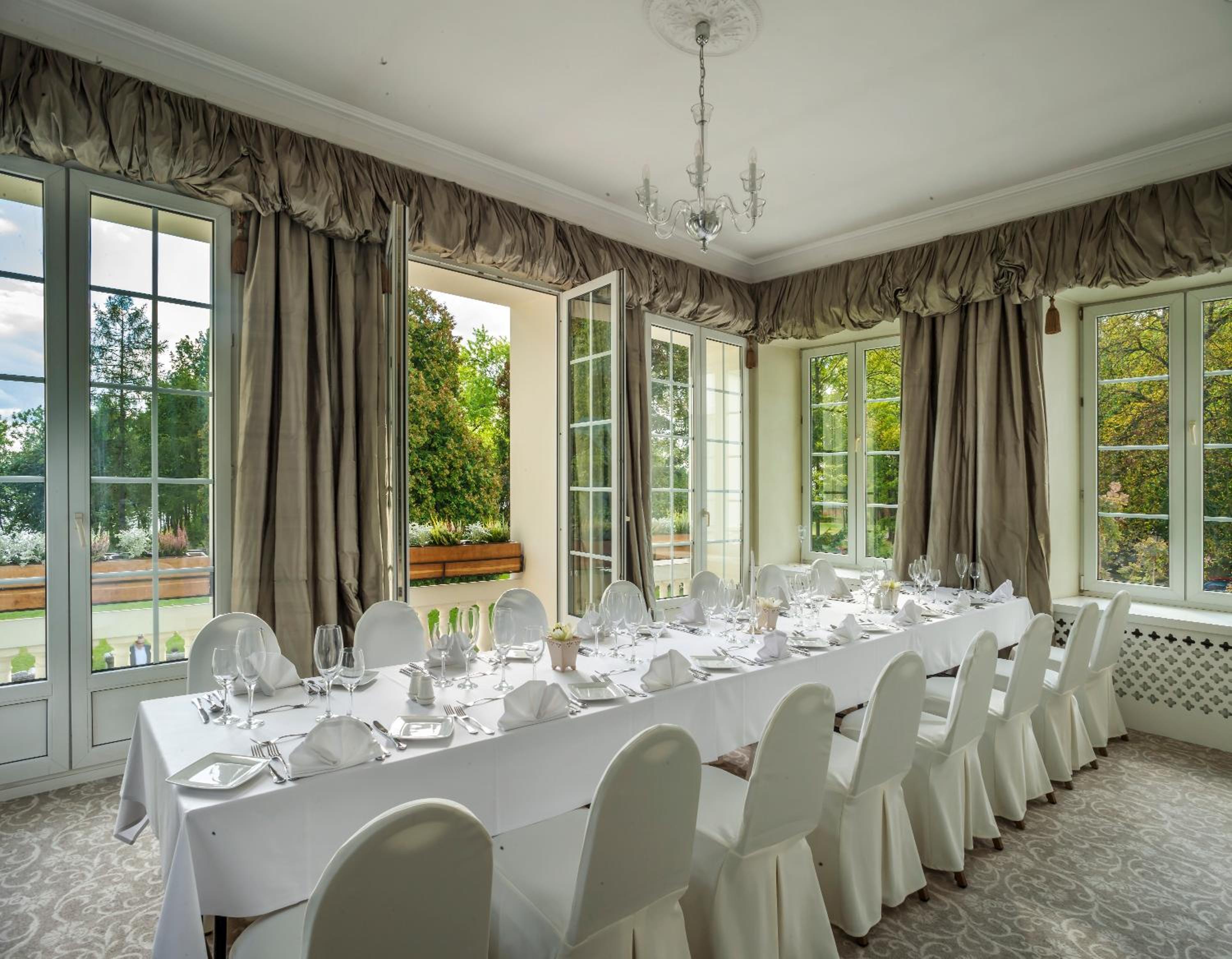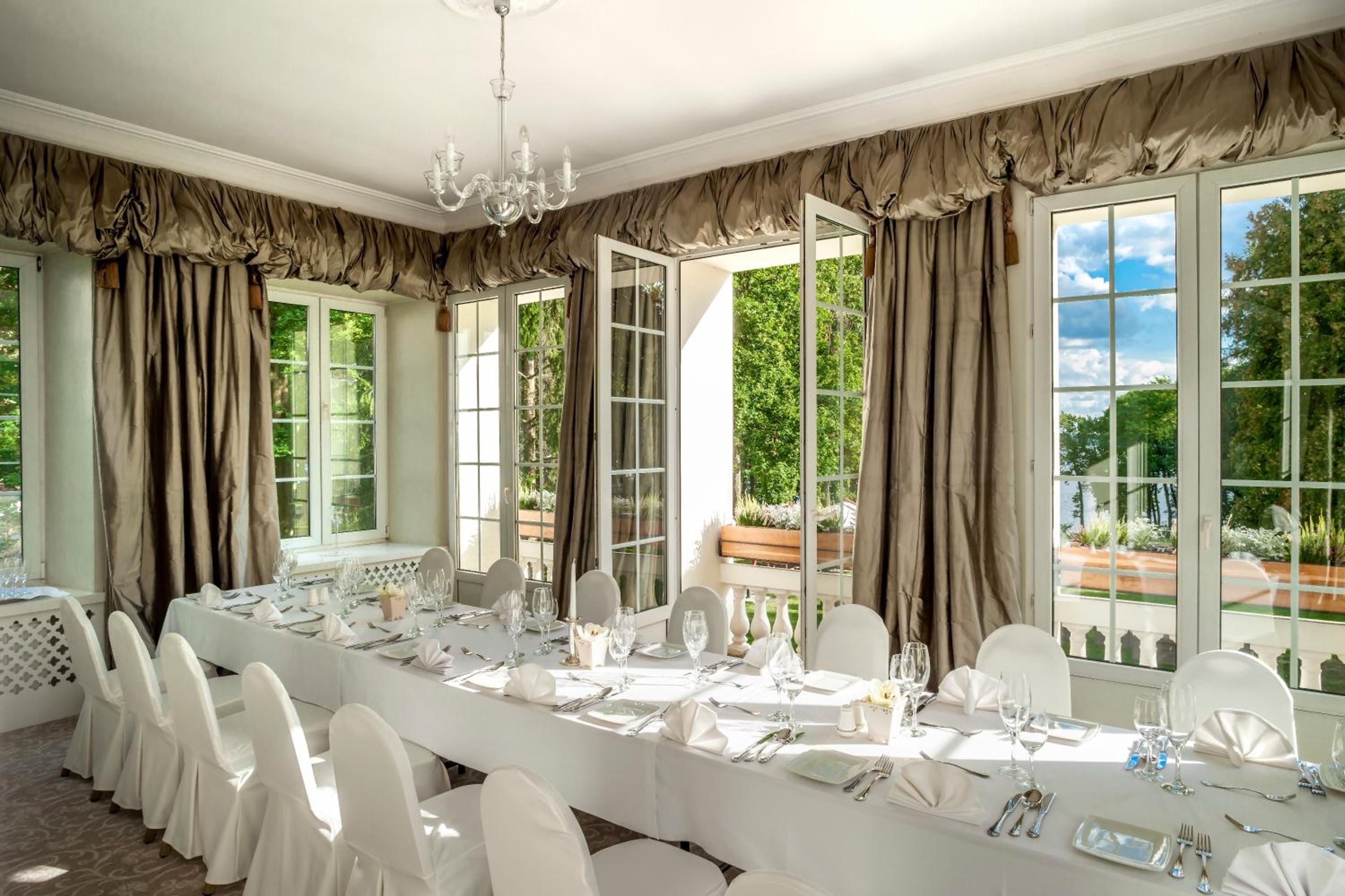 Perched over the picturesque Zegrze Reservoir, Pałac Zegrzyński offers more than just stunning views. Delight your taste buds at our on-site restaurant serving a mix of international and regional dishes, or unwind at the charming café with a patio, perfect for enjoying sunny summer days.