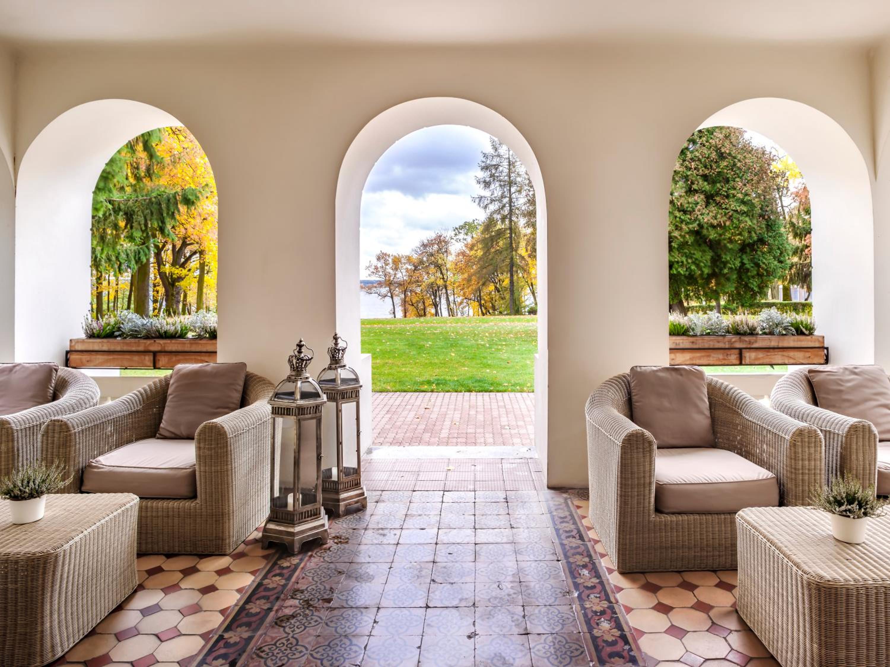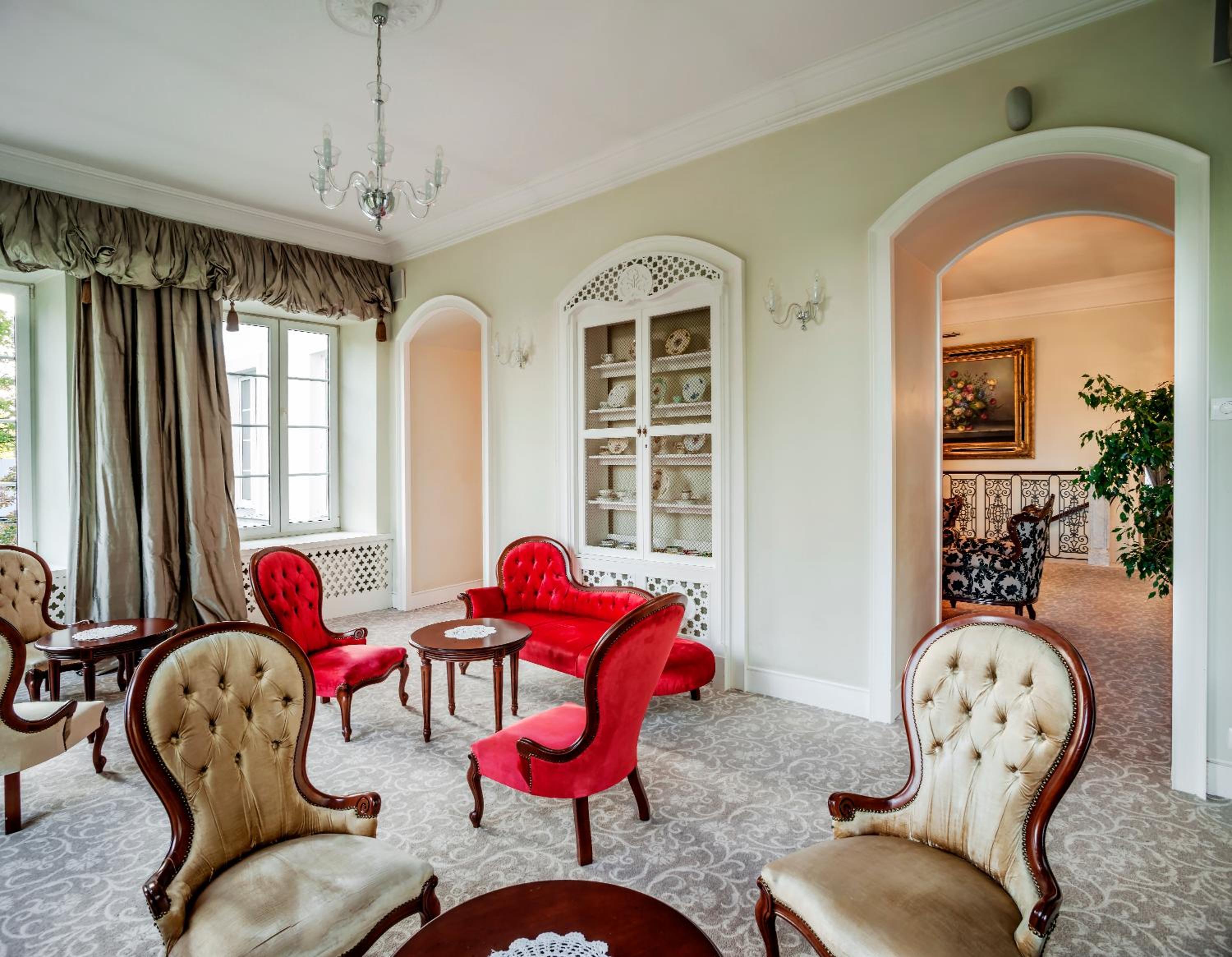 Przepiękne miejsce i okoliczności przyrody. Wystrój adekwatny do miejsca. Bardzo podobało nam się zachowanie klasycznych wnętrz, przy utrzymaniu ich funkcjonalności.