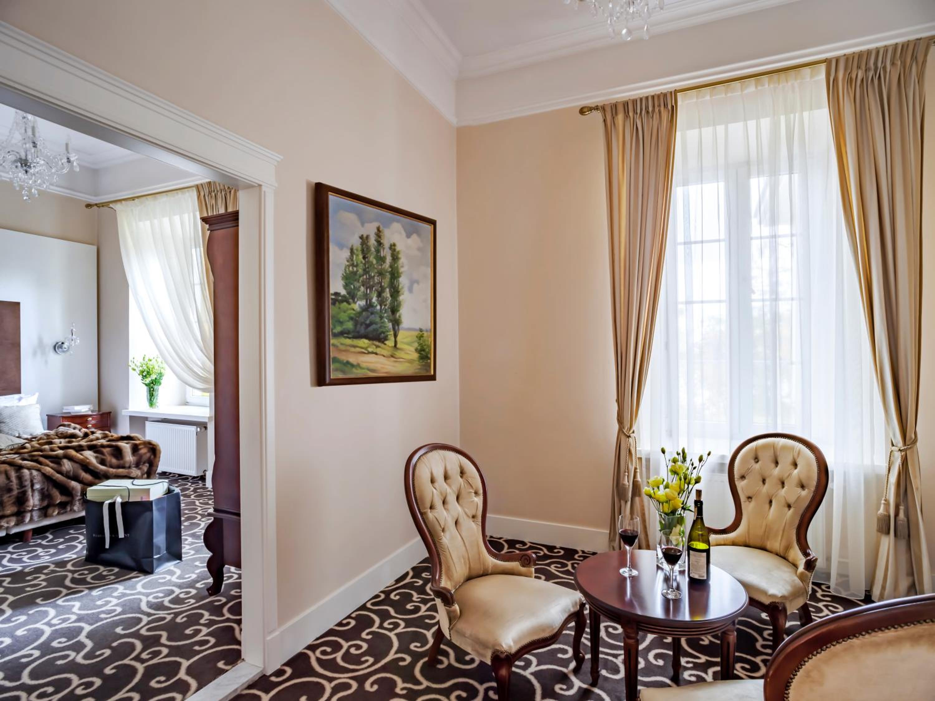 Step into a 19th-century palace turned luxury hotel at Pałac Zegrzyński. Experience the perfect blend of historic charm and modern comforts in our well-appointed rooms and apartments, each featuring a private bathroom, LCD TV, and complimentary Wi-Fi.