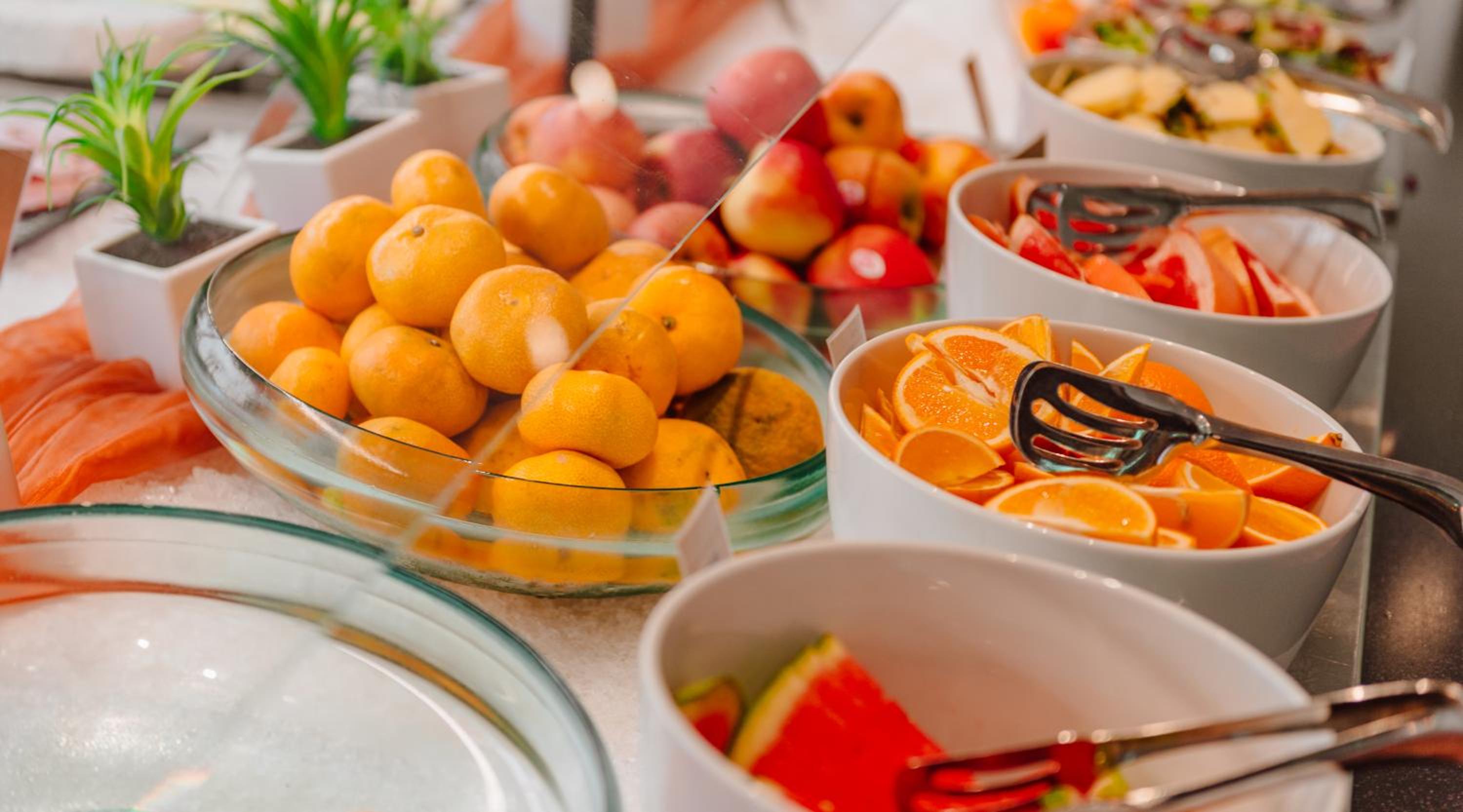 Das Frühstück bot auch einige vegane Speisen an, das war sehr angenehm, Buffet ab 4 Uhr morgens geöffnet, sehr praktisch.